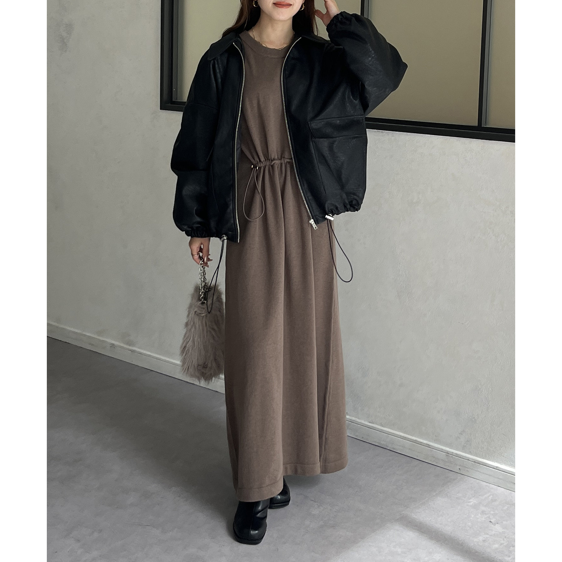 どんなアウターとも合わせやすいワンピースです。