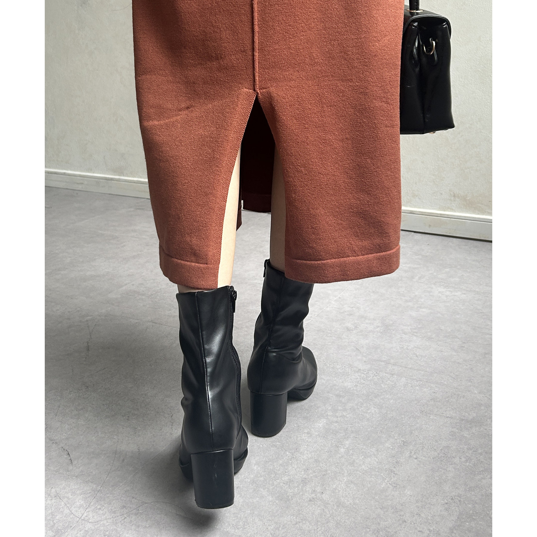 ・足元はブーツを合わせるとシーズンムードが高まります。