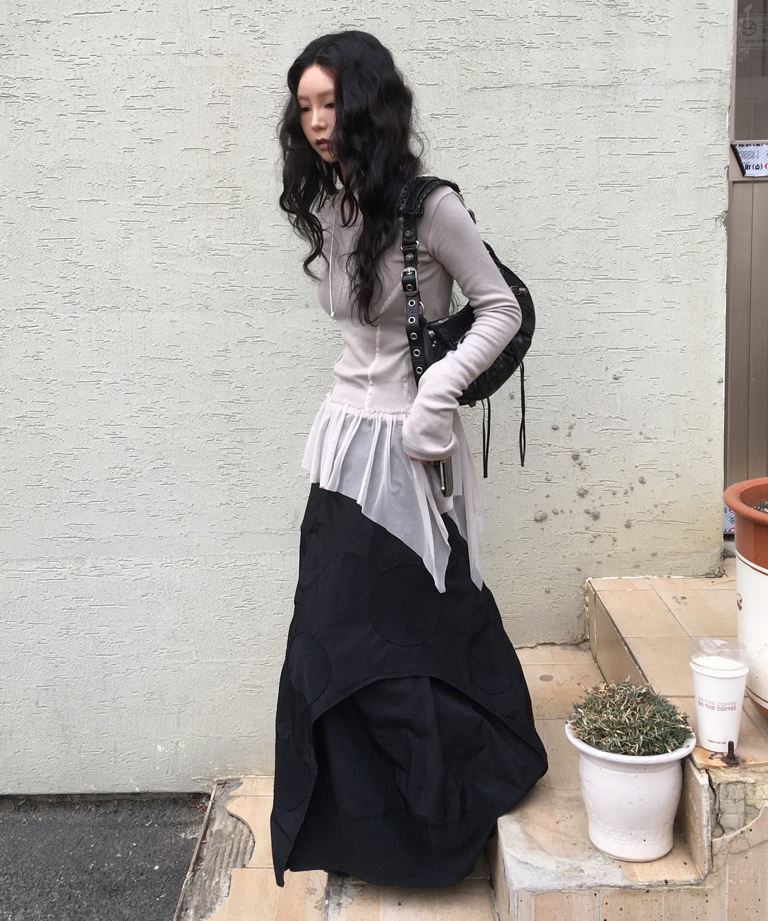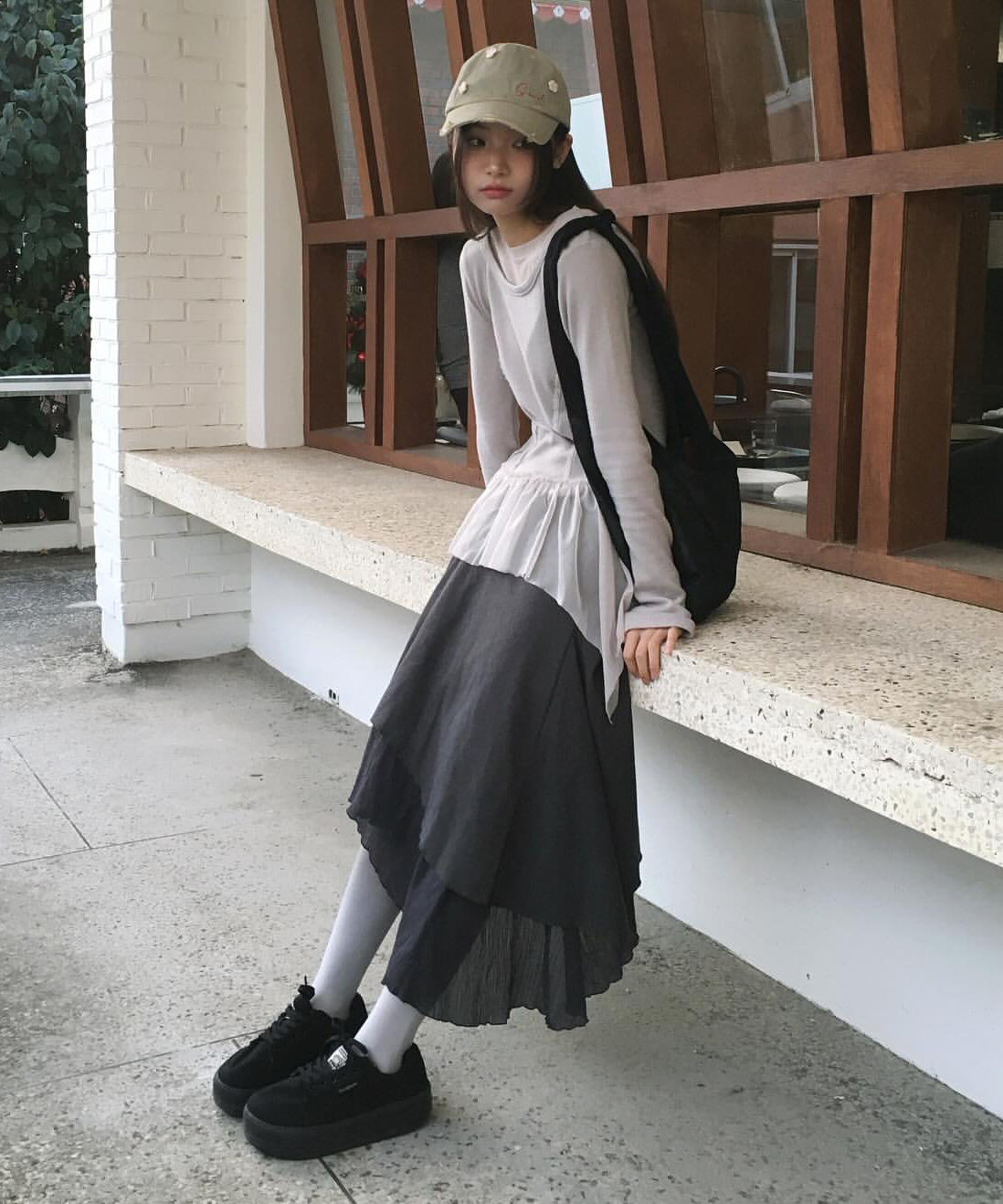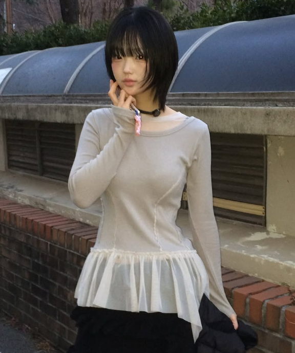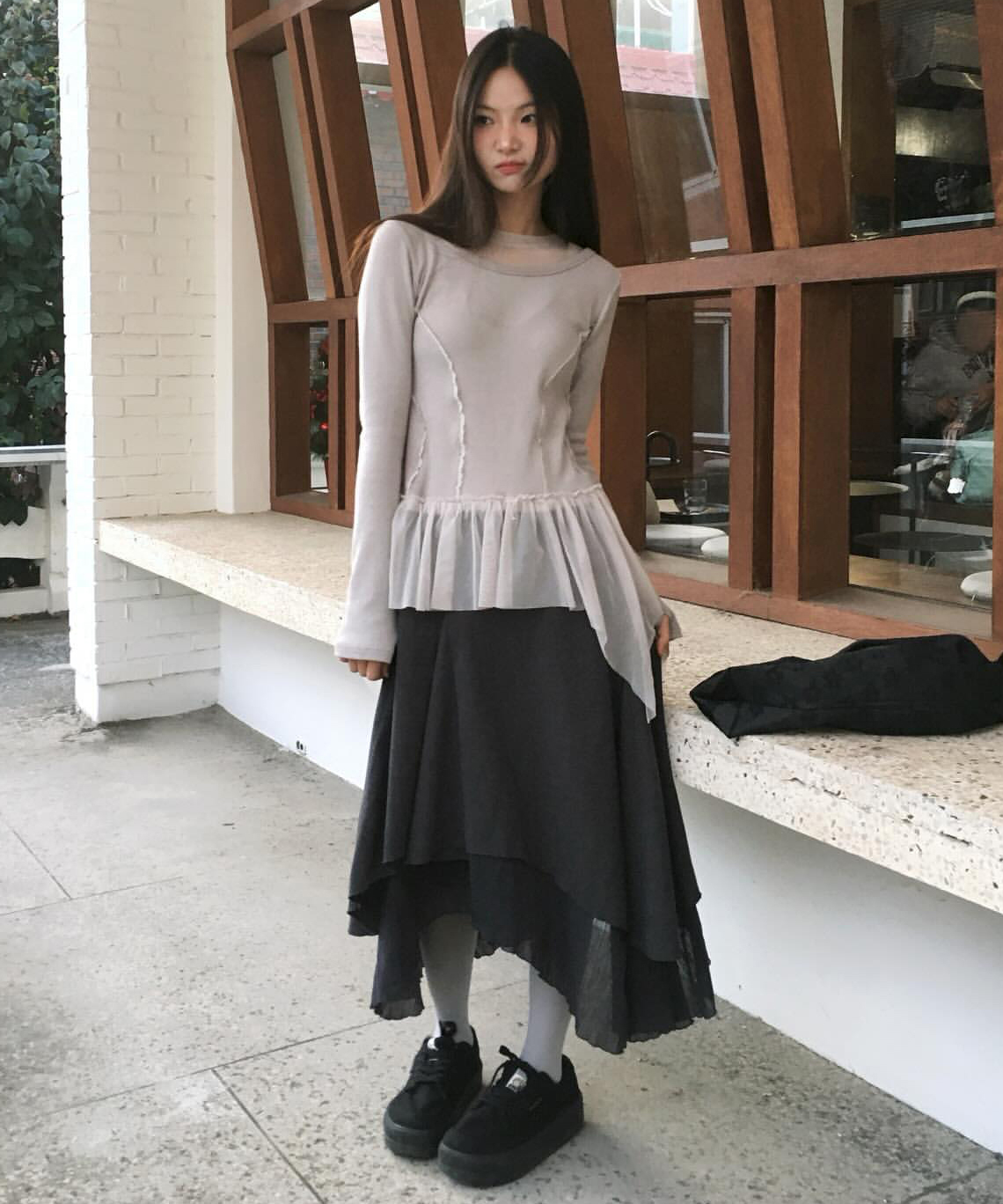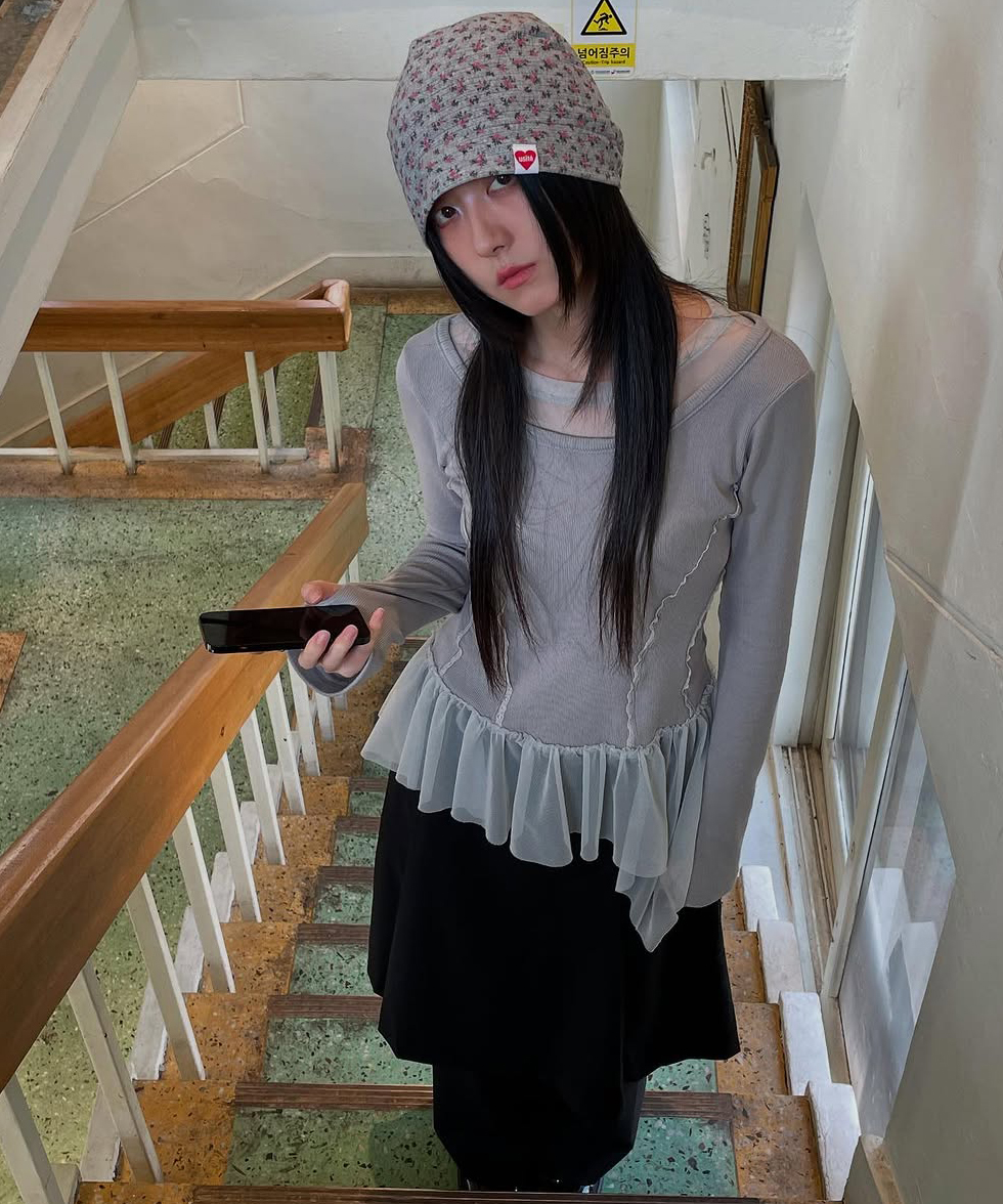 [influencer pick] Layered Lace Frill Long Sleeve (FL-137_Gray)