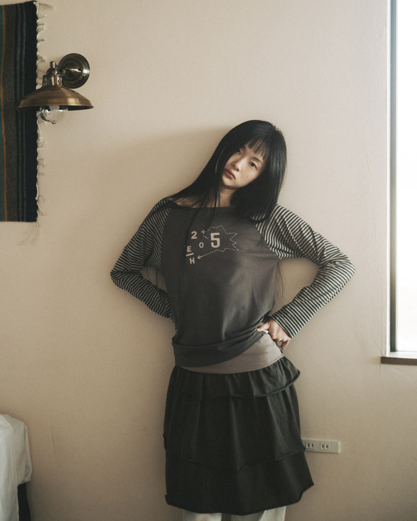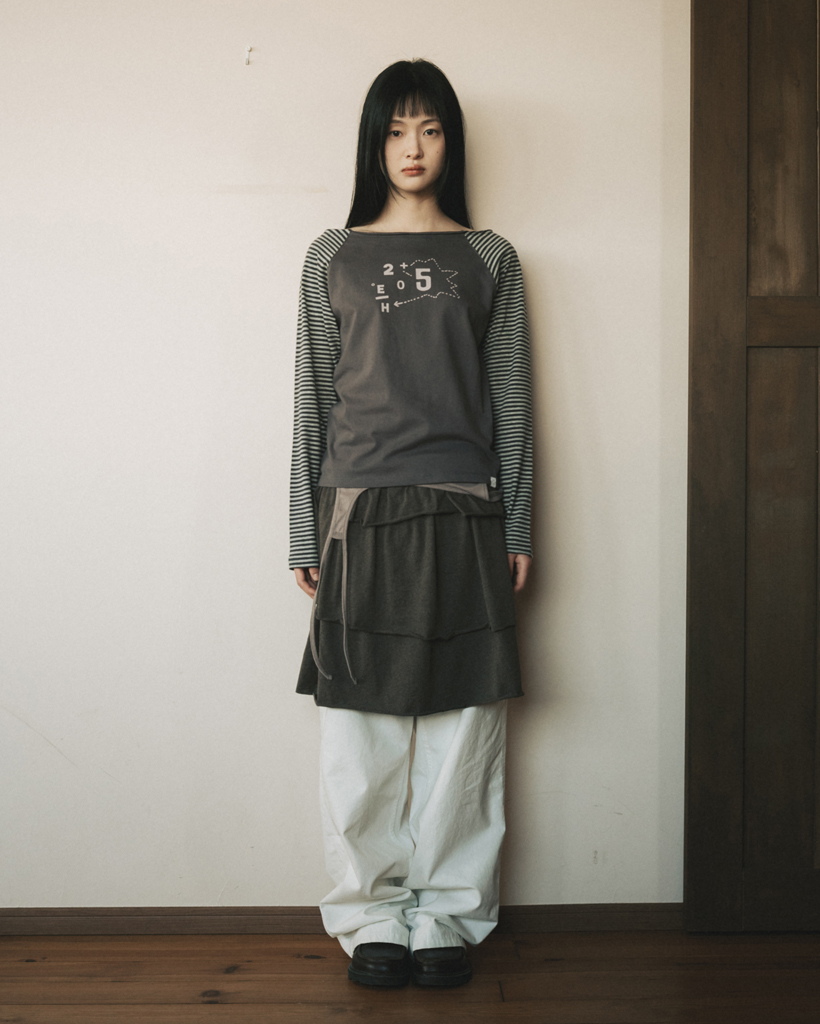 DIAGRAM ONE-SHOULDER T-SHIRT, CHARCOAL