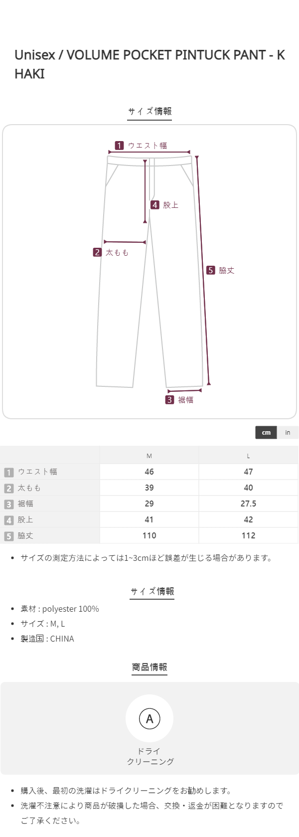 VOLUME POCKET PINTUCK PANT - KHAKI