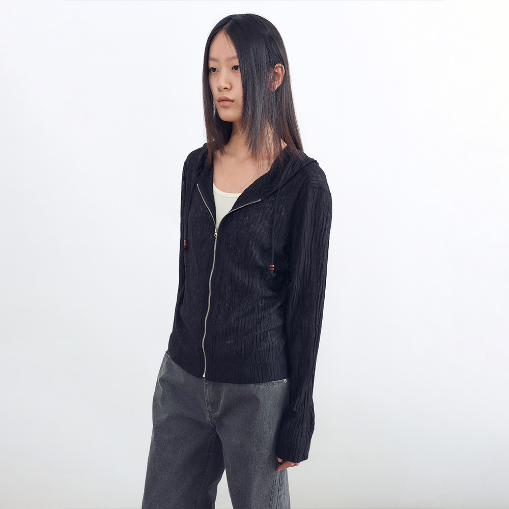 [Influencer pick] [WOMEN] Natural Crinkle Hooded Zip-Up BLACK