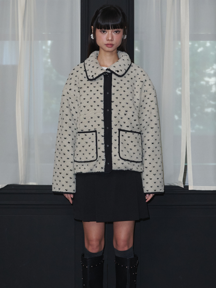 heart Dot Pattern Fleece Jacket_Ivory