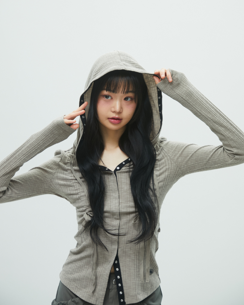 SHIRRING SNAP BOTTON HOODIE ZIP-UP BEIGE