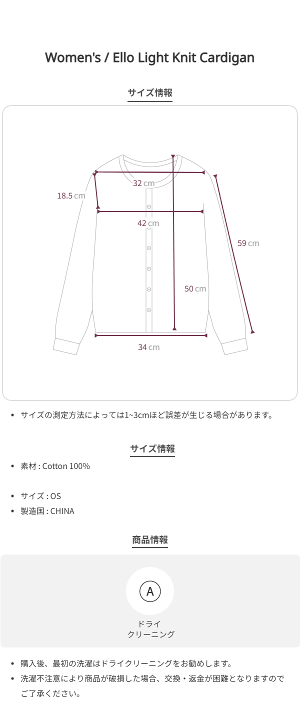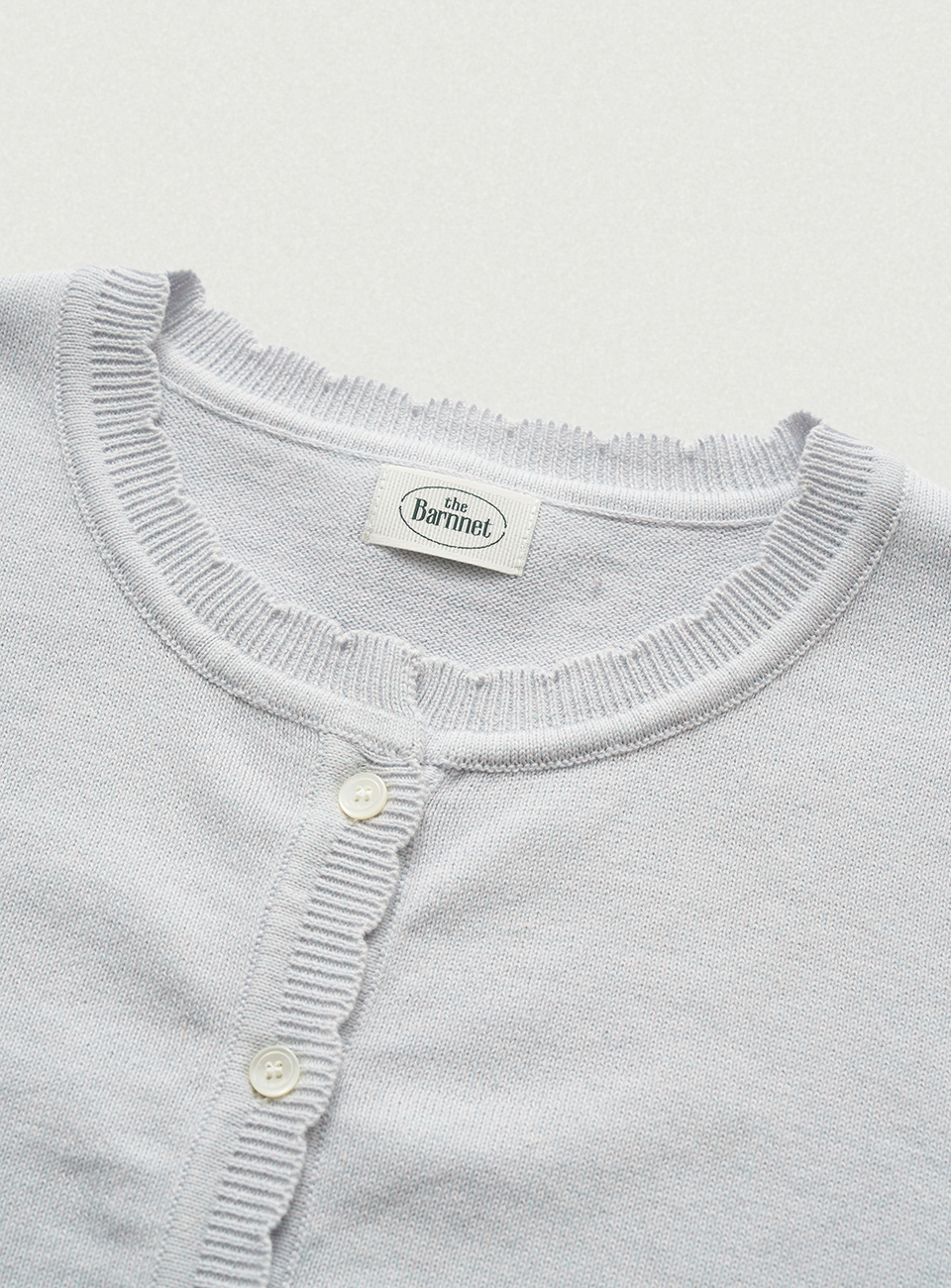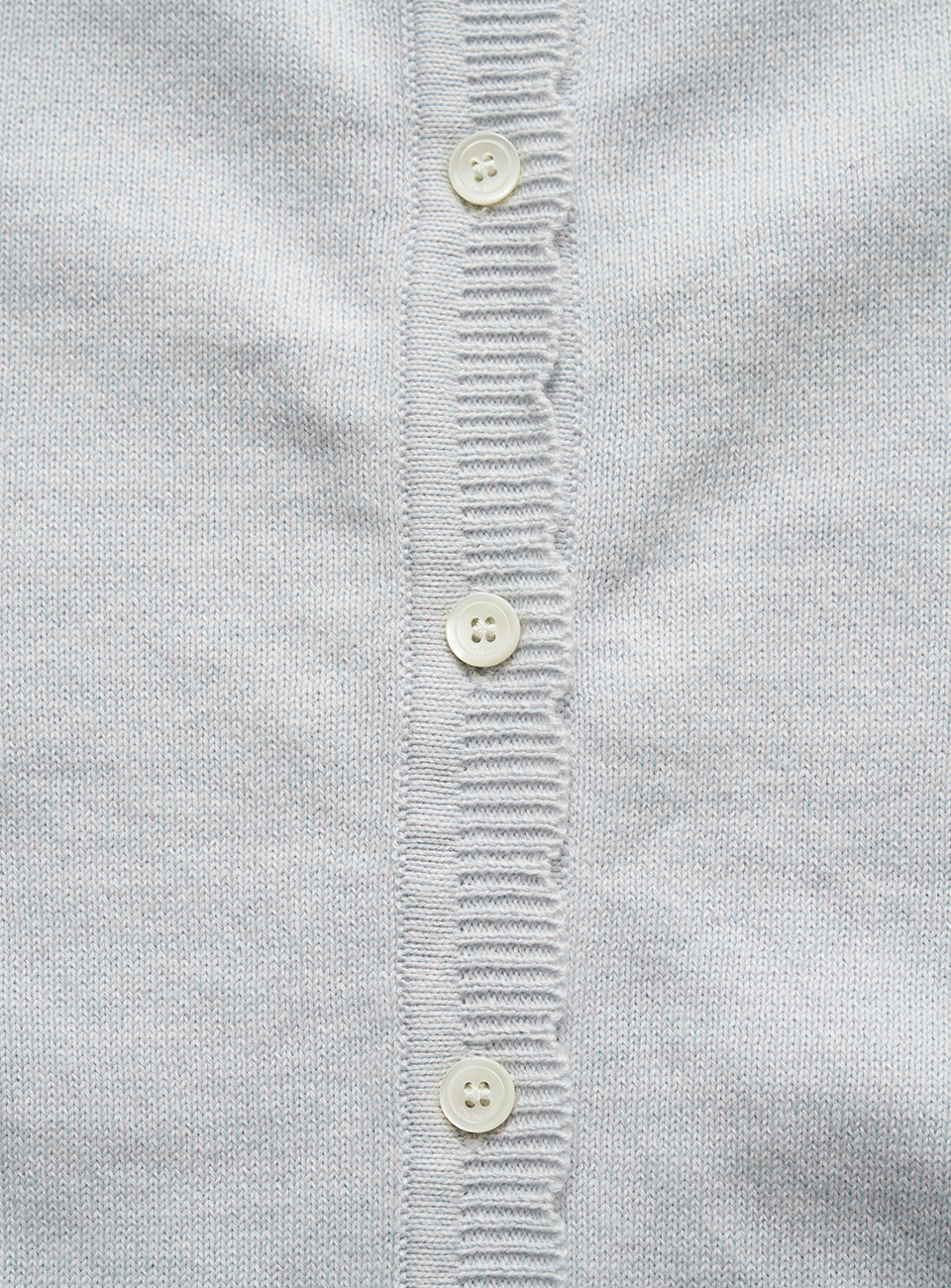 *ロゴ刻印入りの貝ボタンで開閉できるコットンカーディガン