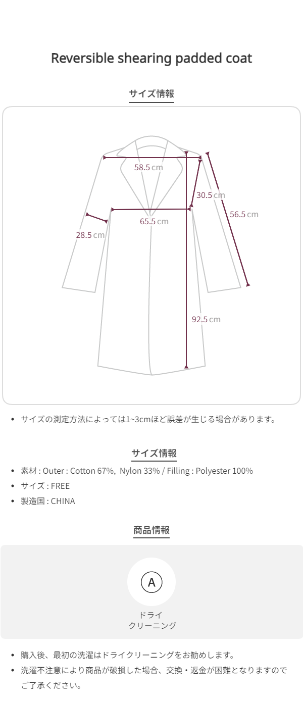 - 配色のリバーシブルカラーでまったく異なる雰囲気のスタイリングが可能で、しっかりとした厚みの中綿が加わり保温性も優れています。