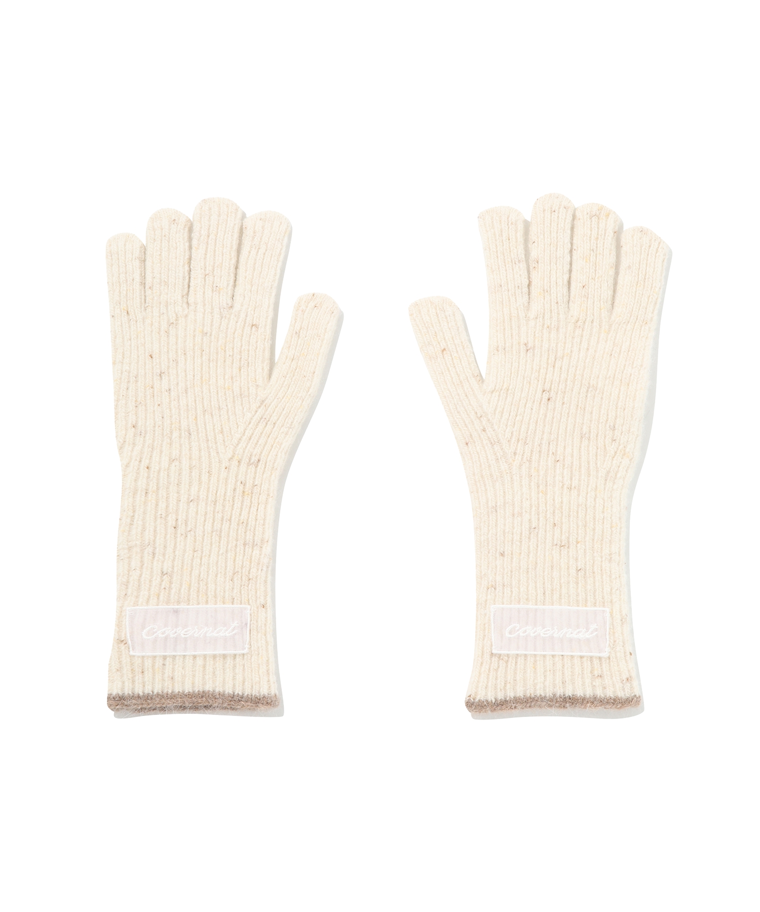 WOMAN CLOVER HEART MELANGE TIP LAMBSWOOL GLOVES - Oatmeal