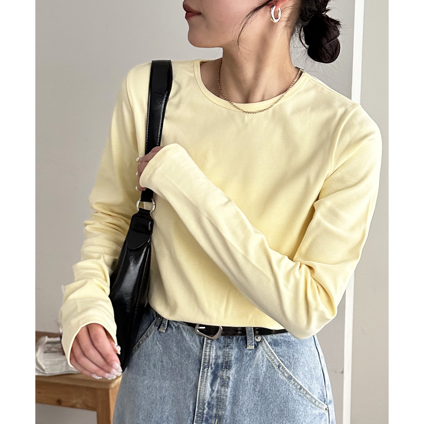 シンプルなトップスは一枚着でも、キャミワンピースやベストのインナーとしてもおすすめ!