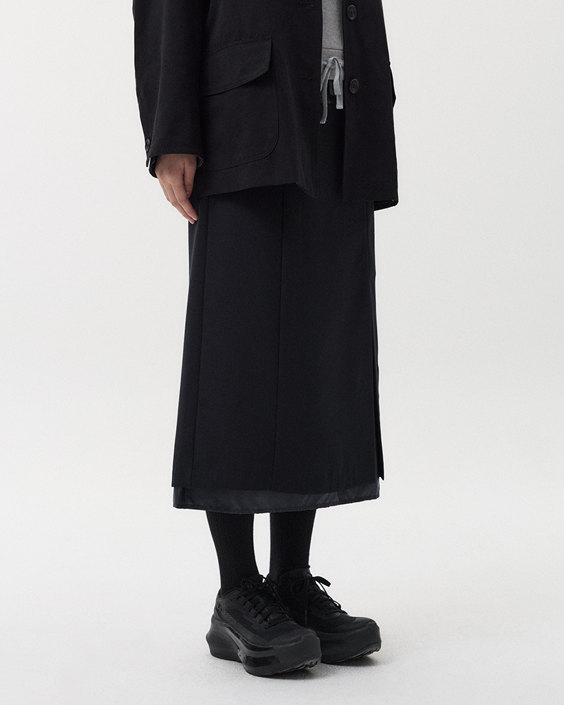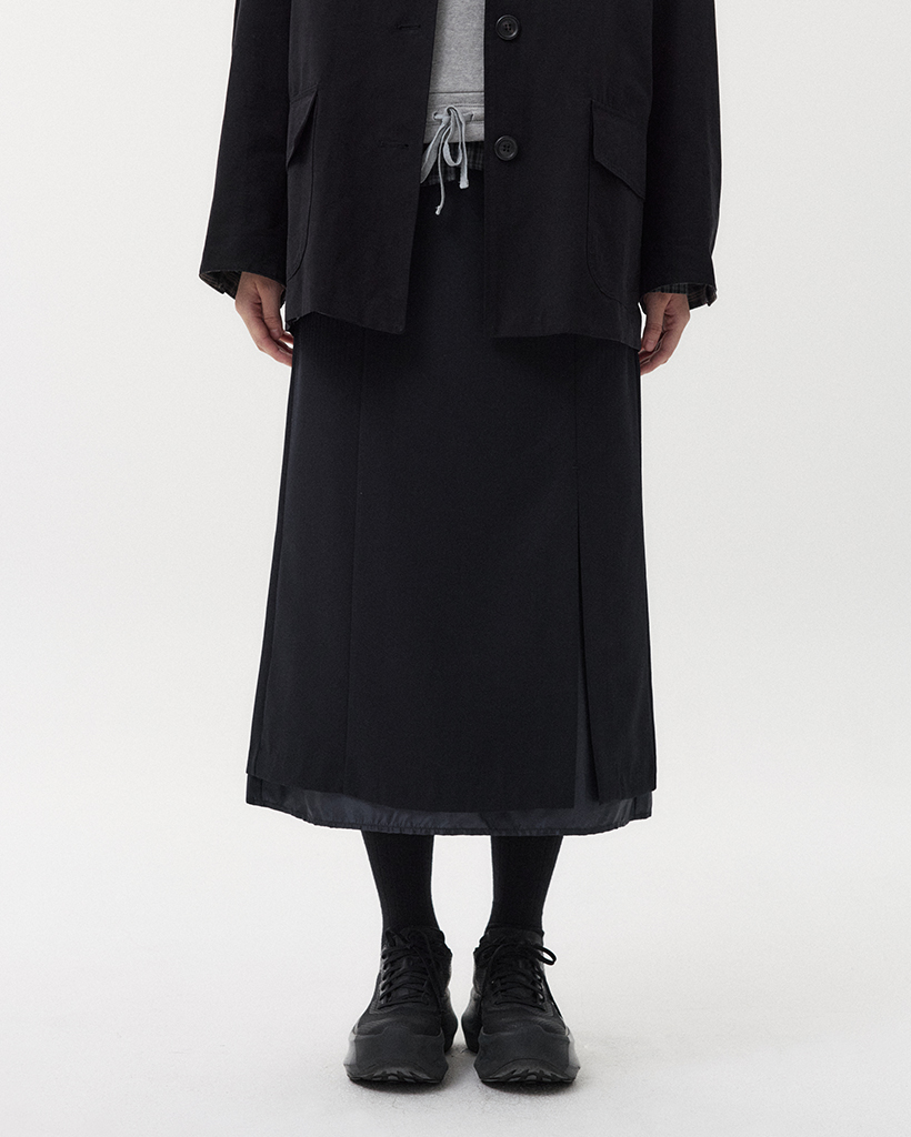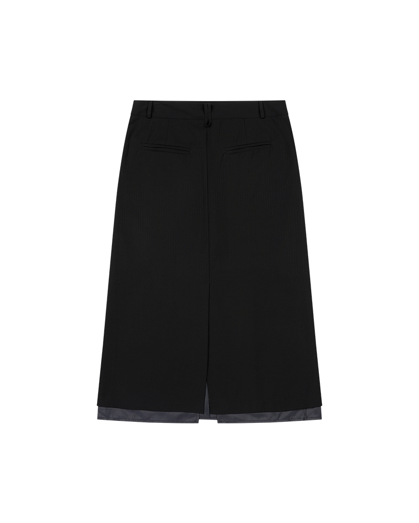 LAYERED SLIT LONG SKIRT, NAVY