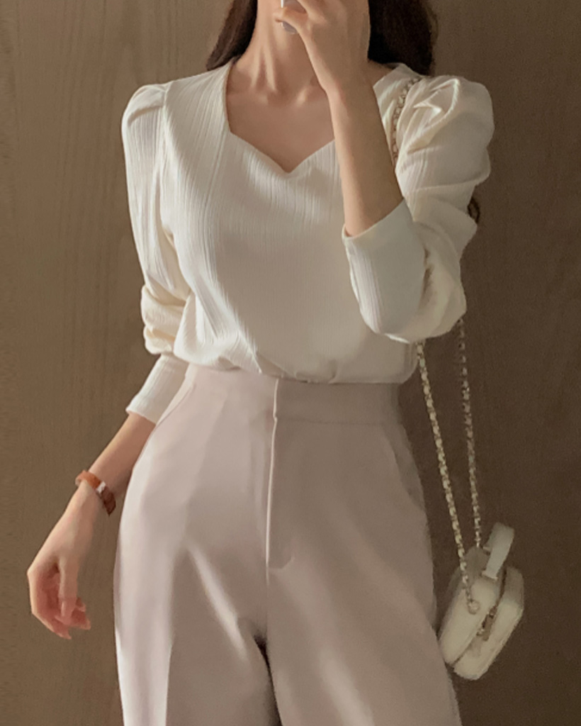モデル|シュークリームアイボリーカラー(F)サイズ ハートネック長袖着用