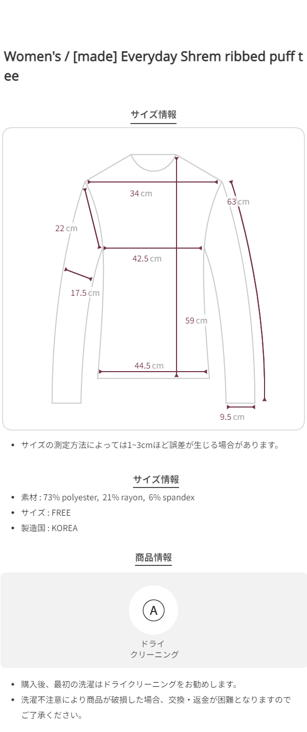 ・レーヨン素材の特性上、水に弱く、縮みや毛羽立ち(ピリング)が生じる場合がございます。初回の洗濯は必ずドライクリーニングを推奨いたします。以降は弱アルカリ性洗剤またはウール用シャンプーを使用し、冷水での手洗い、またはドライクリーニングをお願いいたします。