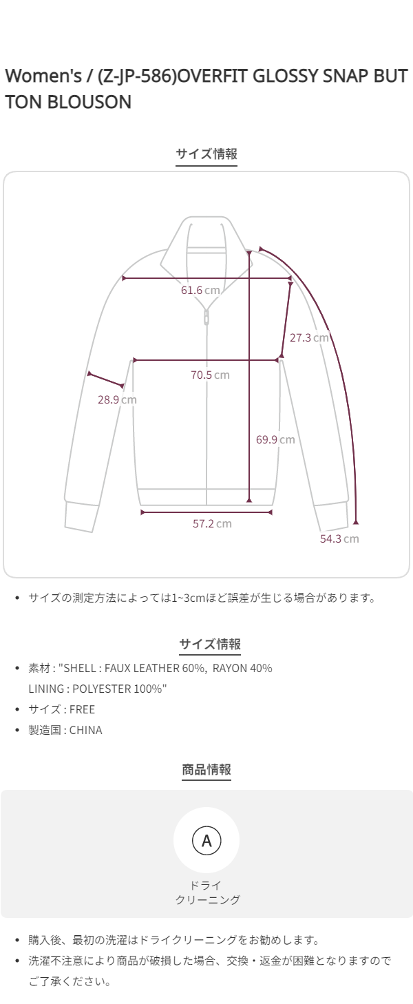 (Z-JP-586)OVERFIT GLOSSY SNAP BUTTON BLOUSON
