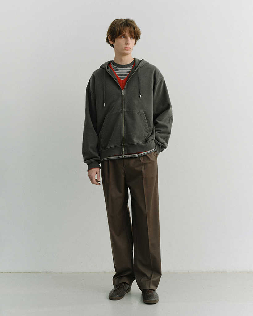 UNISEX GARMENT DYED ZIP-UP HOODIE BLACK_M_UDTS6A114BK