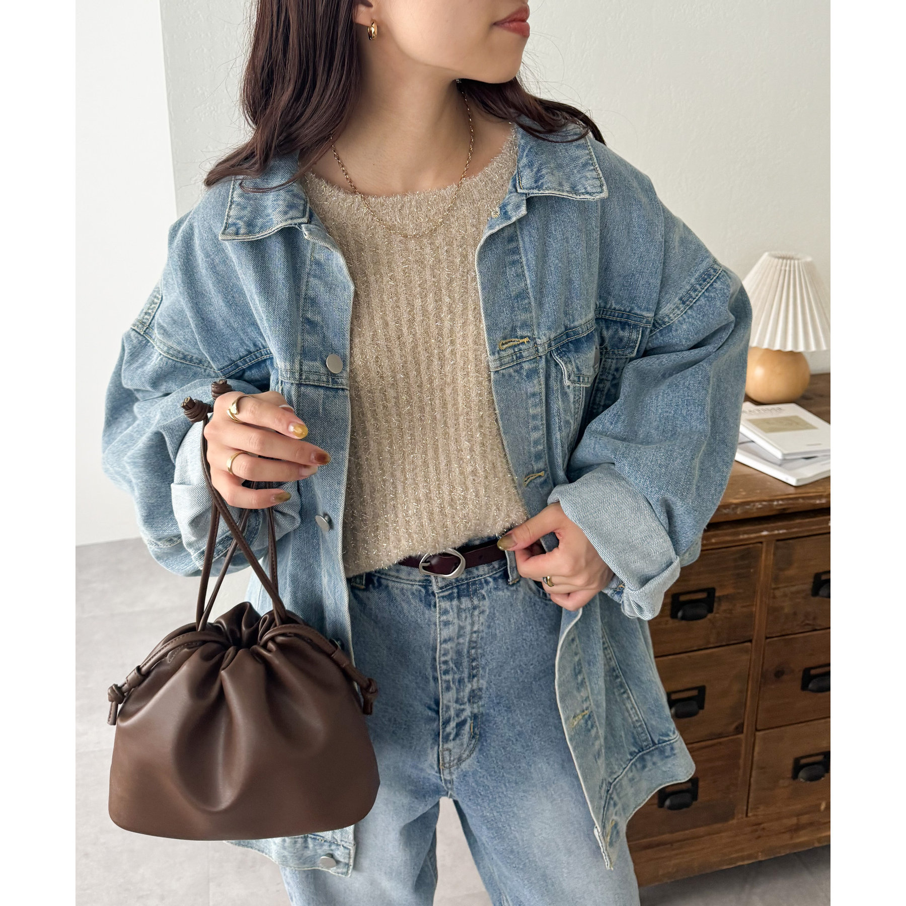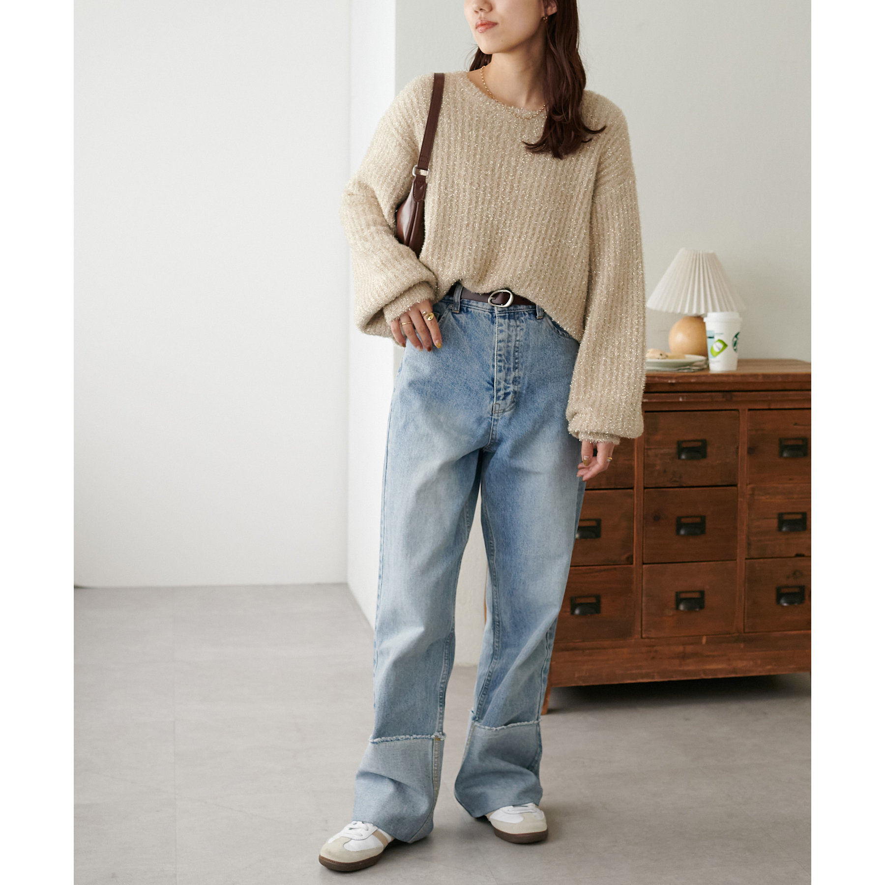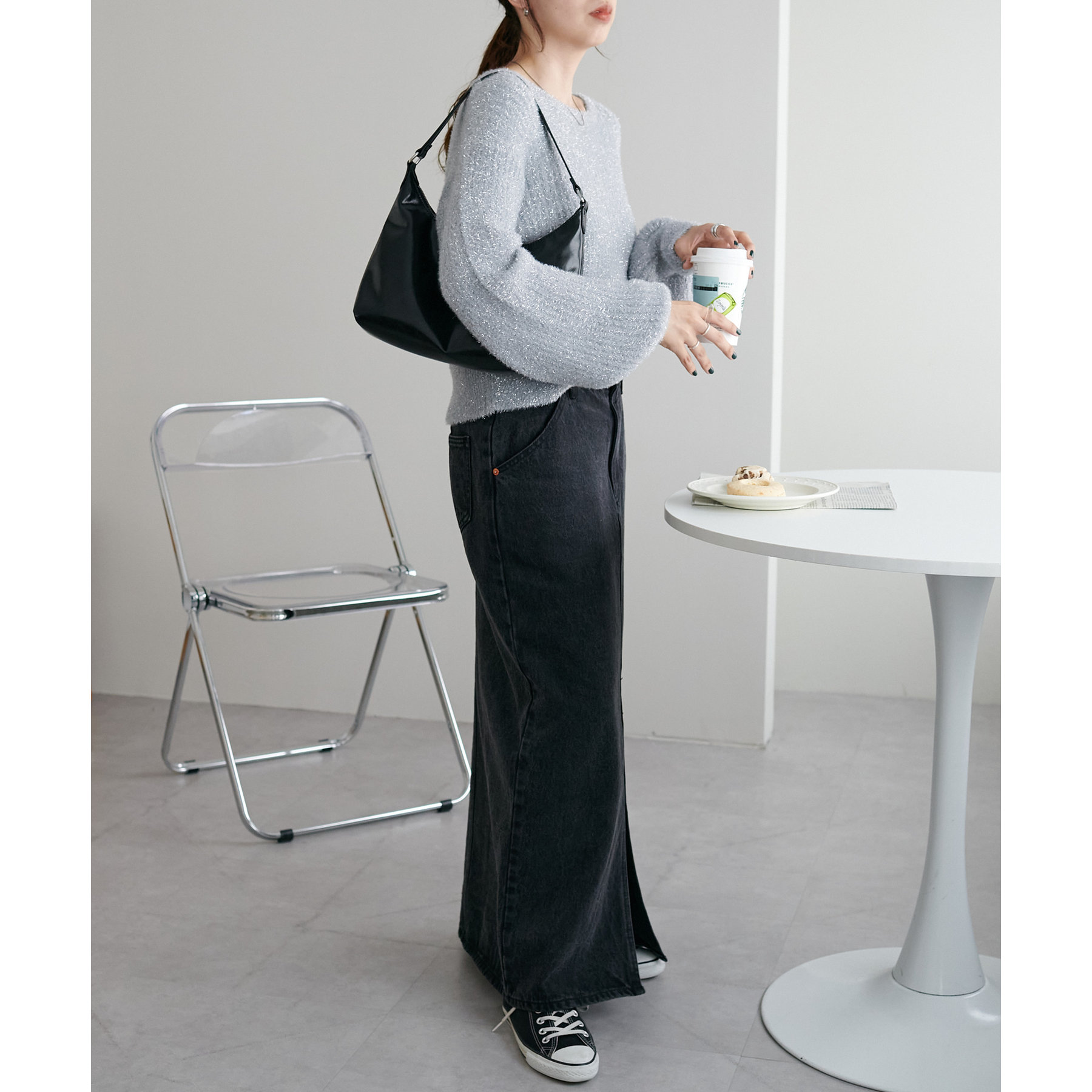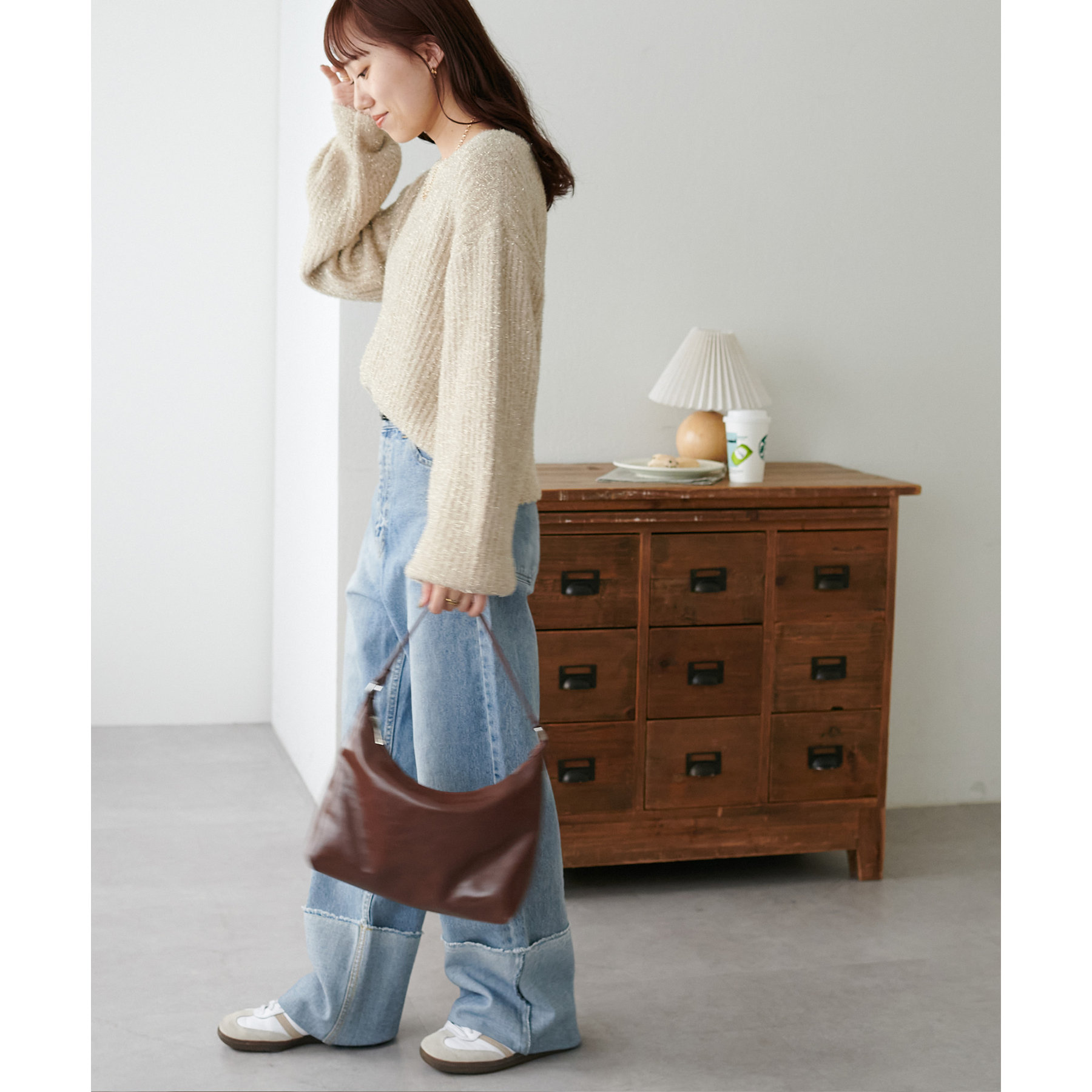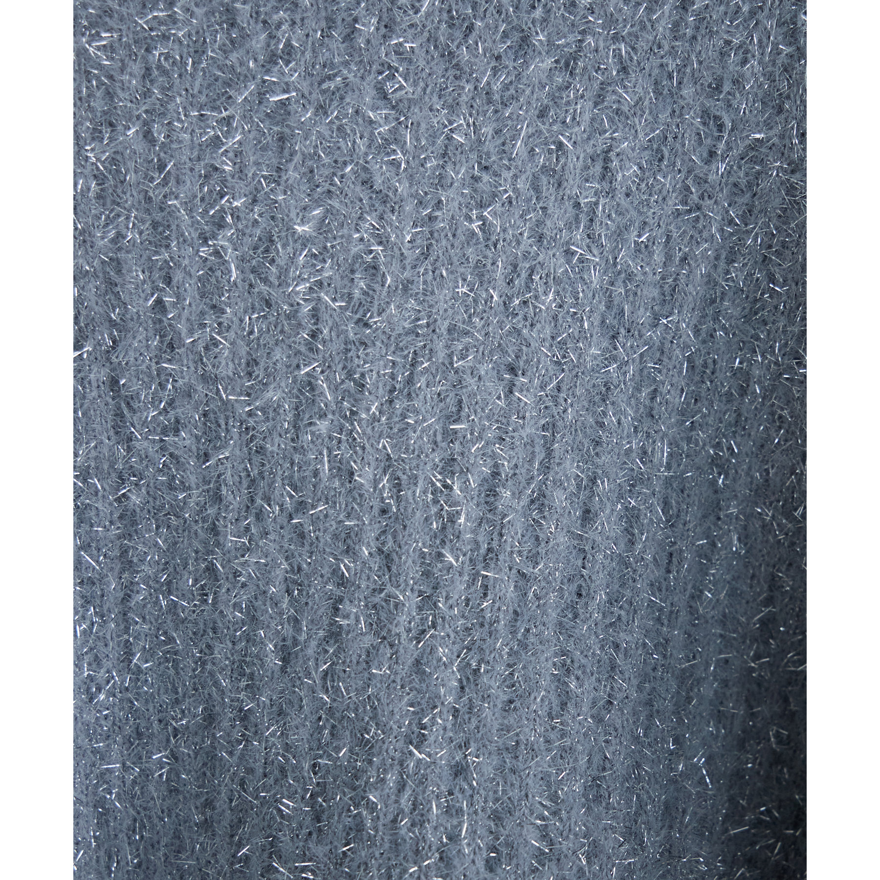 毛足の長さが特徴のフェザーヤーン素材にラメ糸が混紡された、トレンド感のある一枚。