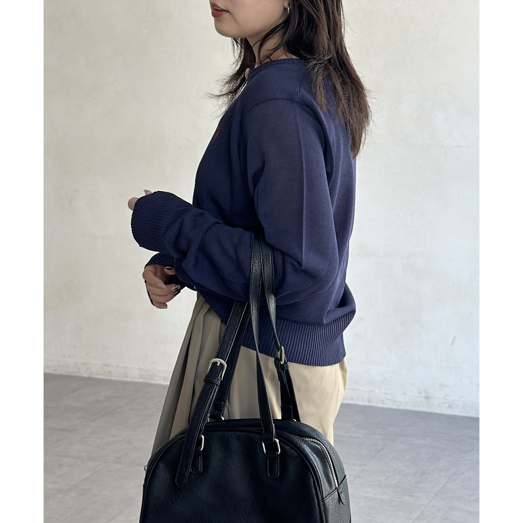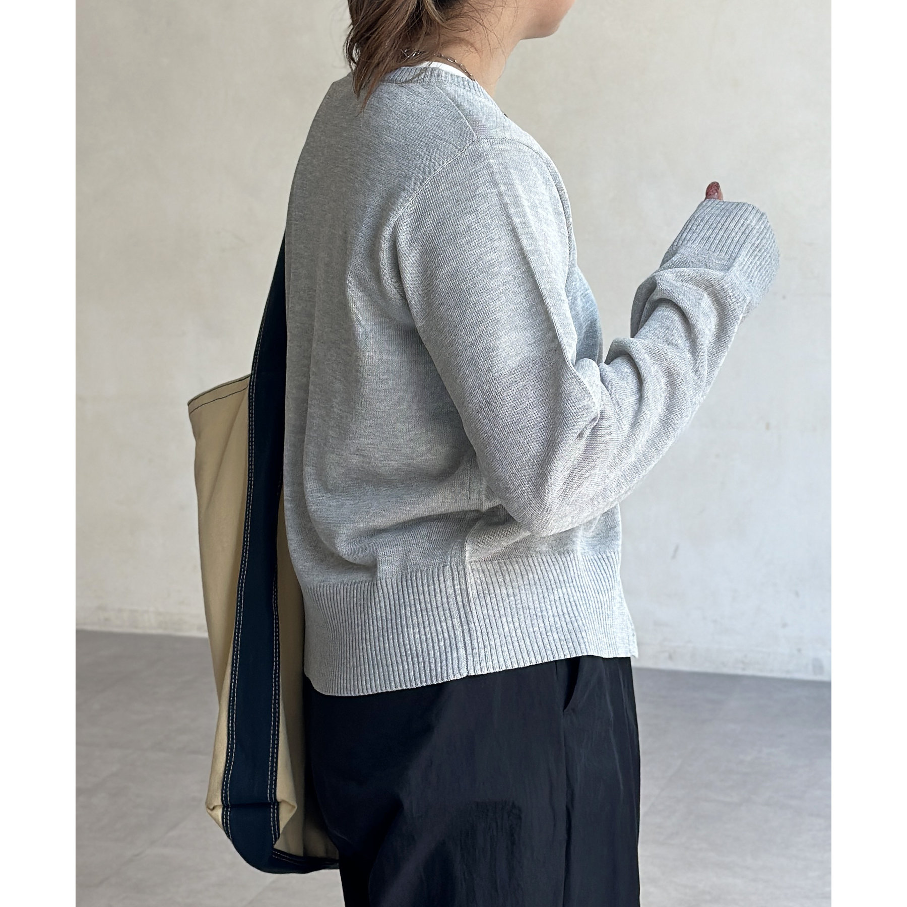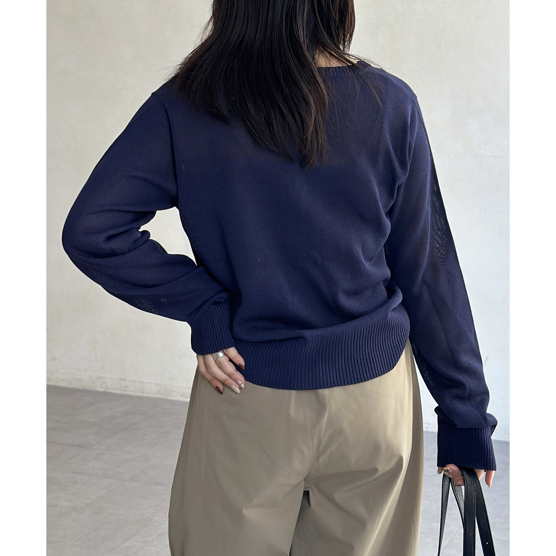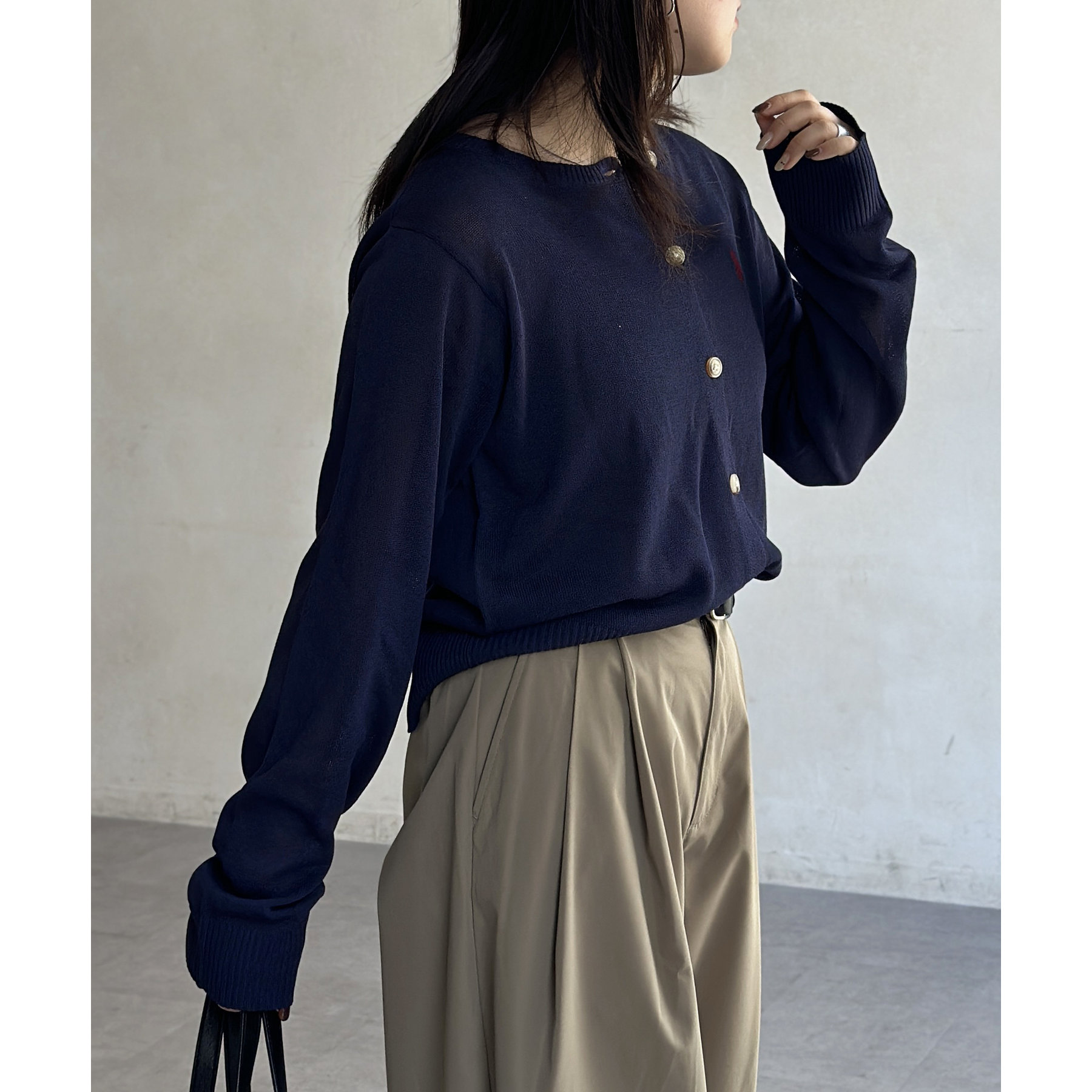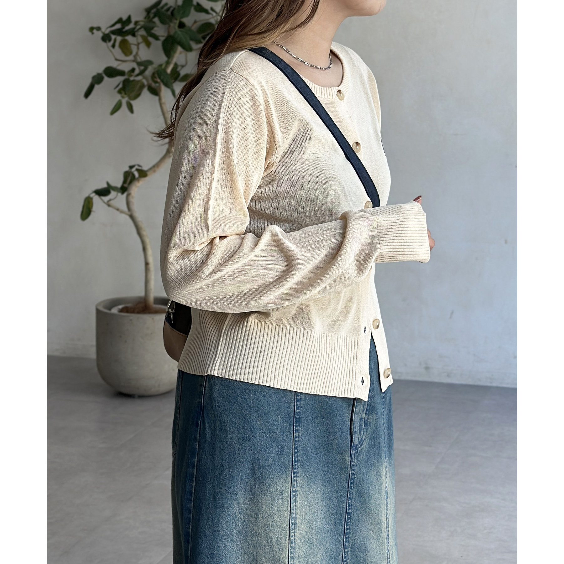 シアー感とさりげないロゴがポイント!これからの時期に重宝するクルーネックカーディガン