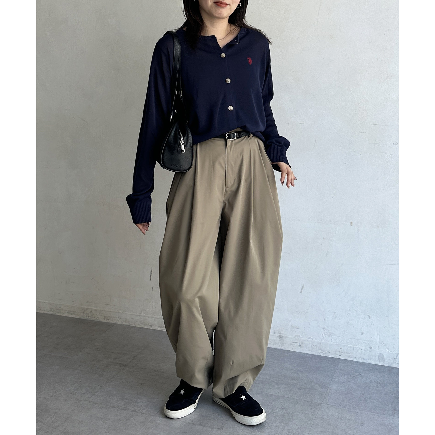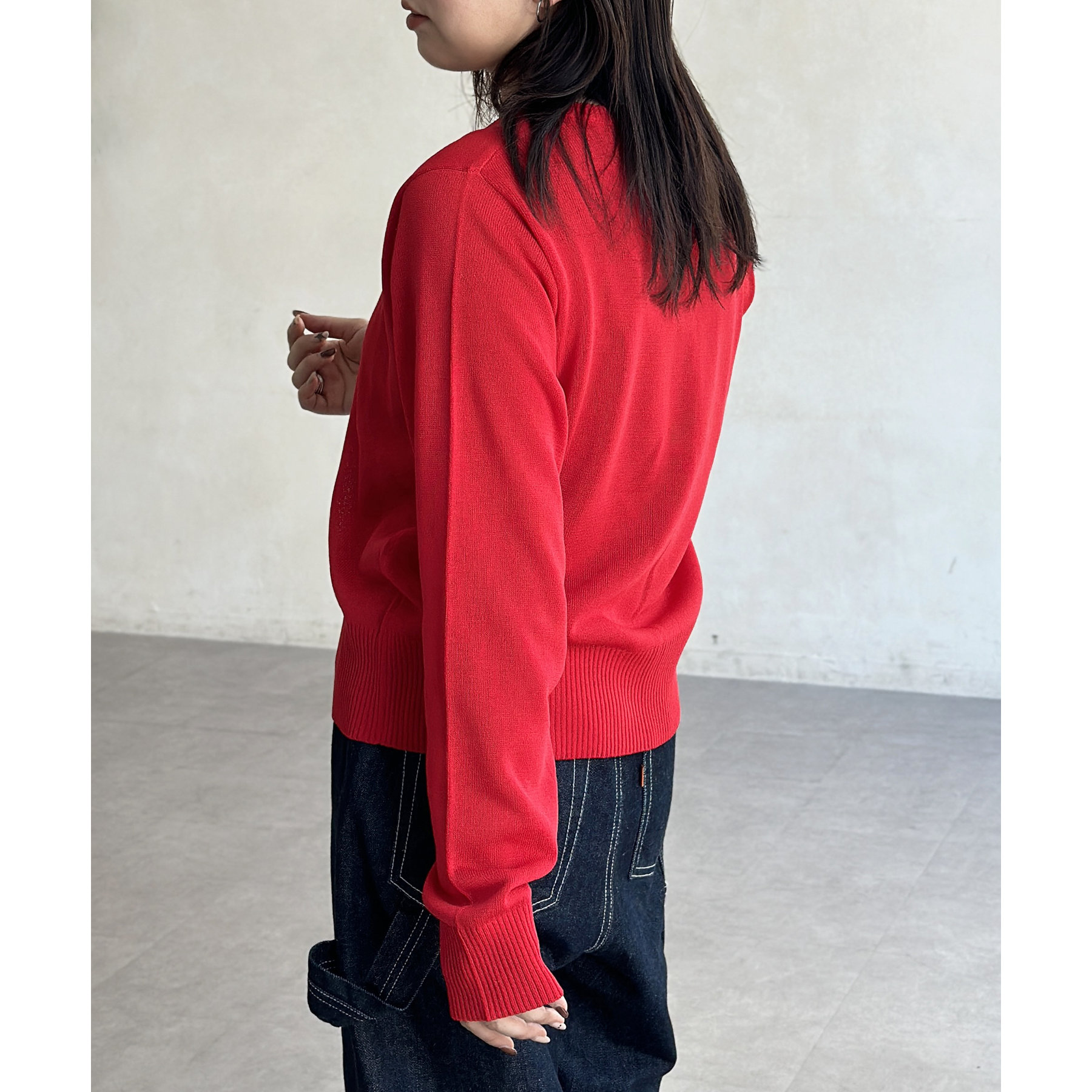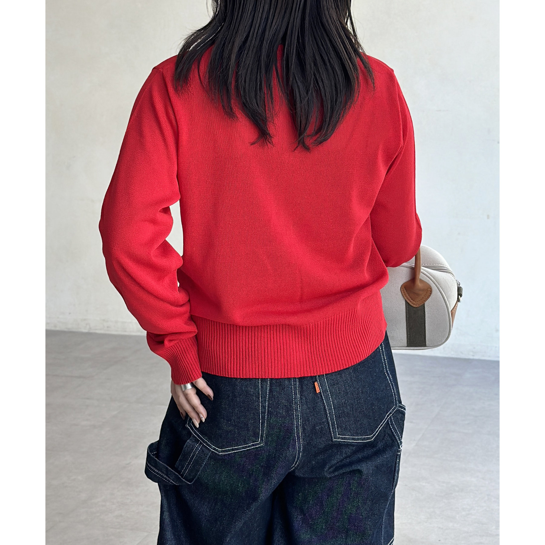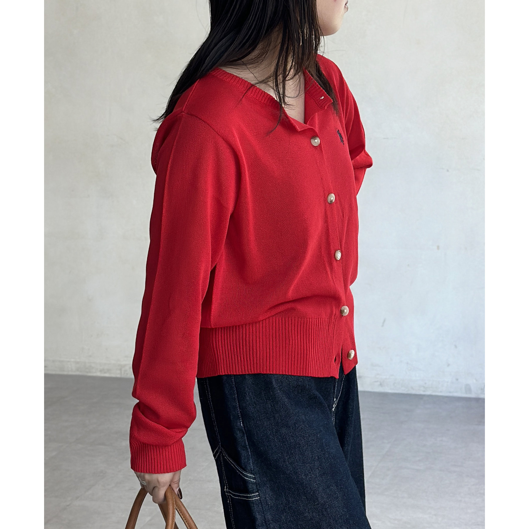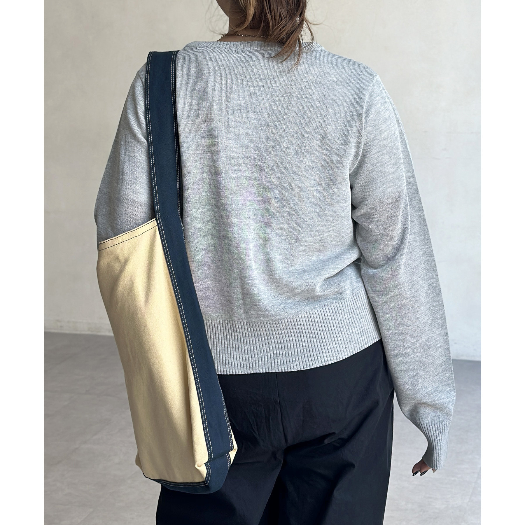シアー感とさりげないロゴがポイント!これからの時期に重宝するクルーネックカーディガン