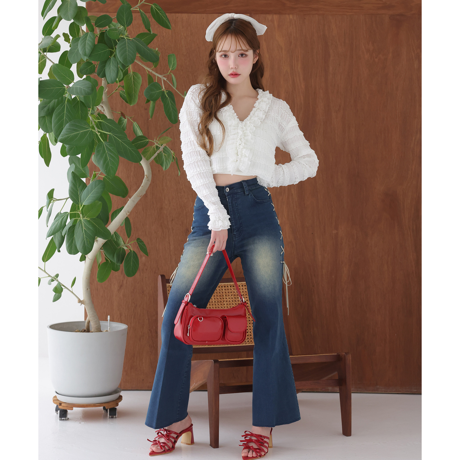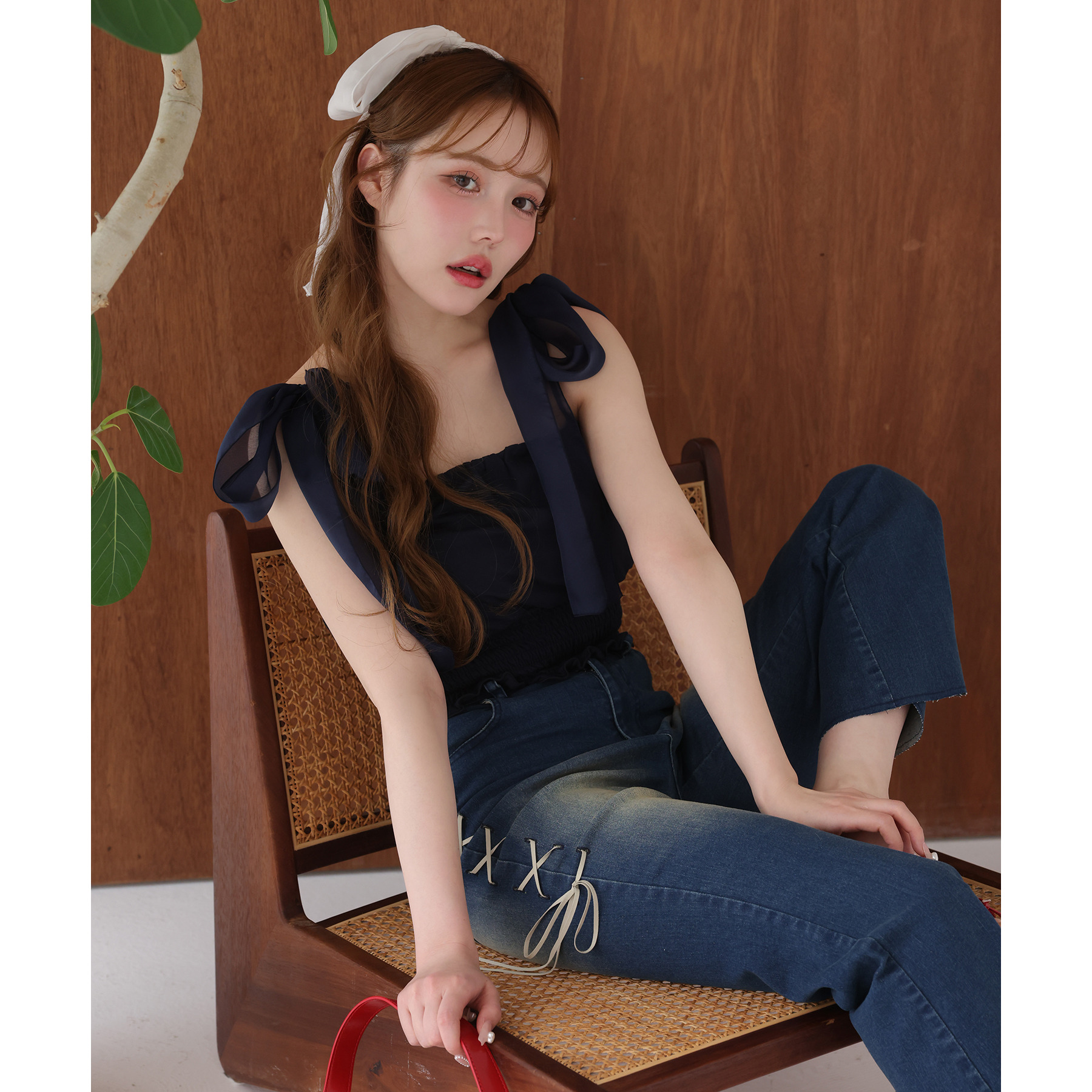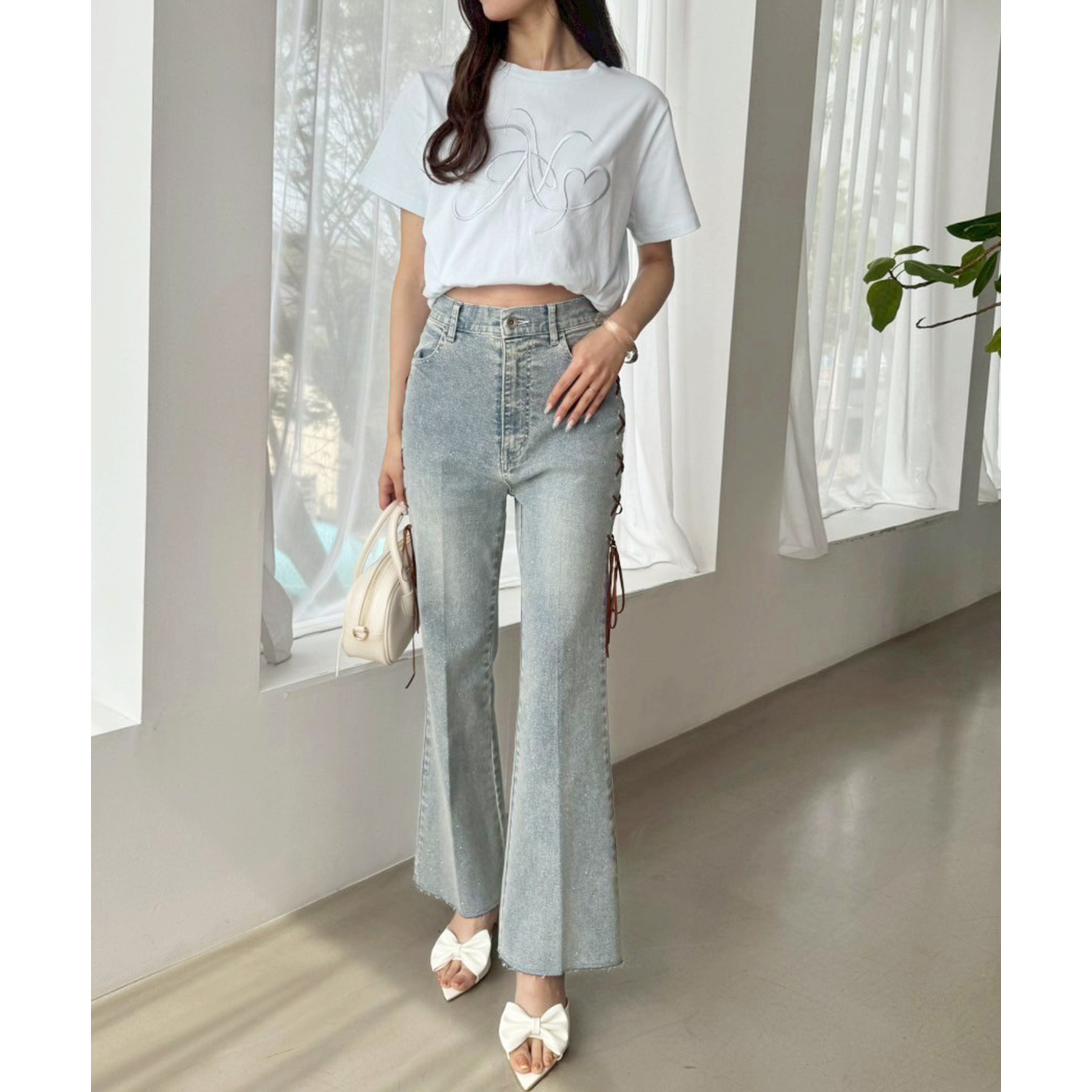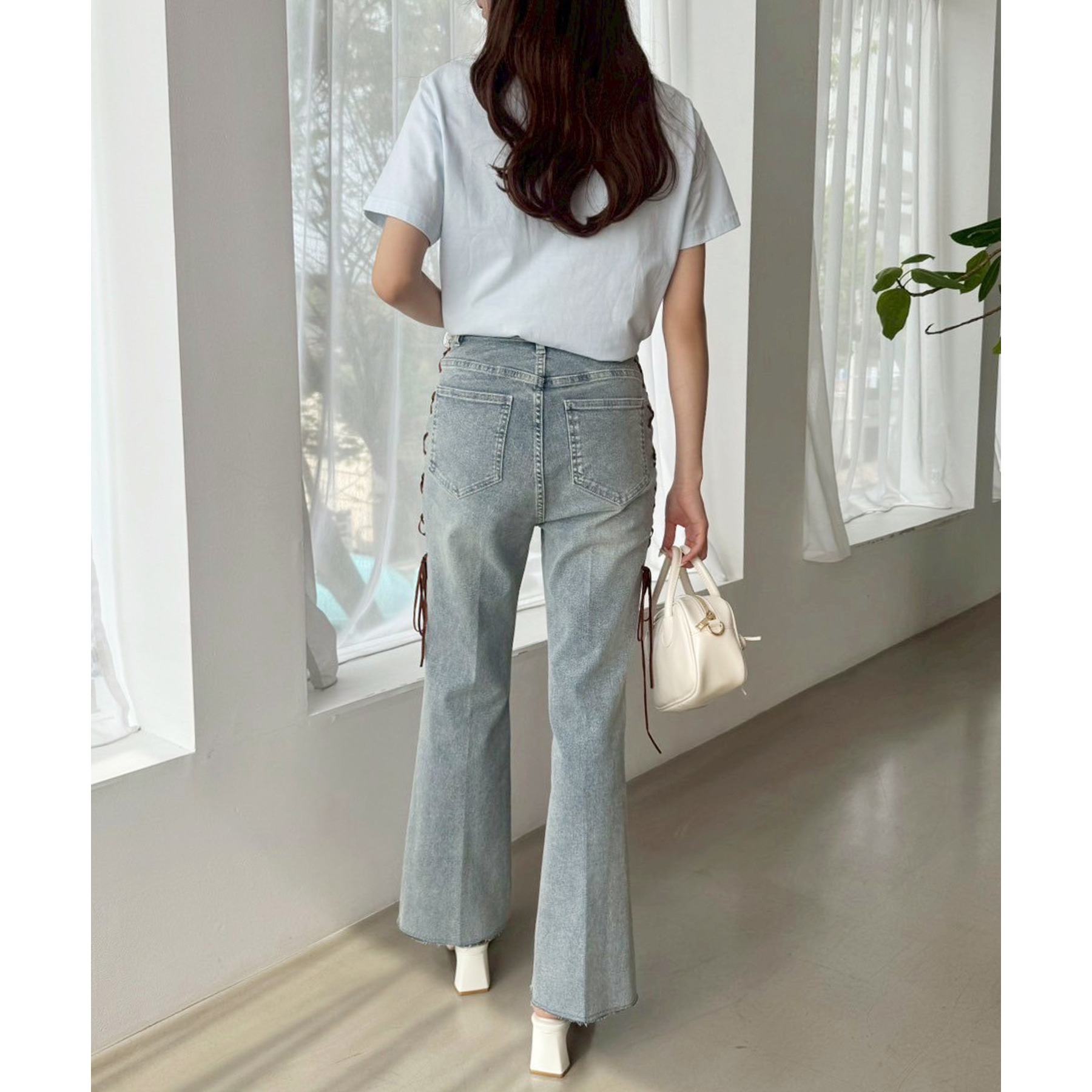 サイドのレースアップがおしゃれ見えするデニムパンツ