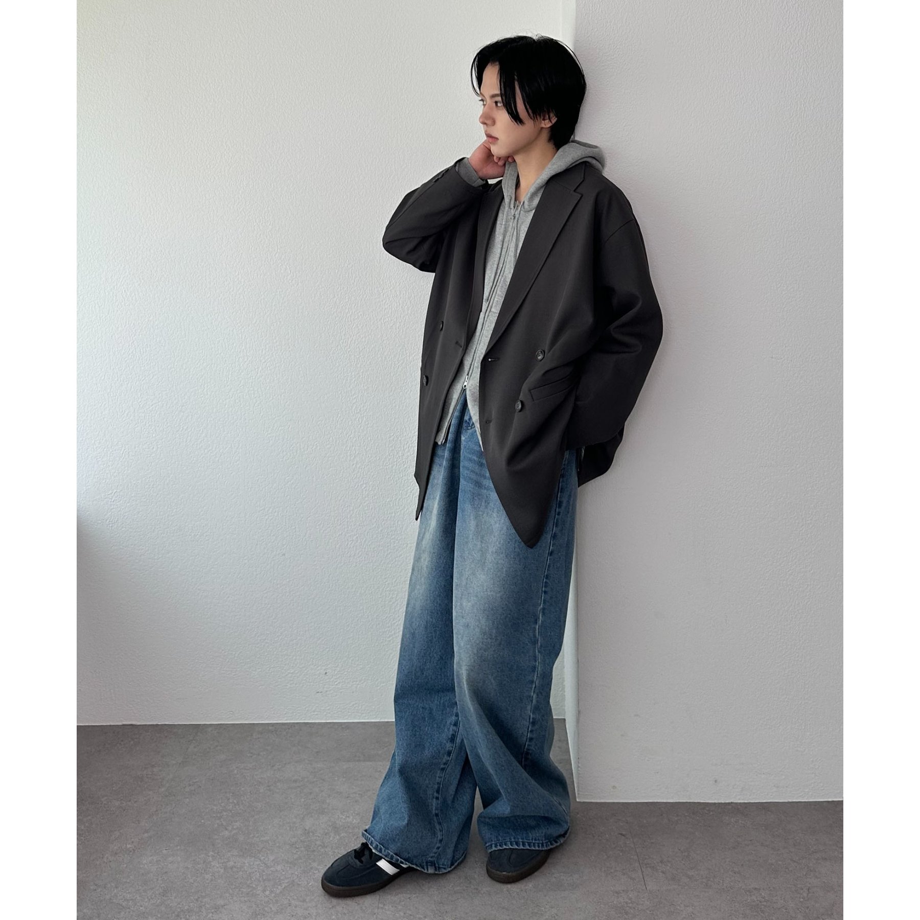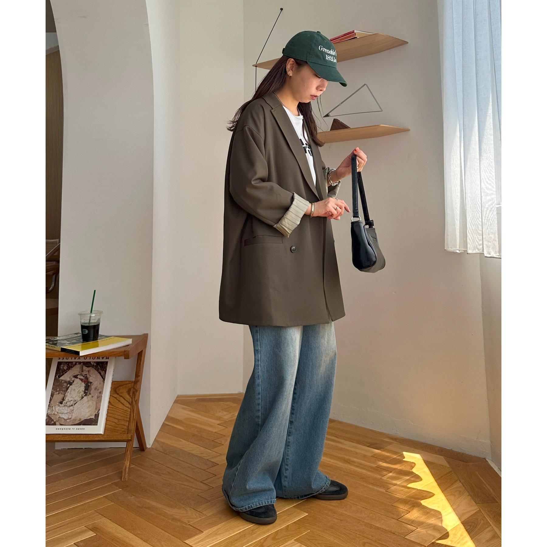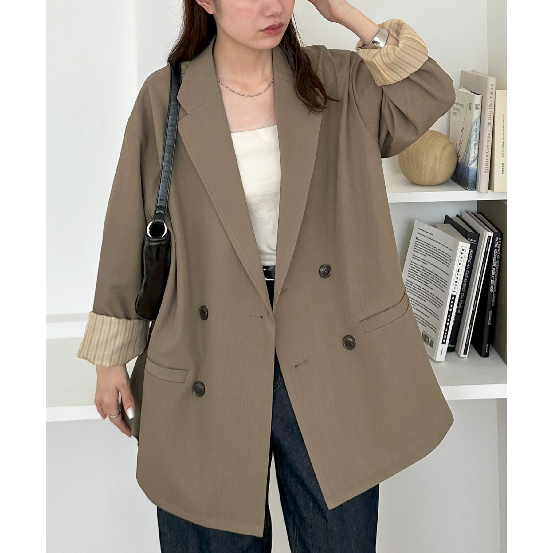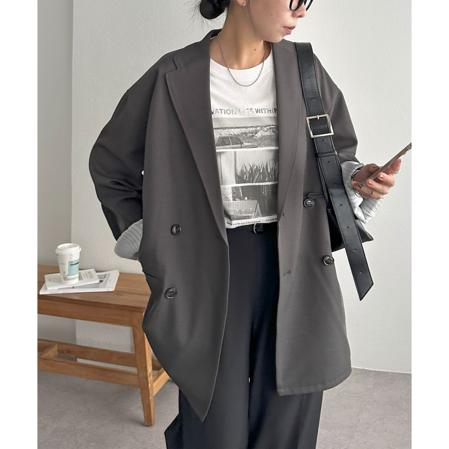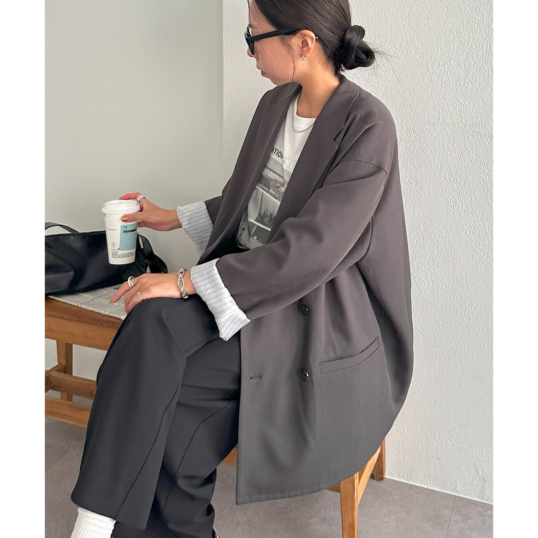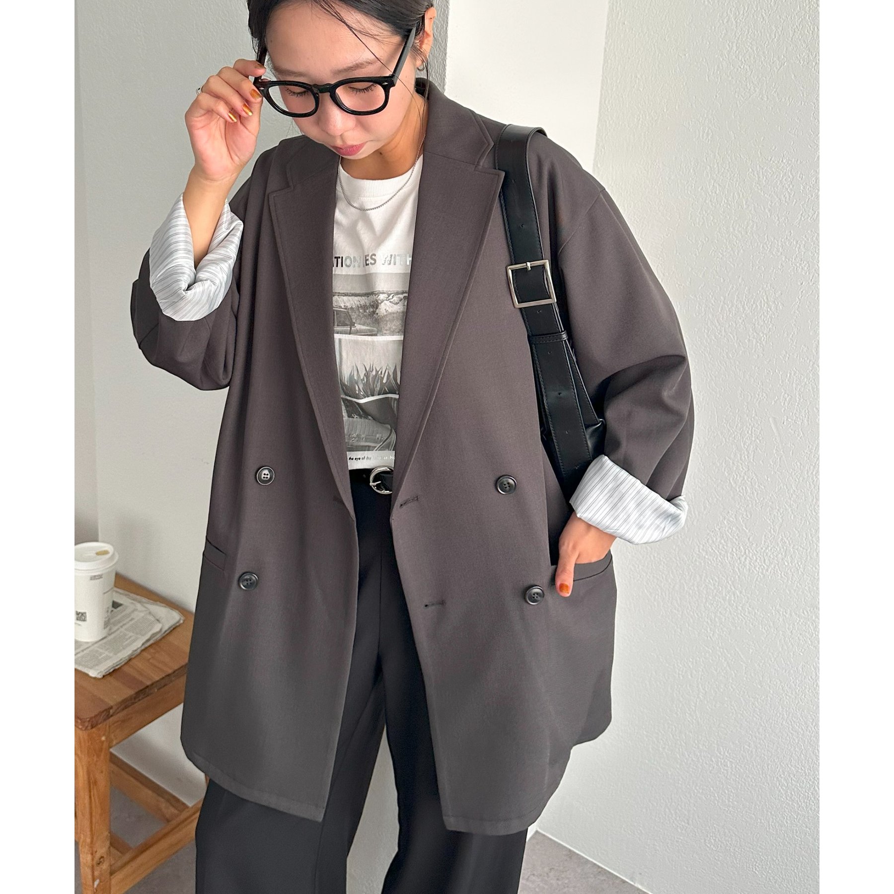 ゆったりとしたシルエットで、カチッとしすぎない柔らかさがありながらも、ダブルブレストデザインでしっかり感も備えたジャケット。