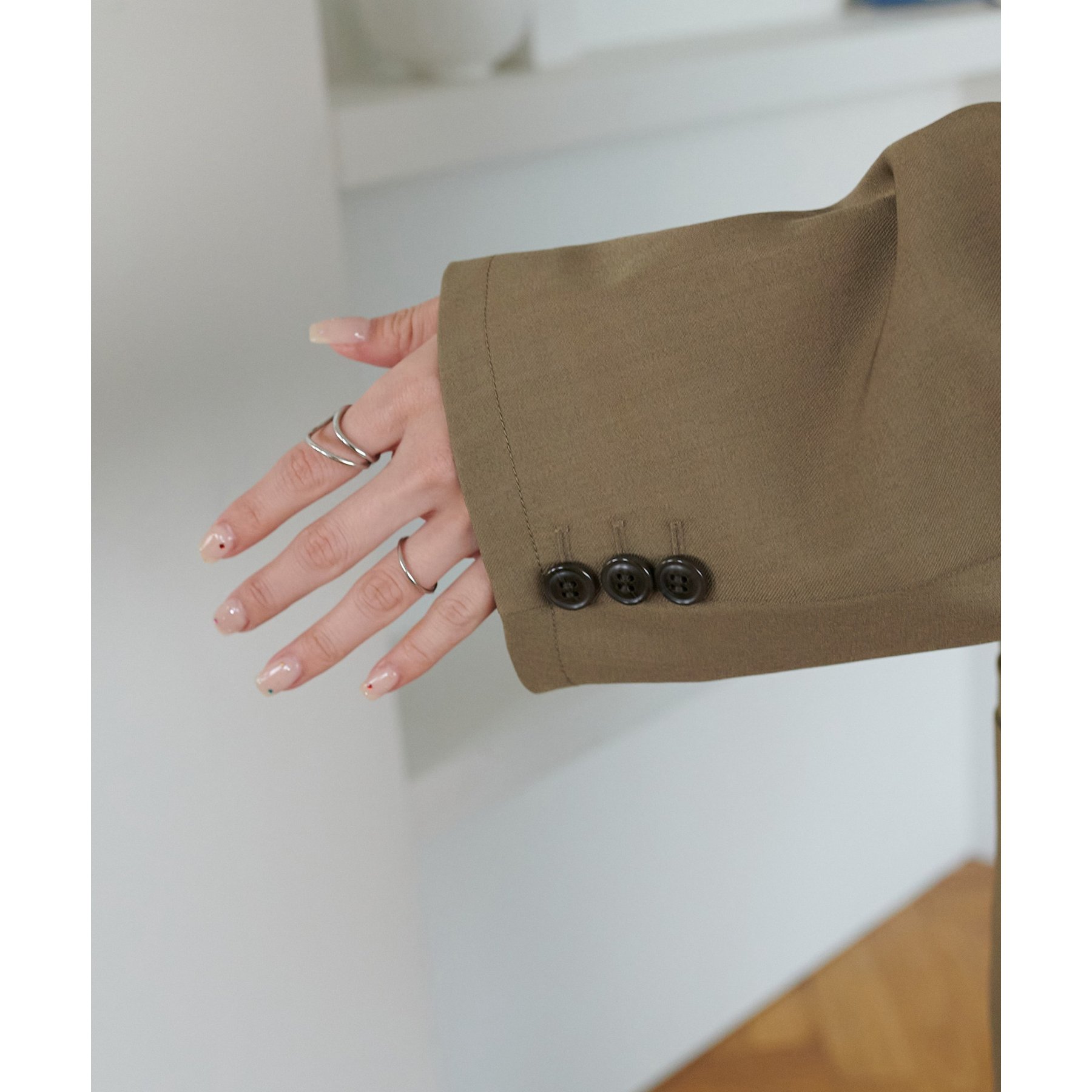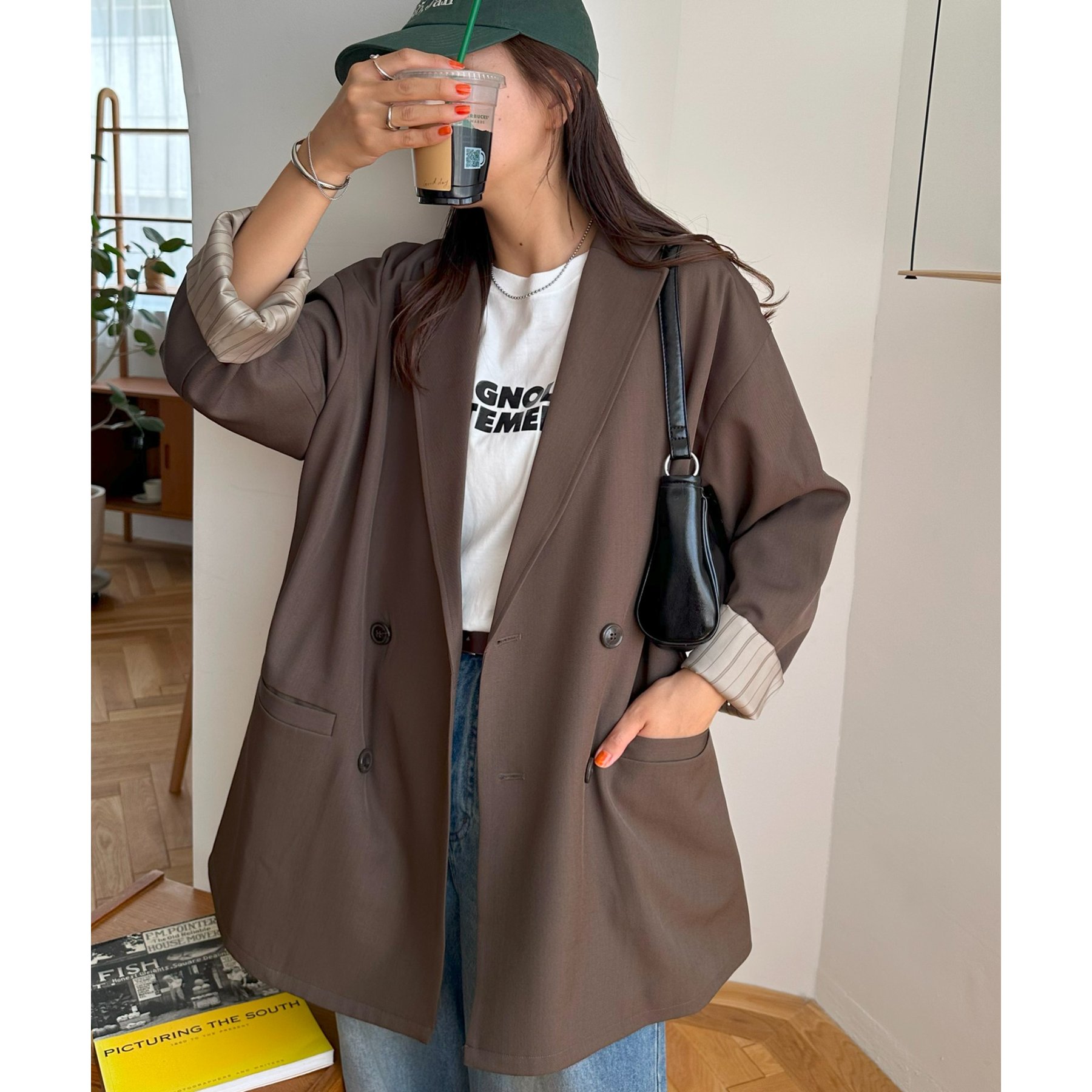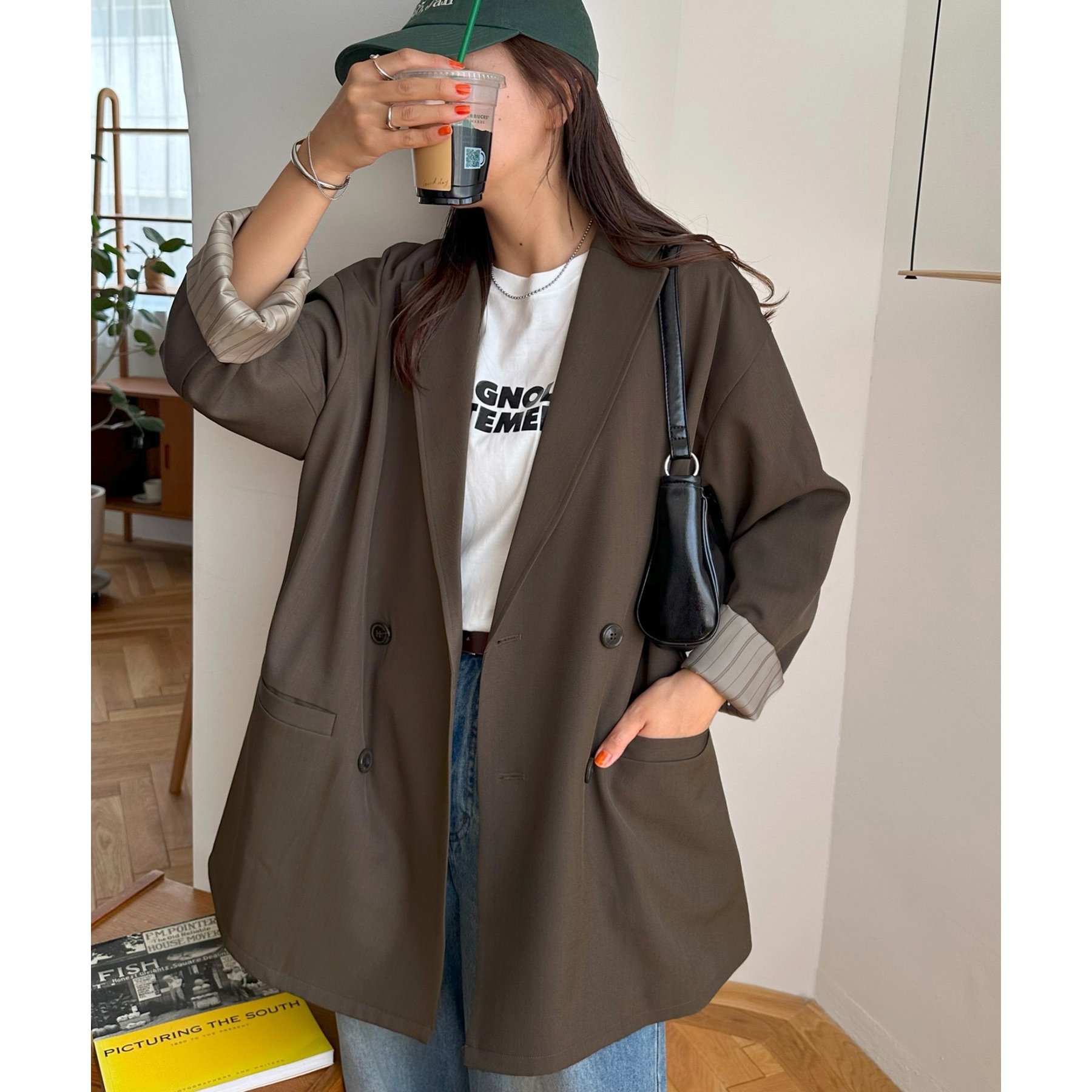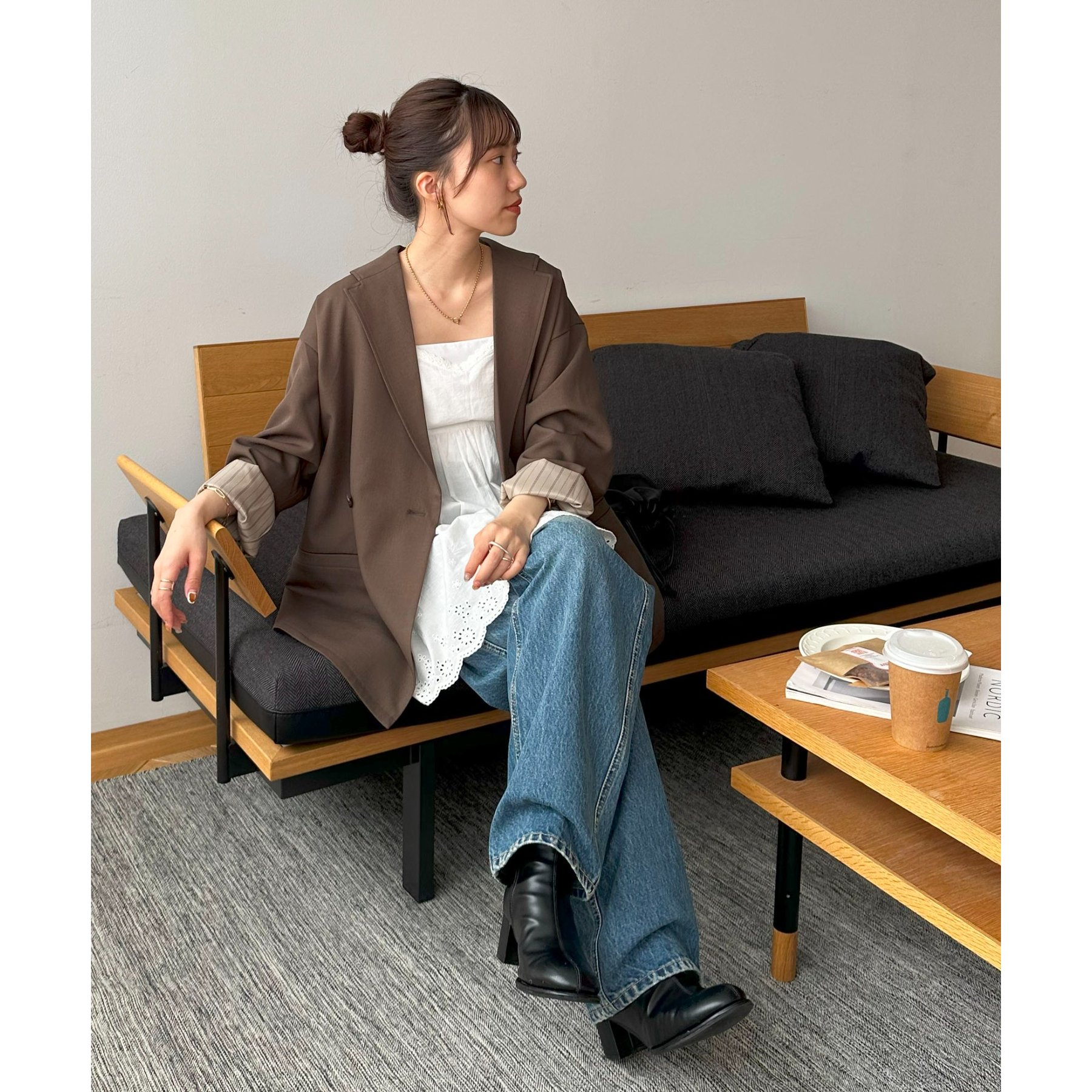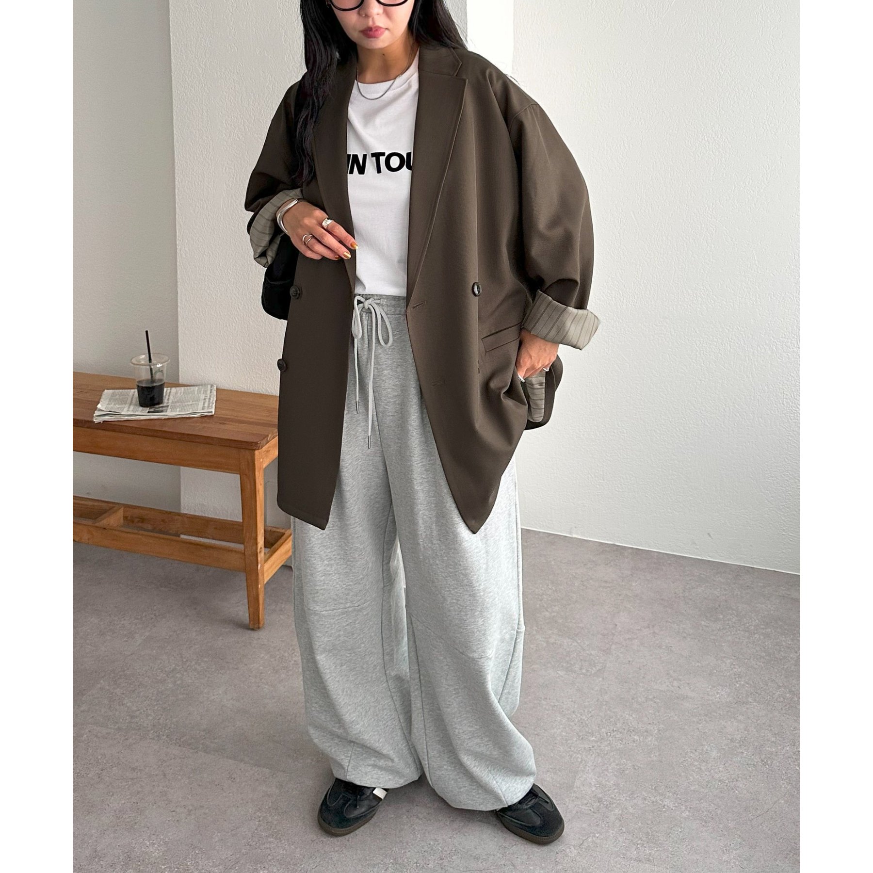 ゆったりとしたシルエットで、カチッとしすぎない柔らかさがありながらも、ダブルブレストデザインでしっかり感も備えたジャケット。
