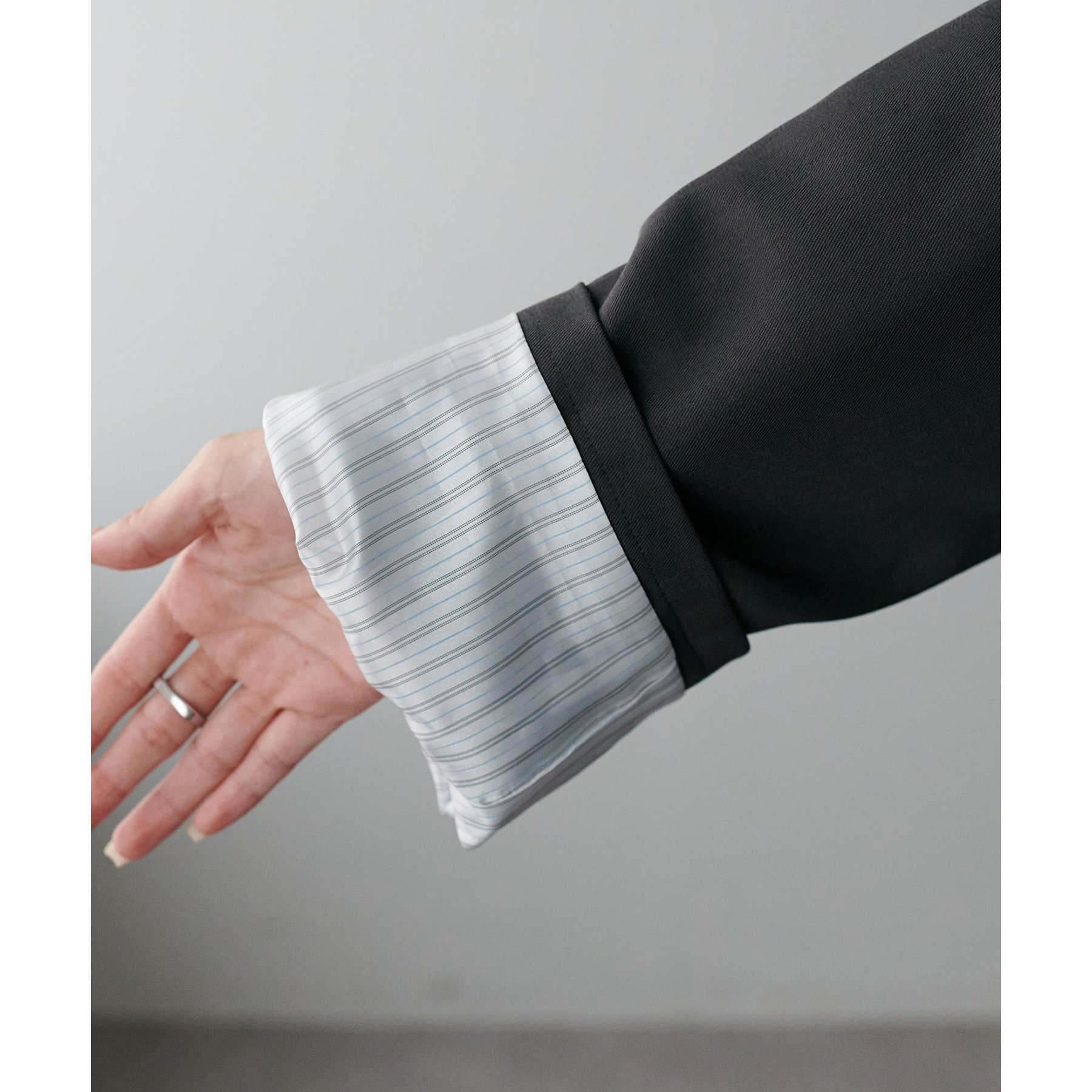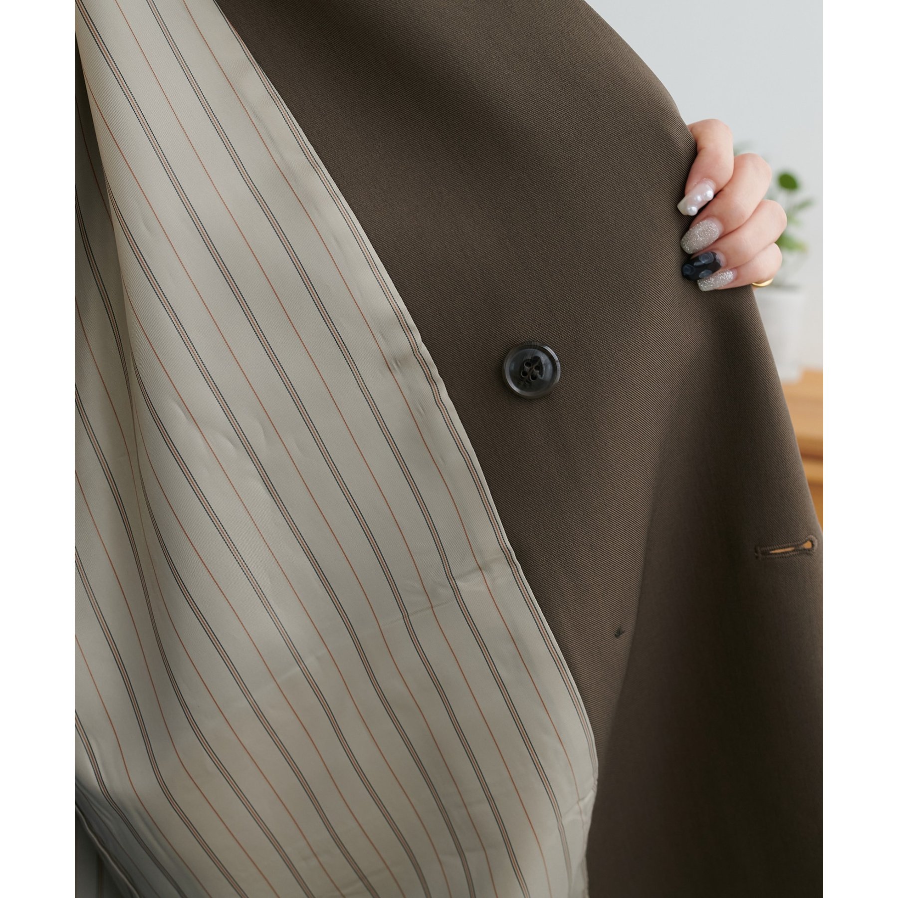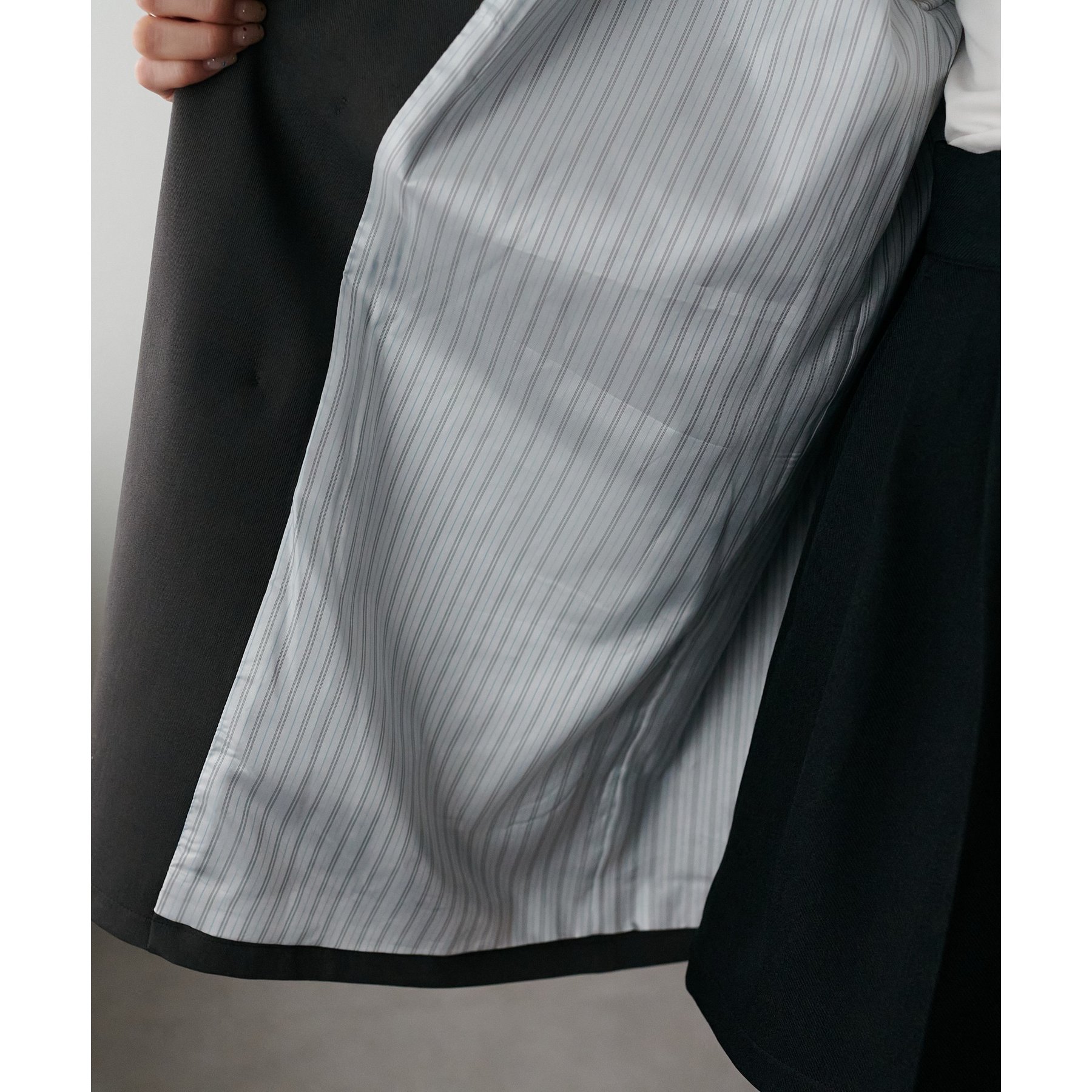165cmレディーススタッフ:中に厚手のニットを着てももたつかず、秋から春まで長く使えそう。袖口を折り返して着ると、裏地のストライプ柄が見えて可愛いです!
