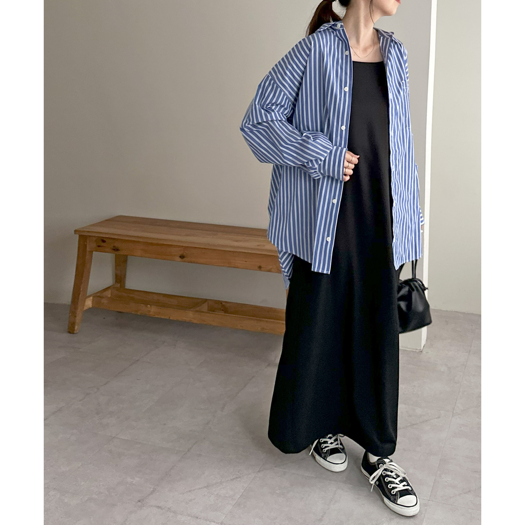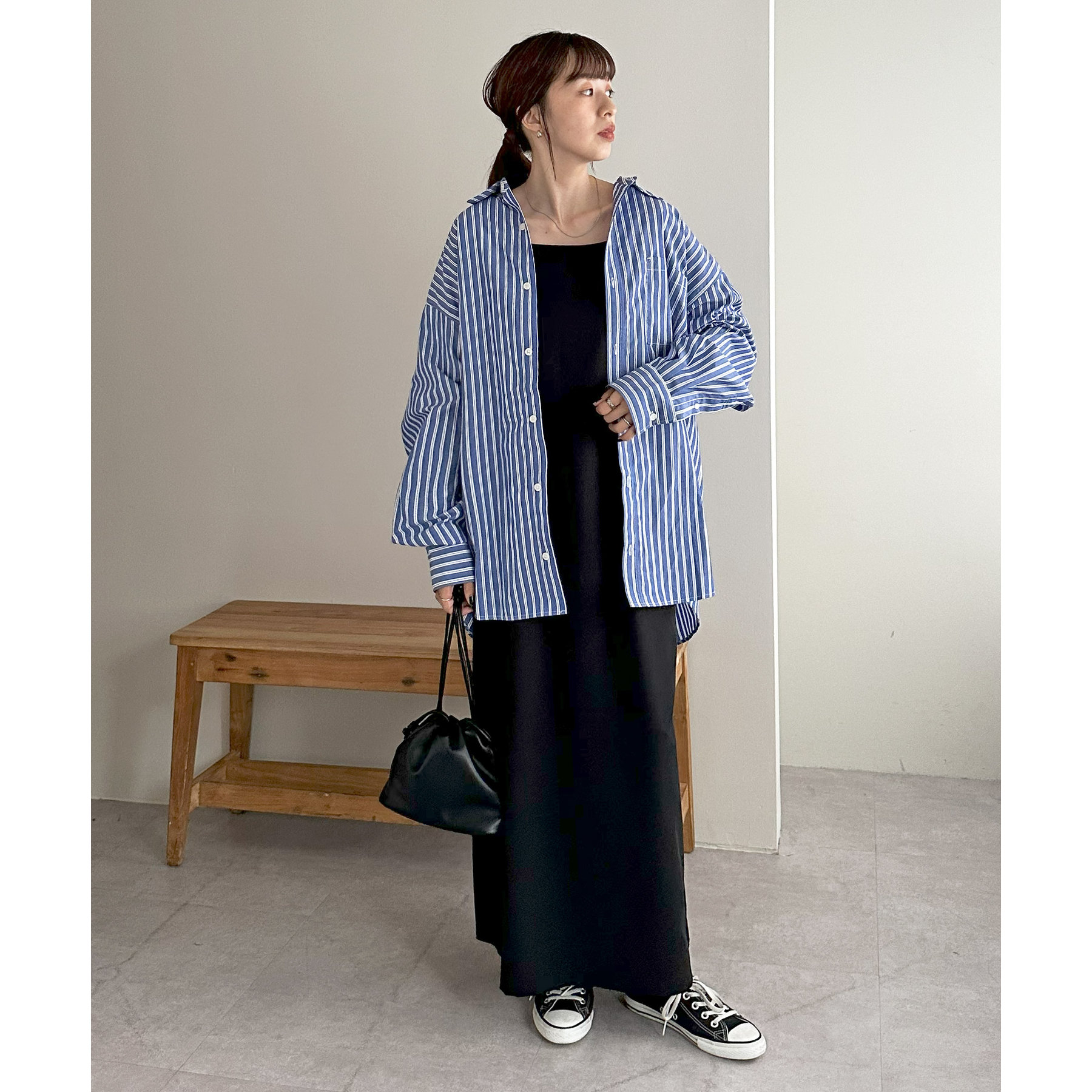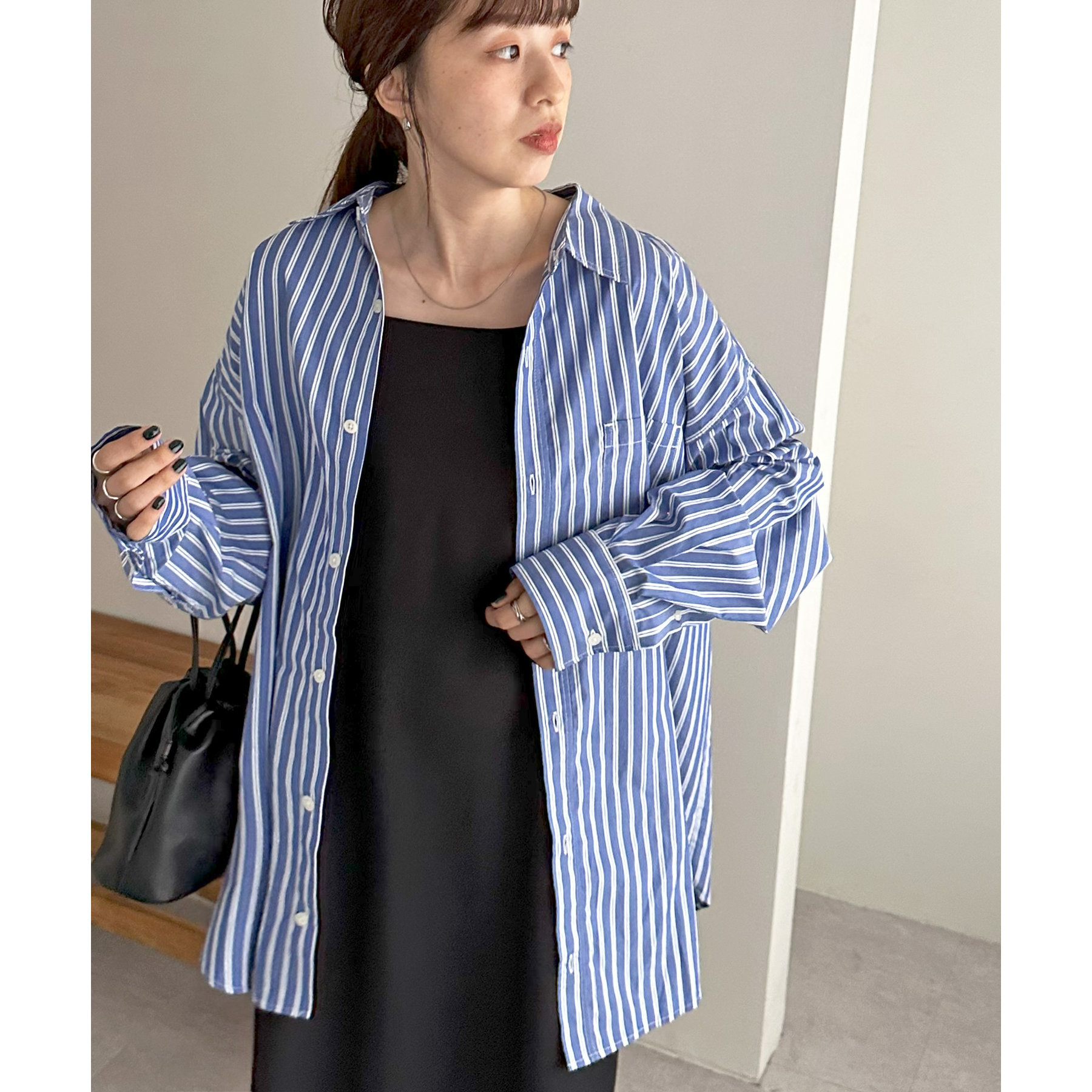 シンプルなシャツはキャミソールやタンクトップ、キャミワンピースの羽織としてヘルシーな着こなしが叶います。