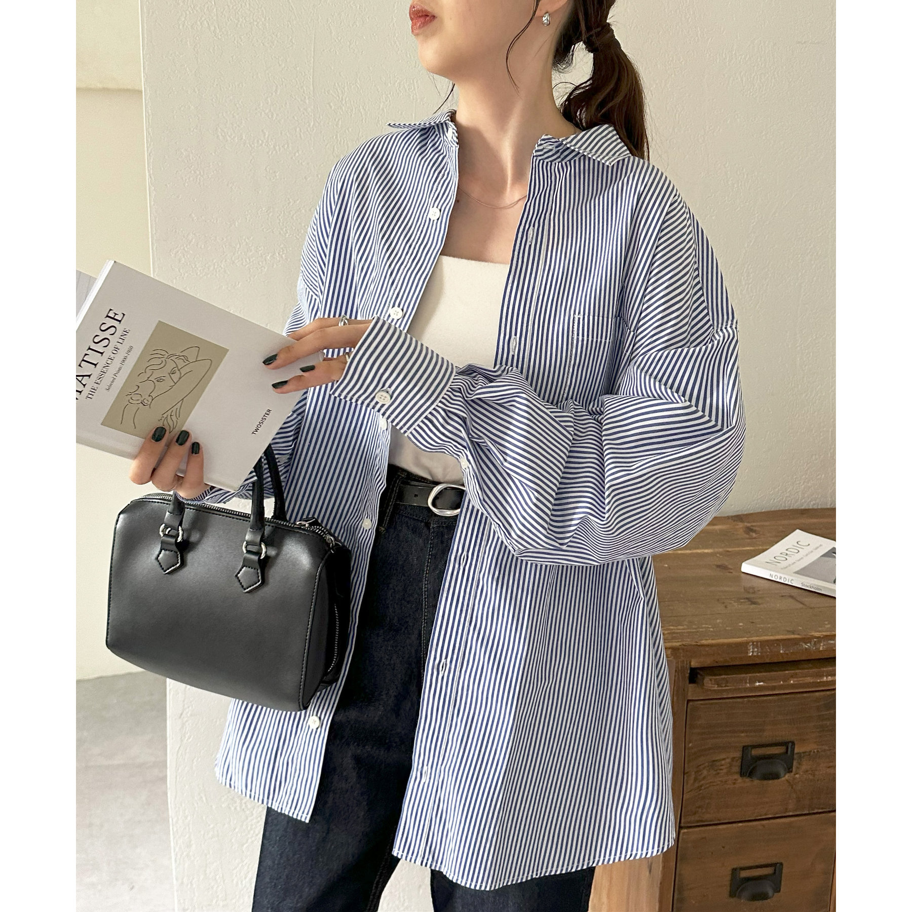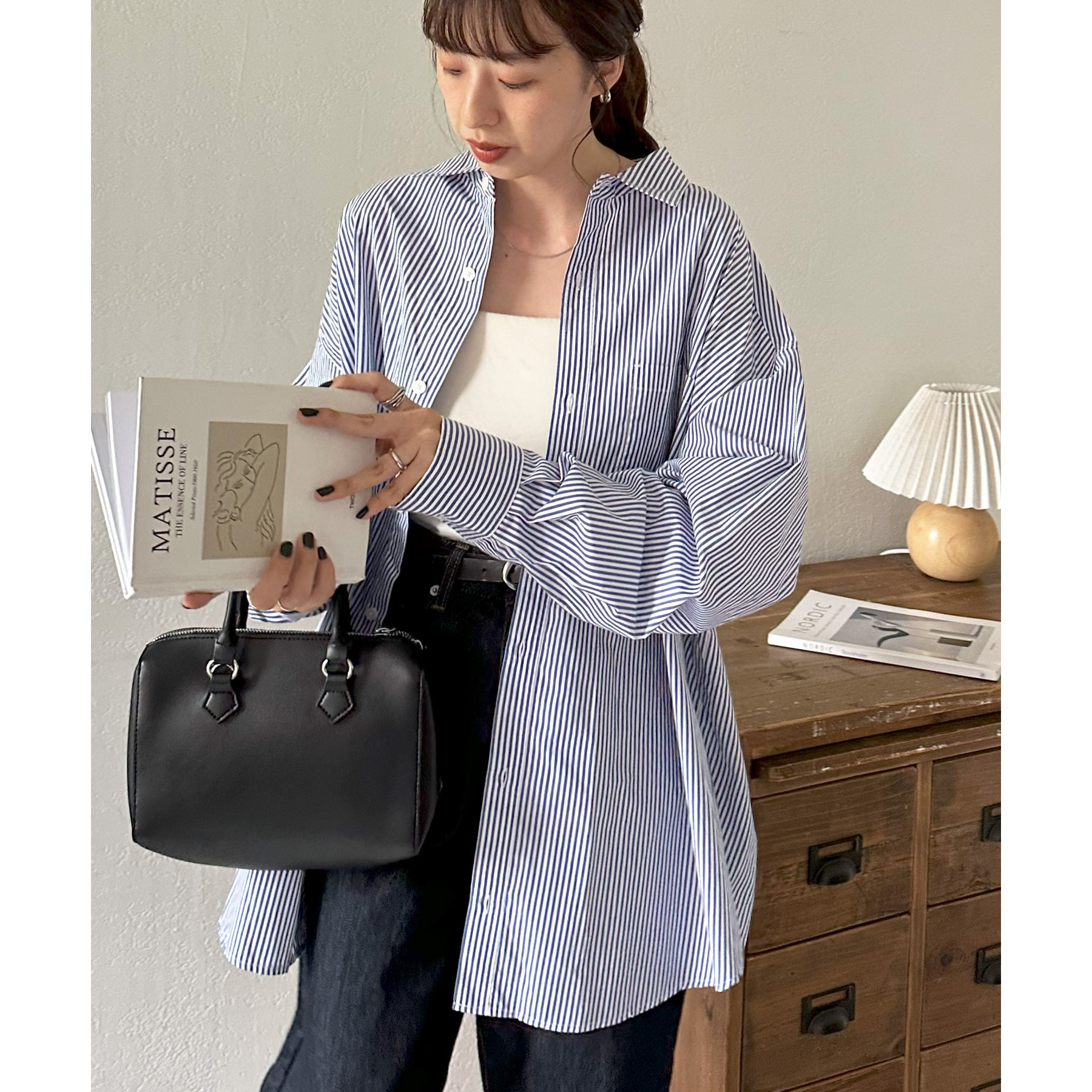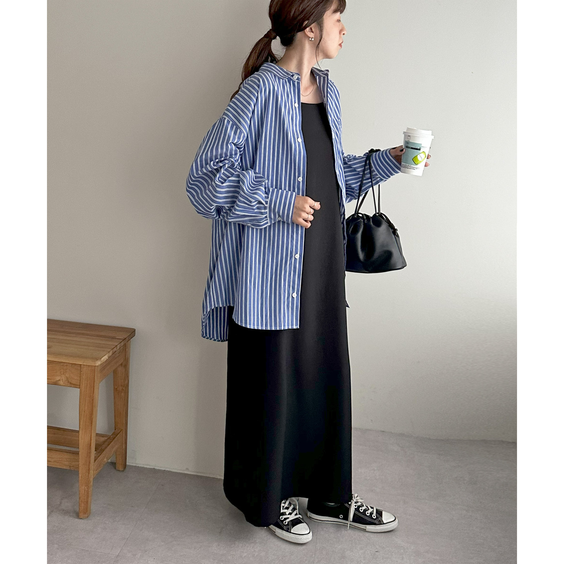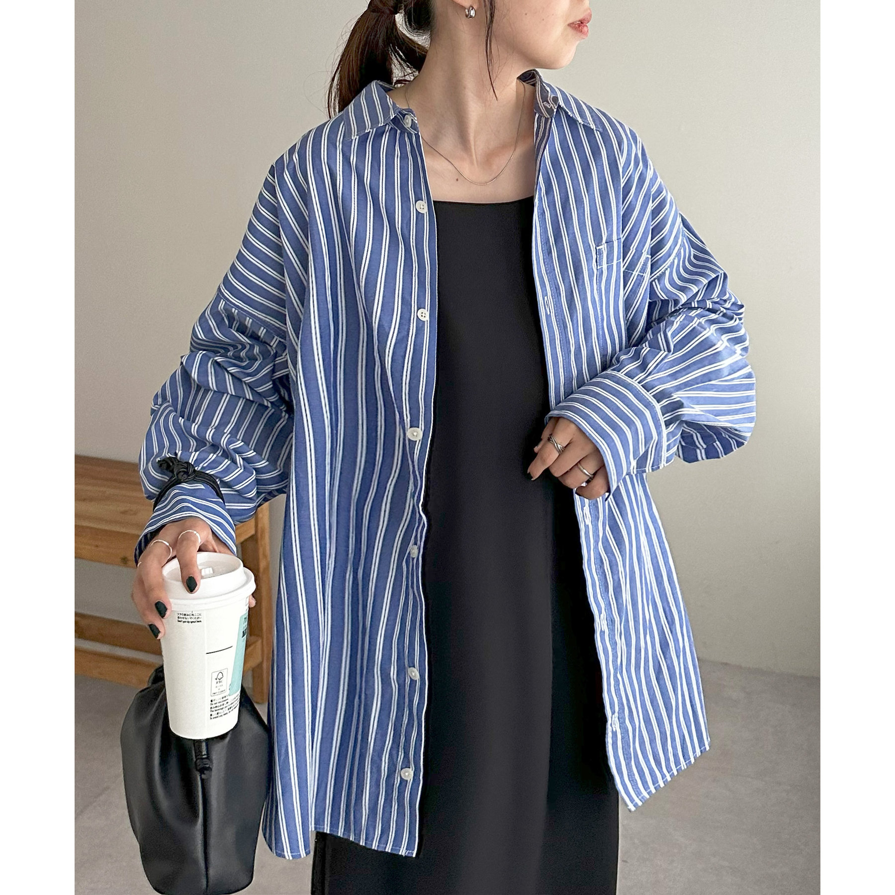 シンプルなシャツはキャミソールやタンクトップ、キャミワンピースの羽織としてヘルシーな着こなしが叶います。