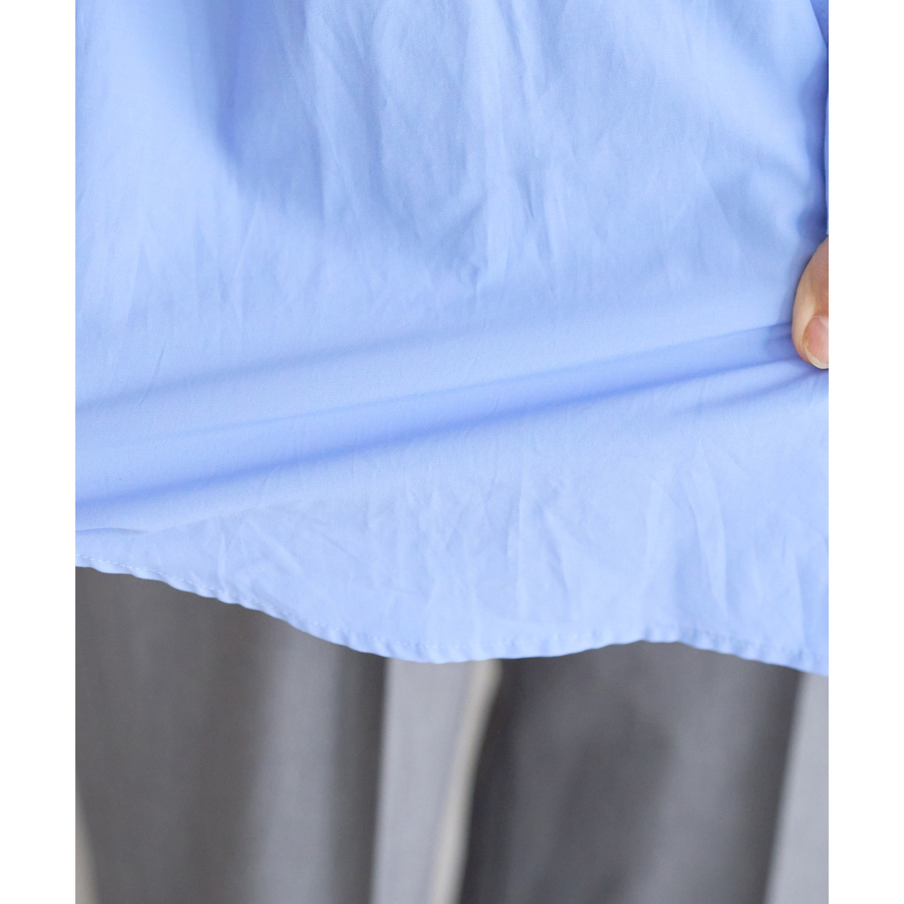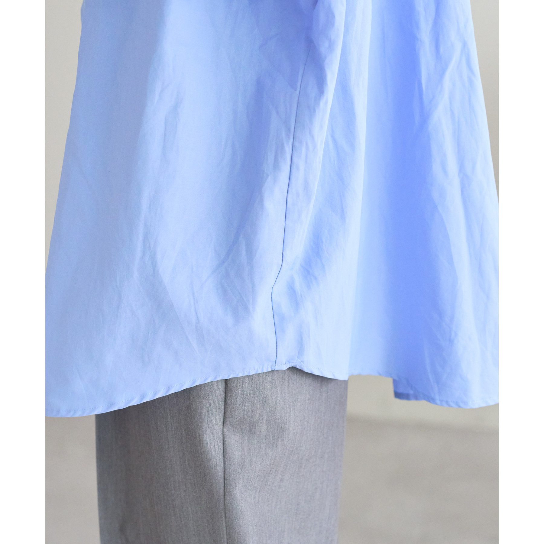 お尻はすっぽり隠れる丈感ですが、裾にスリットが入っているので抜け感があり軽やかな印象に◎