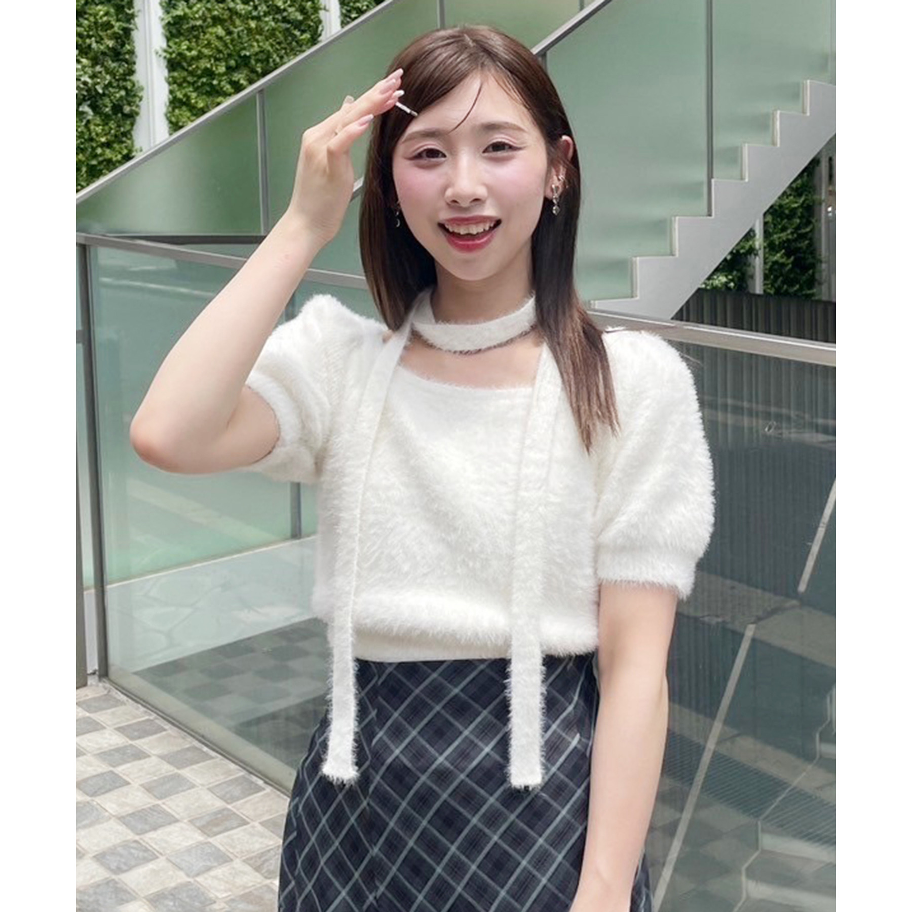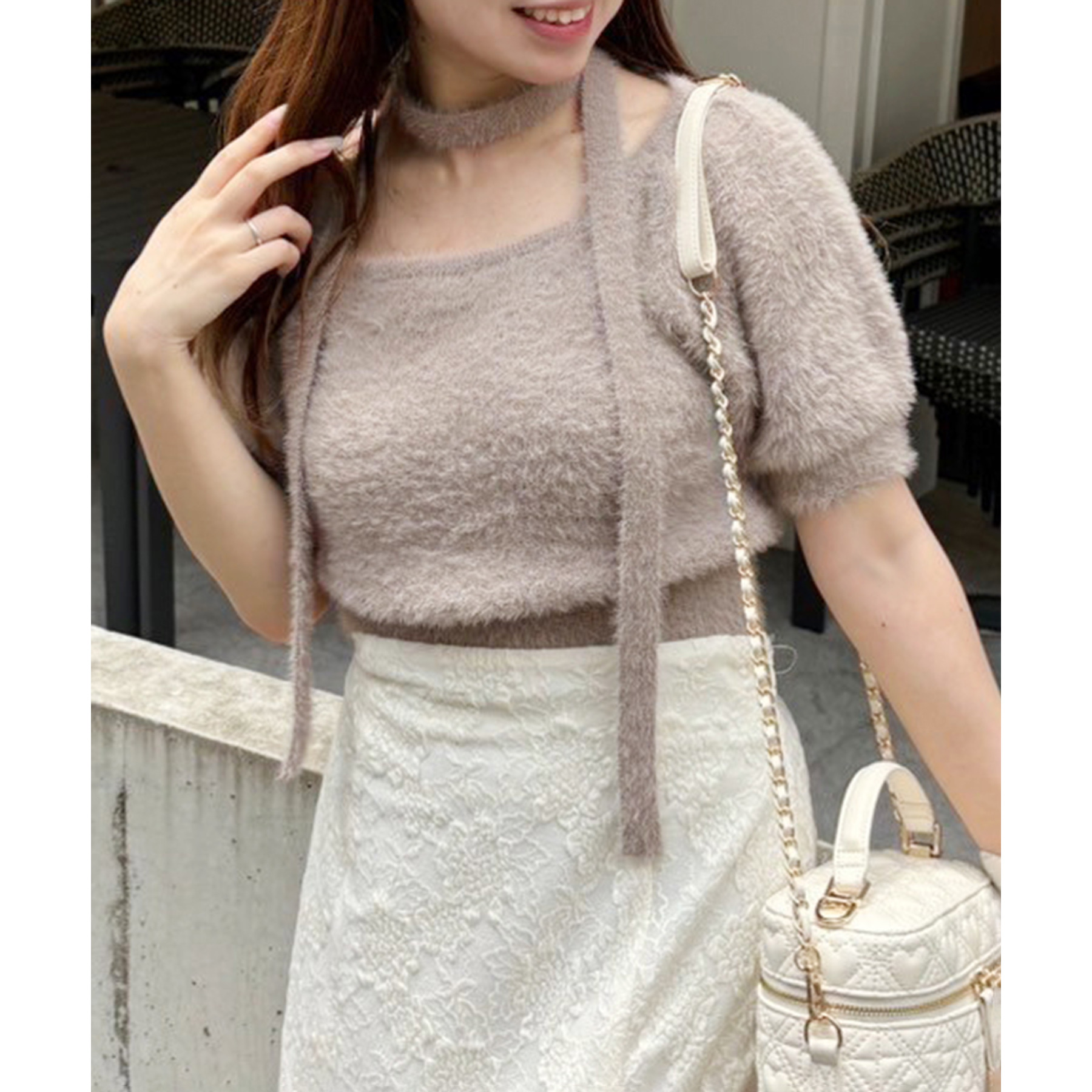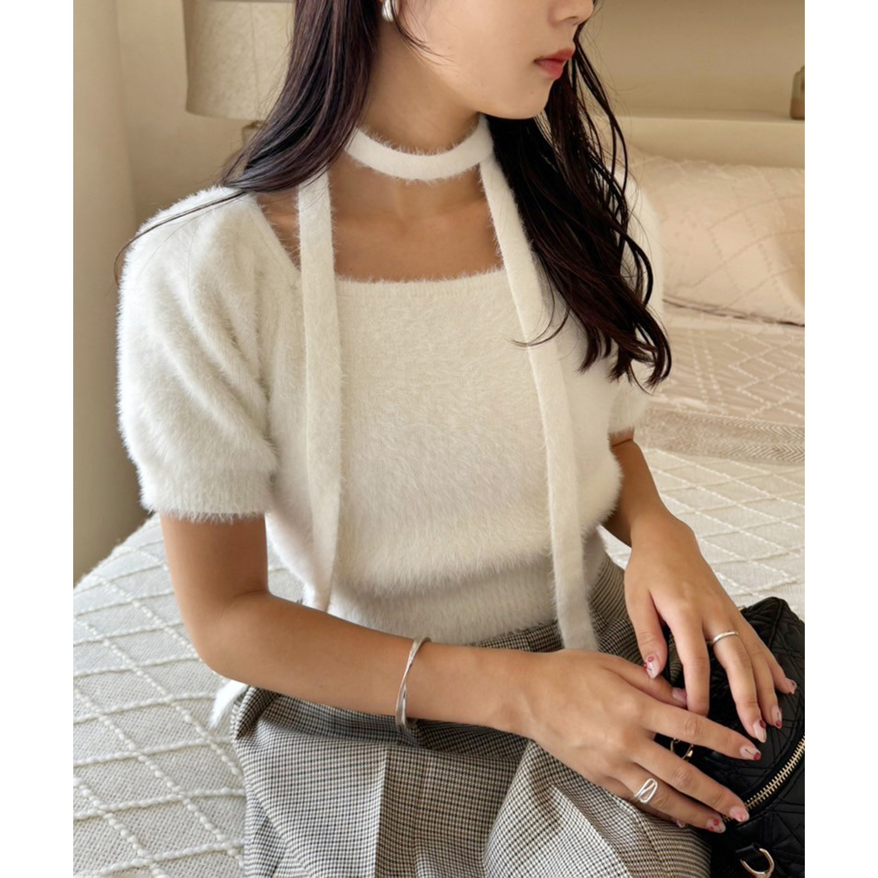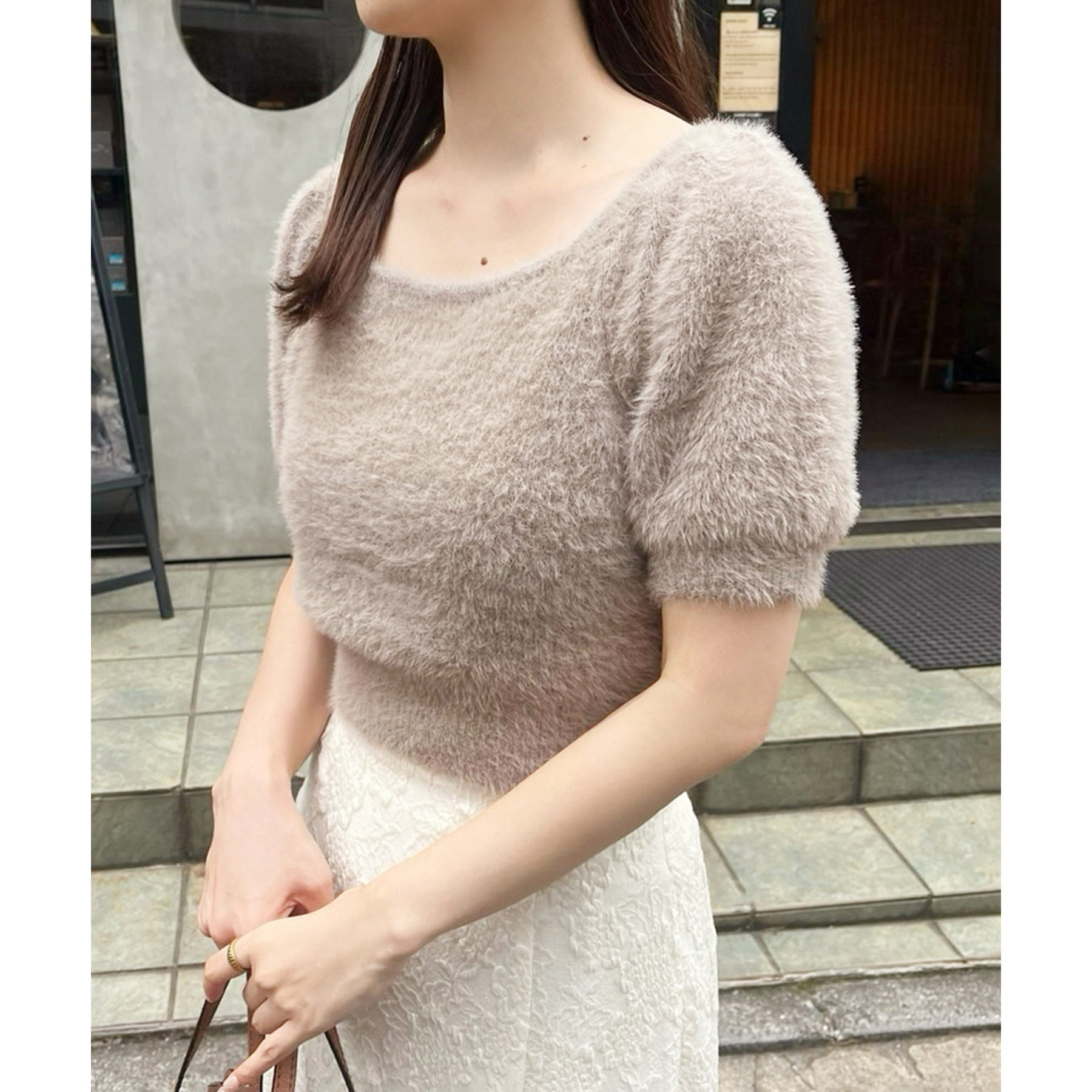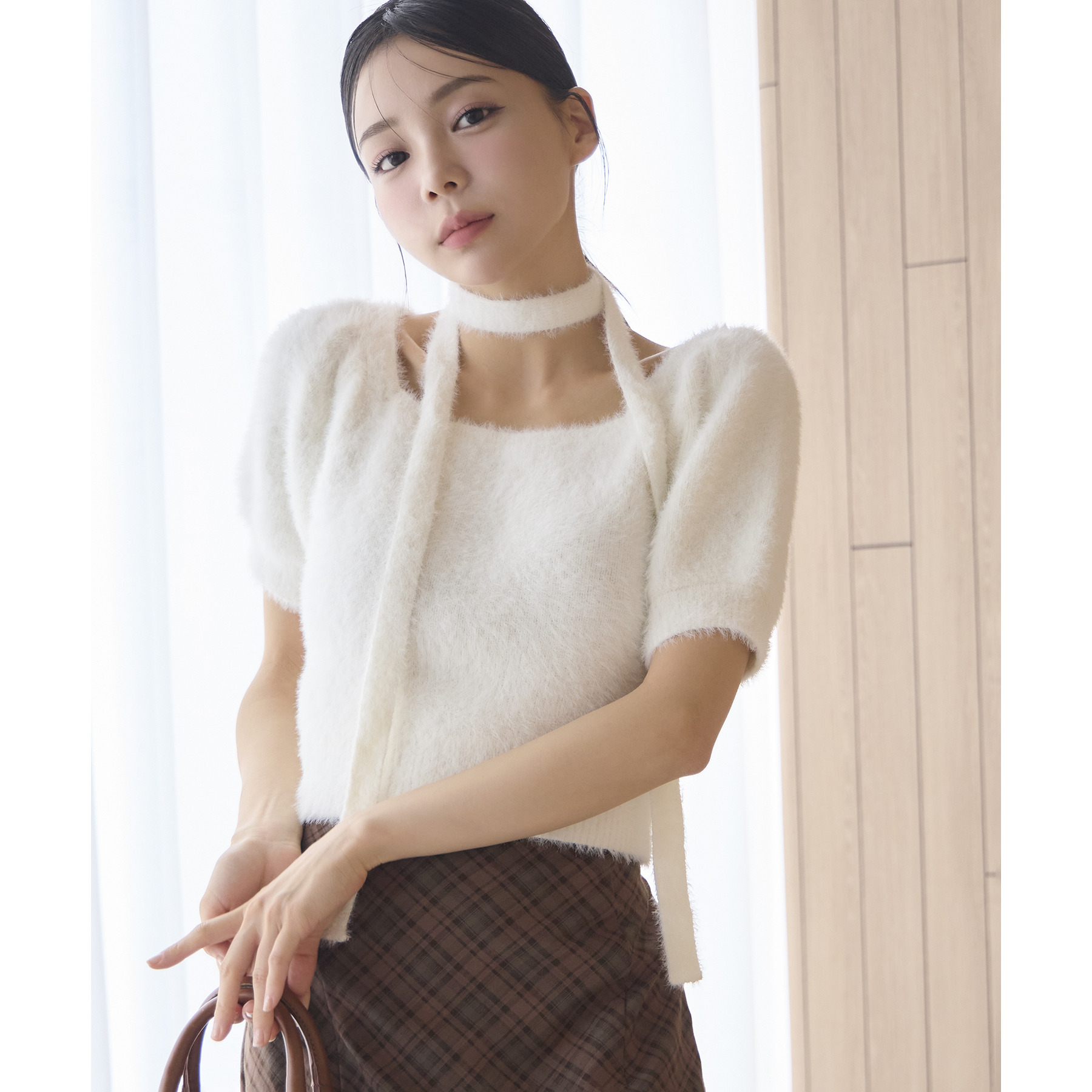 スクエアネックでお顔周りをスッキリ見せてくれます。
