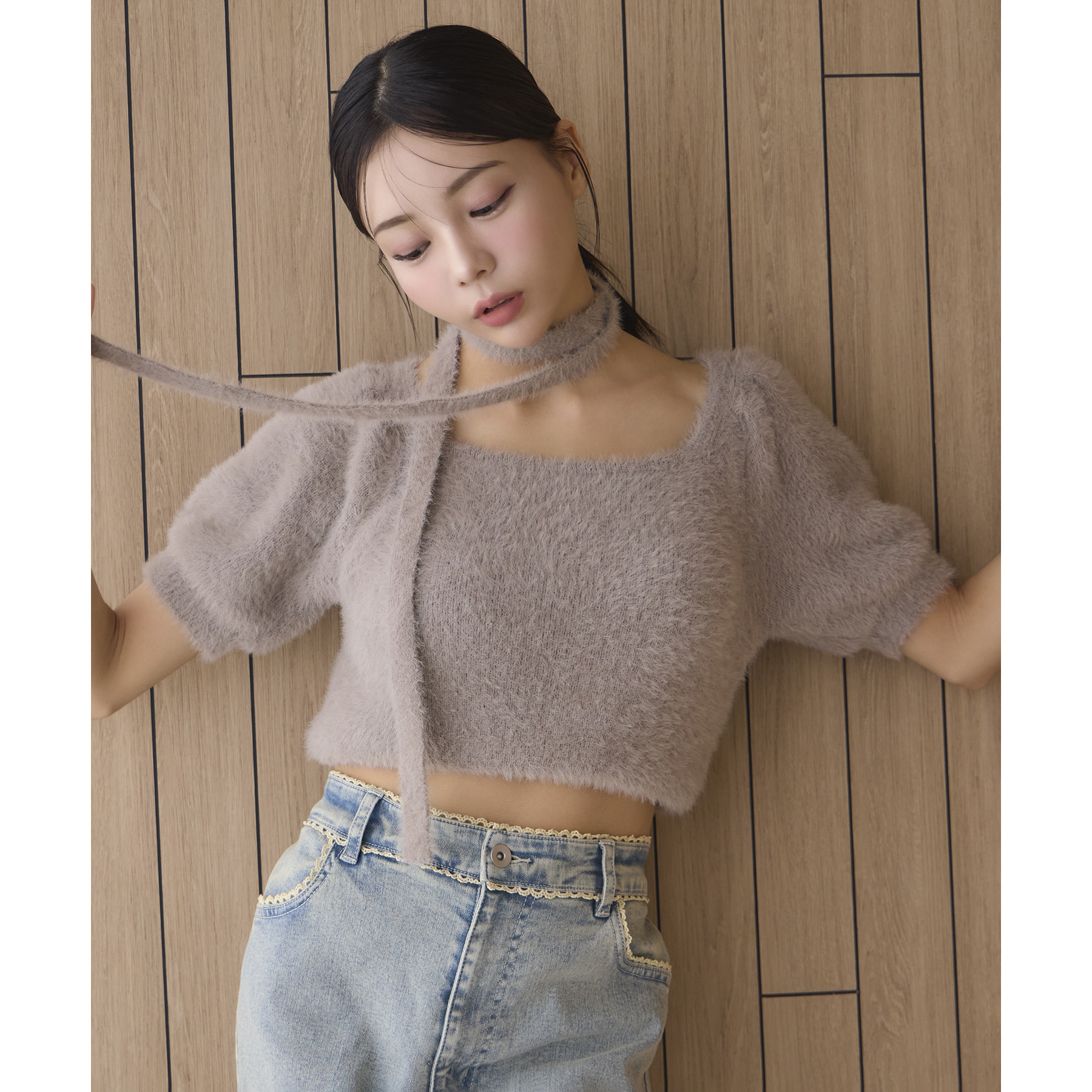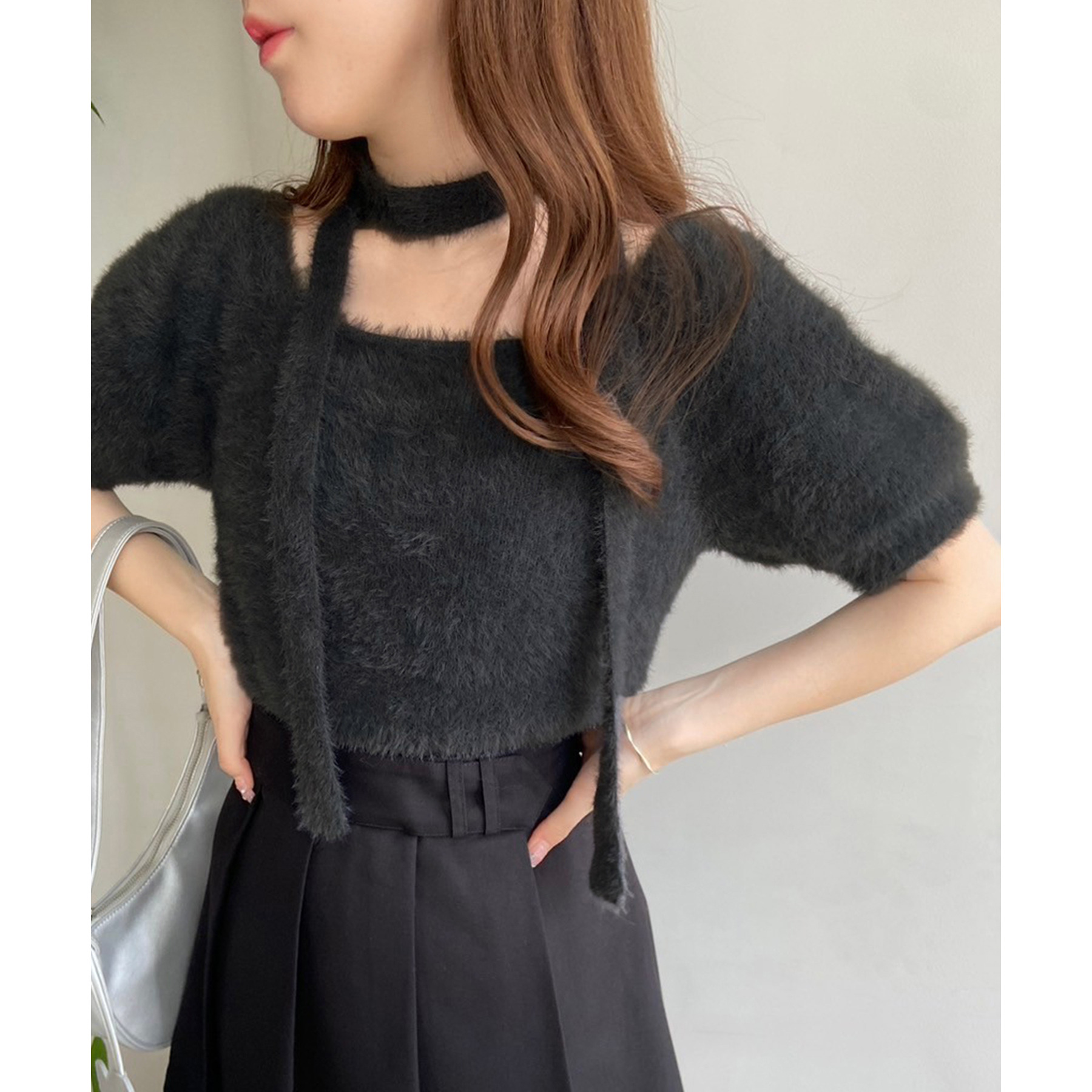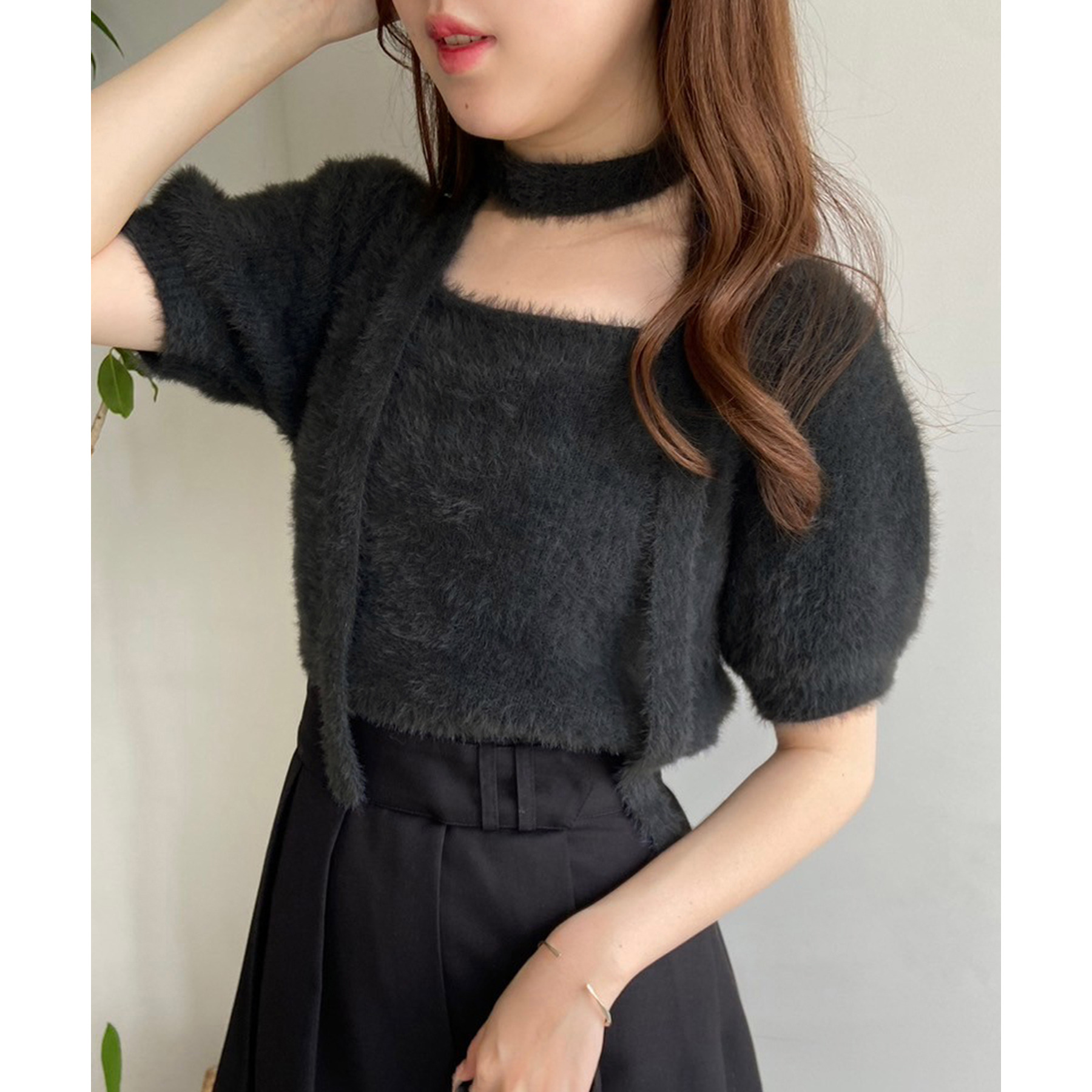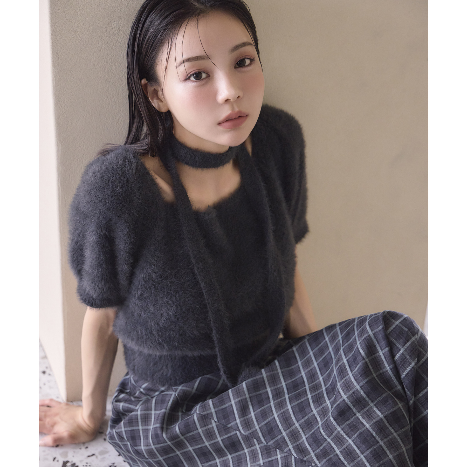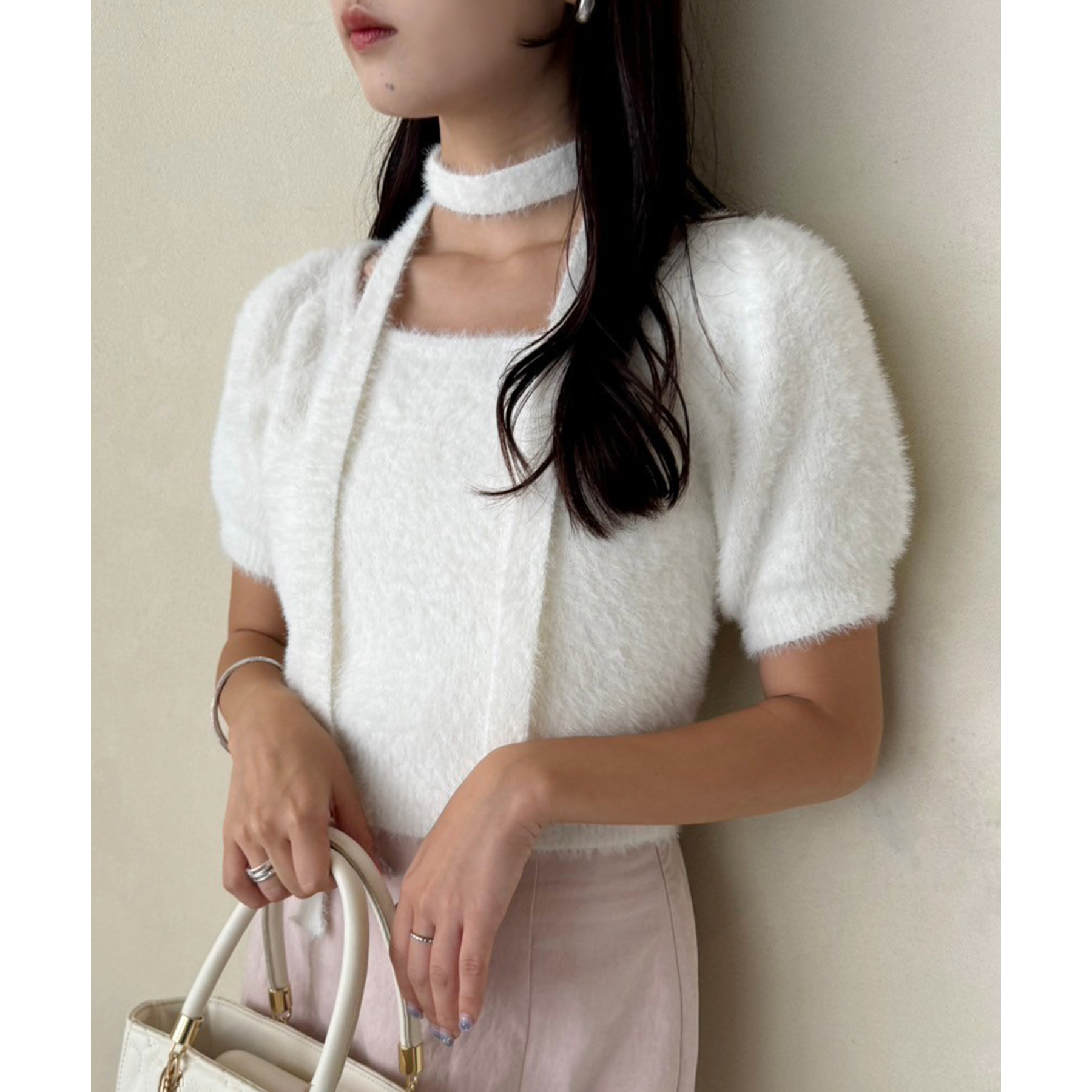 スクエアネックでお顔周りをスッキリ見せてくれます。