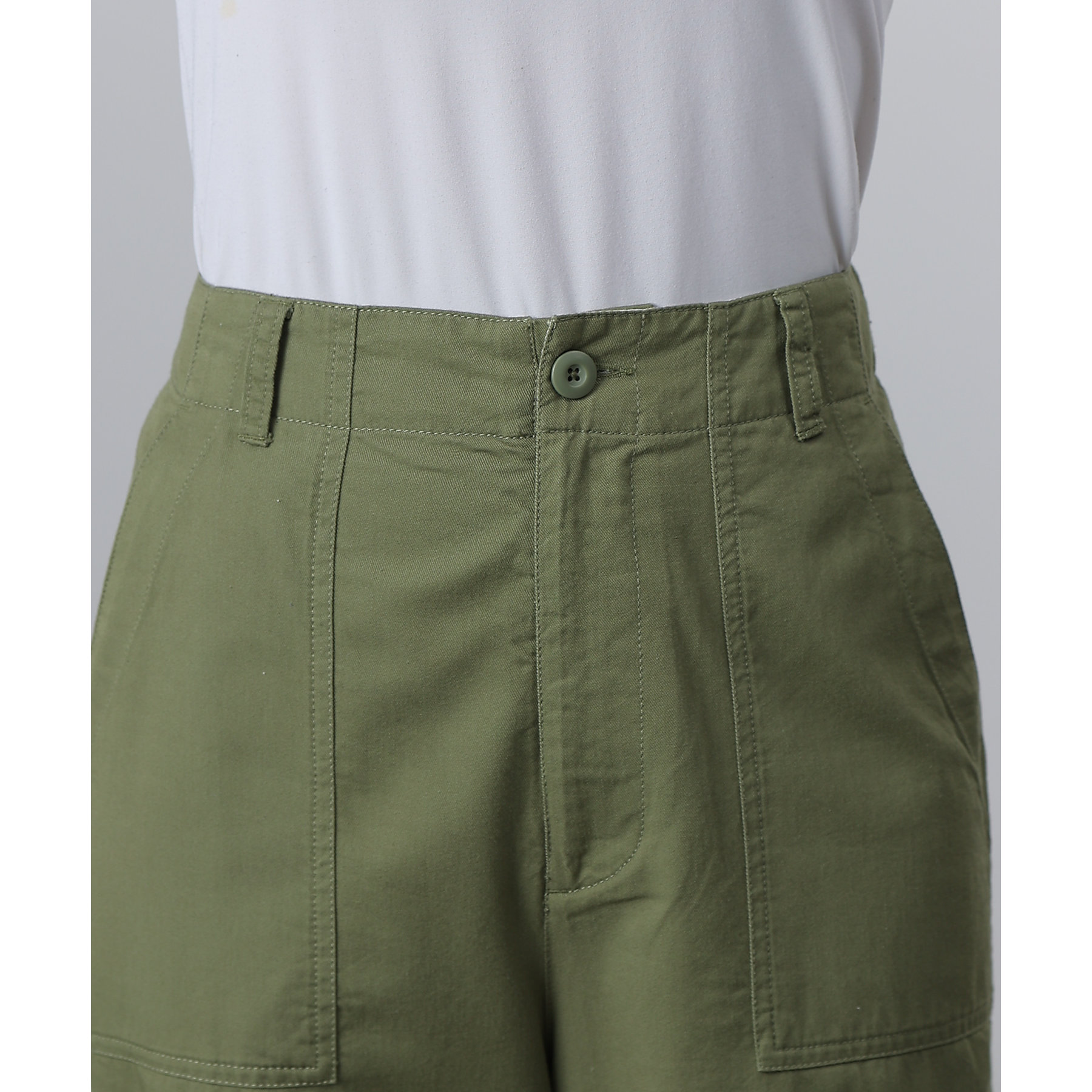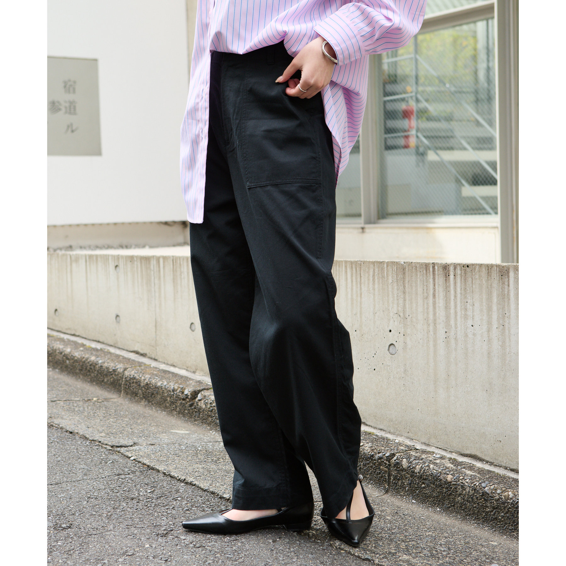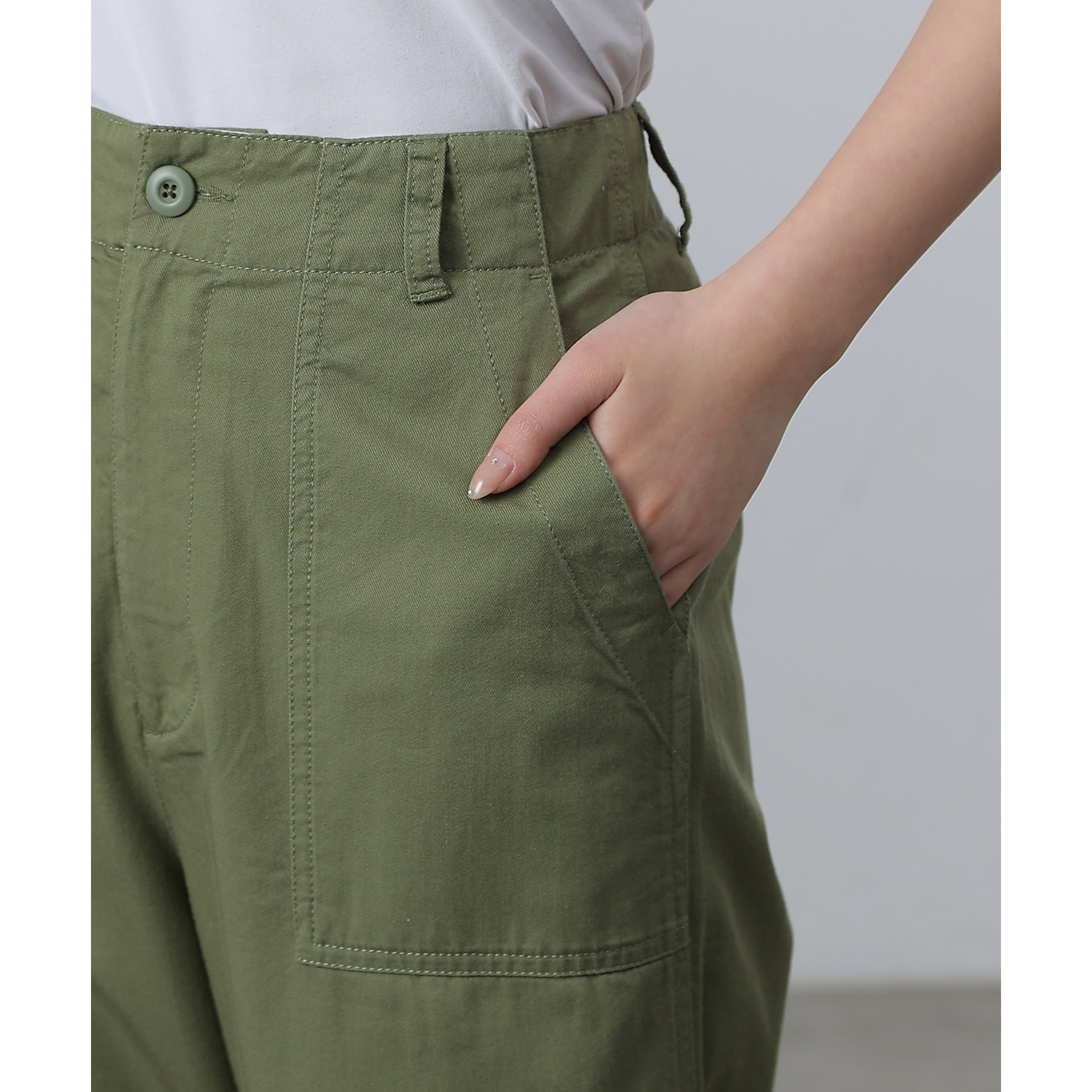 癖の無いシンプルなストレートタイプのベイカーパンツで