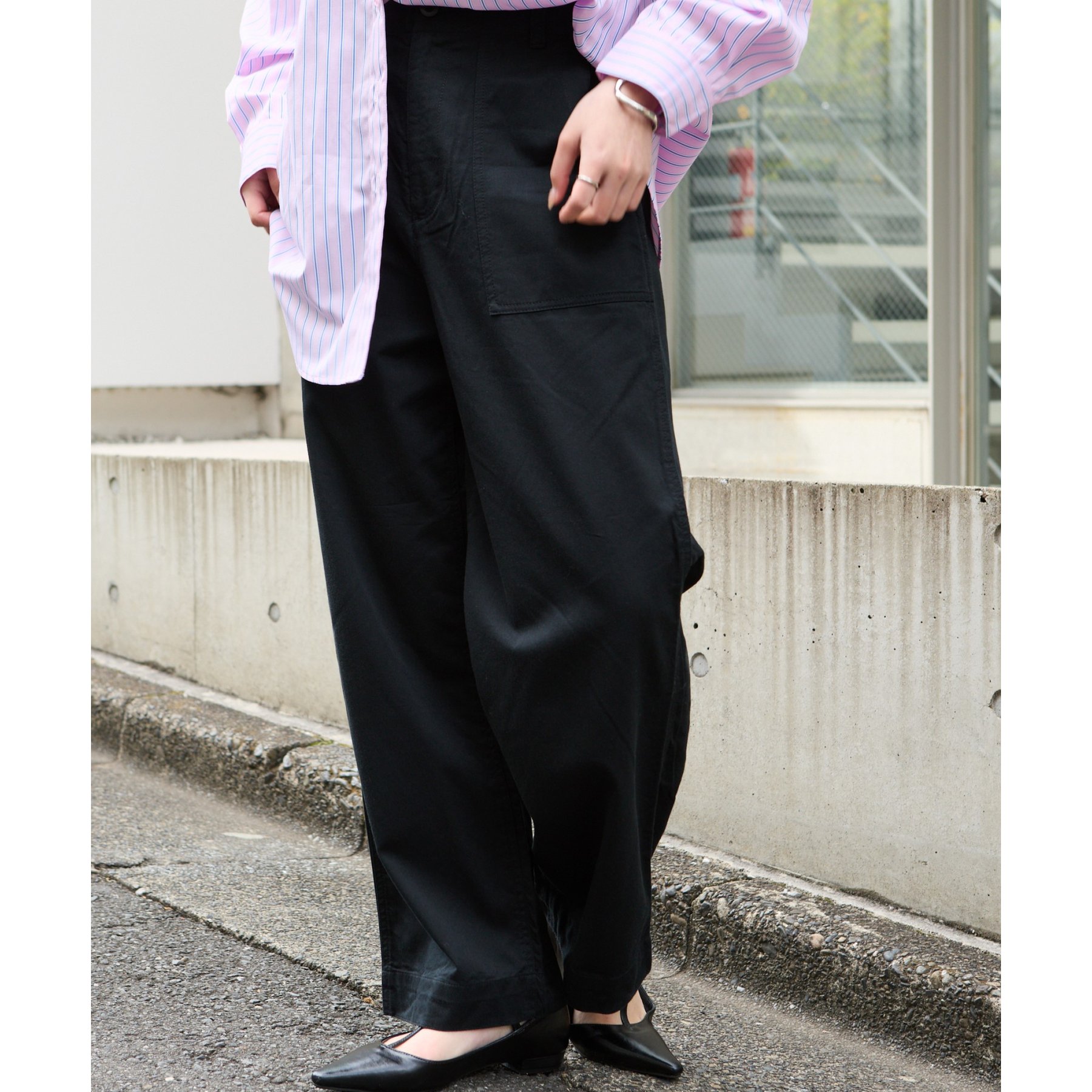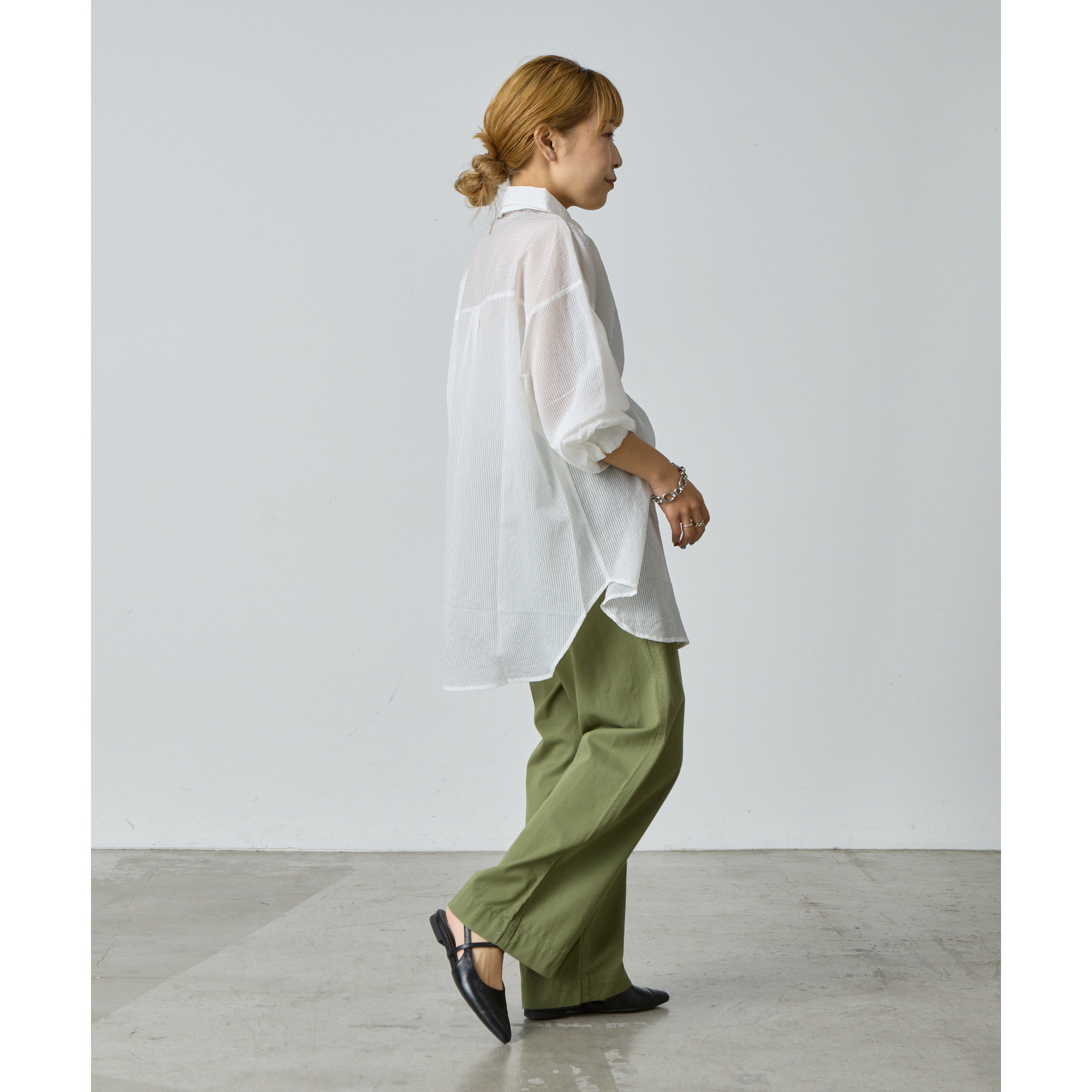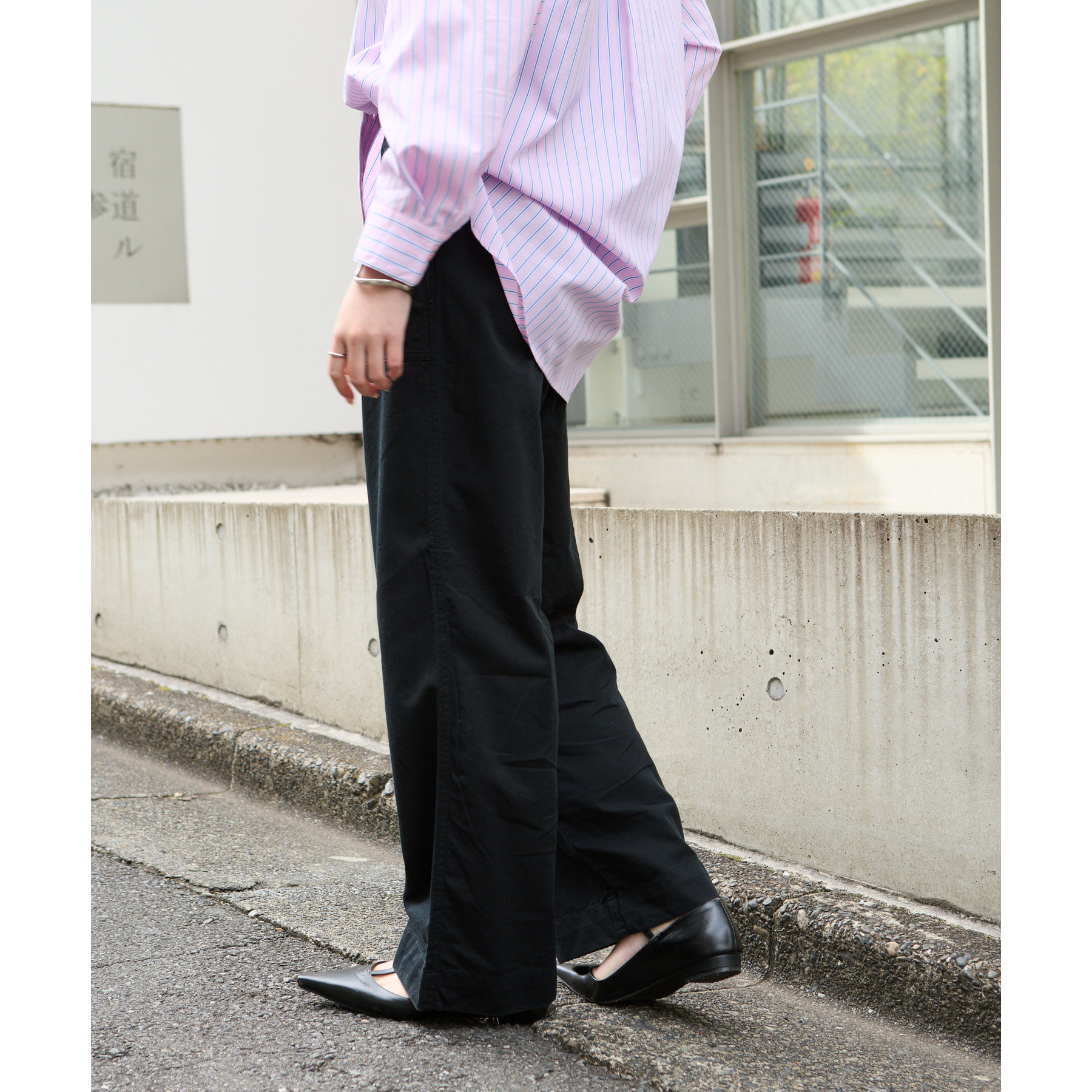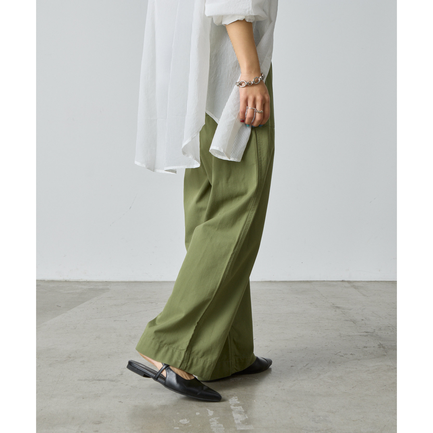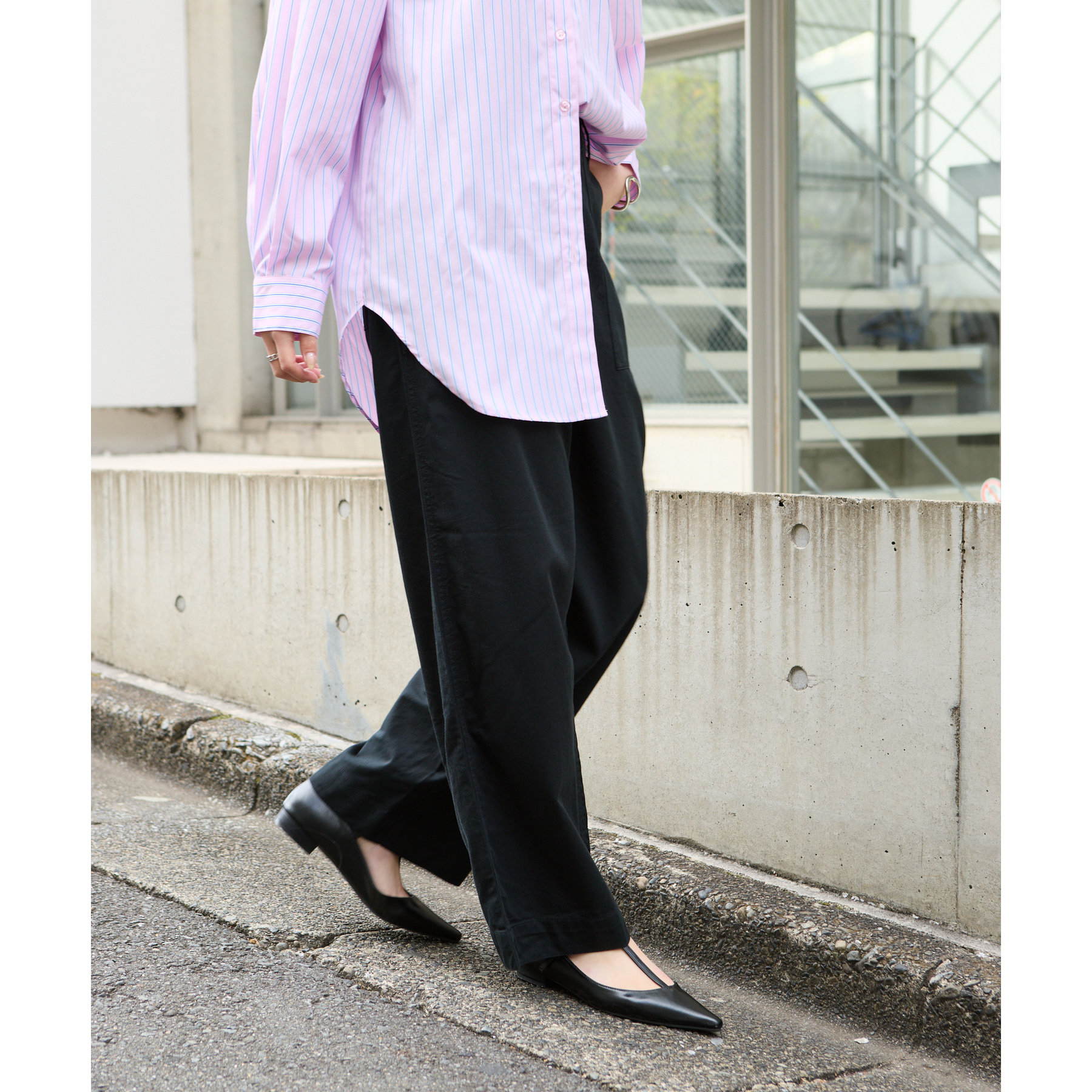 ・程よいワイドシルエットと柔らかな素材で、脚全体をすっきりとした印象で穿ける
