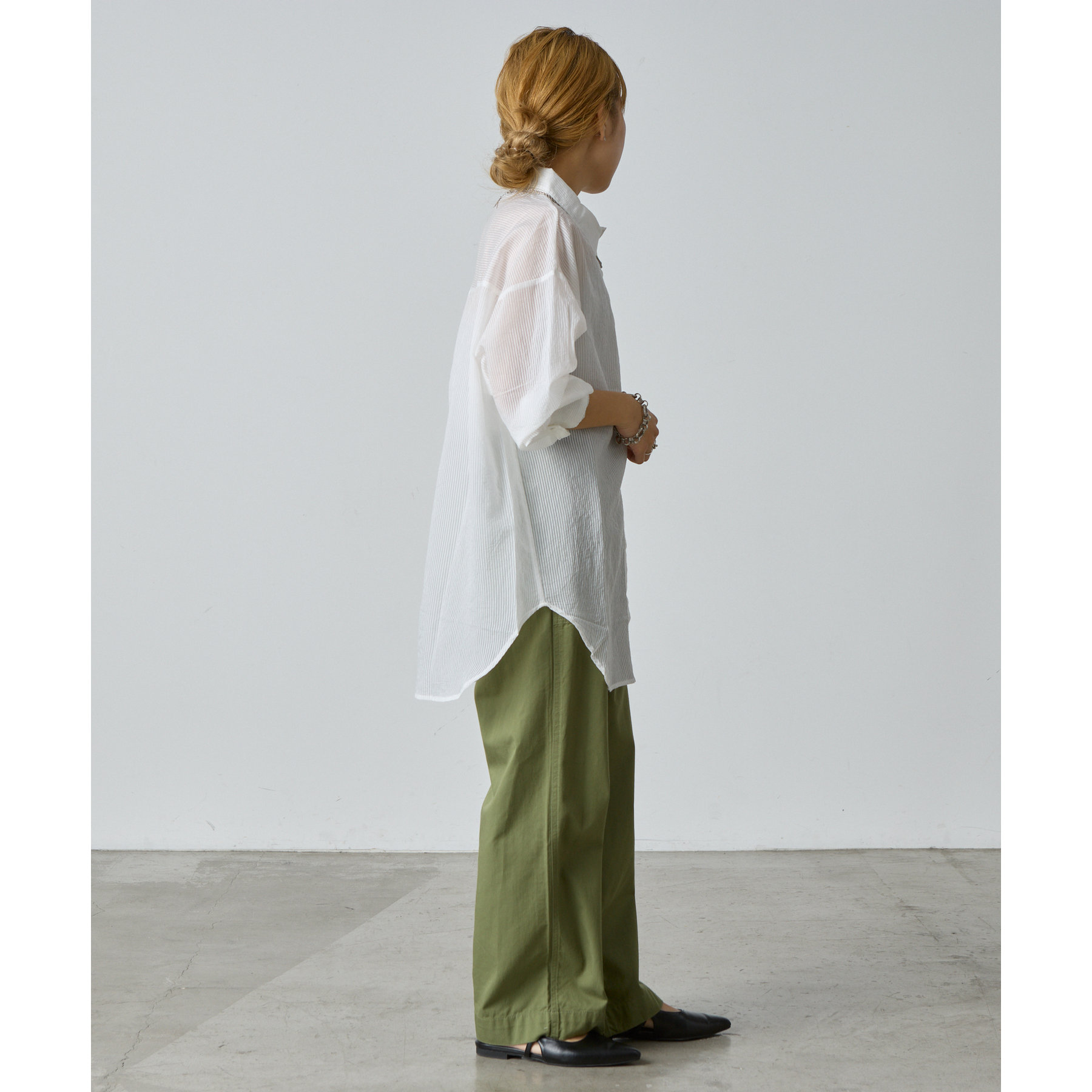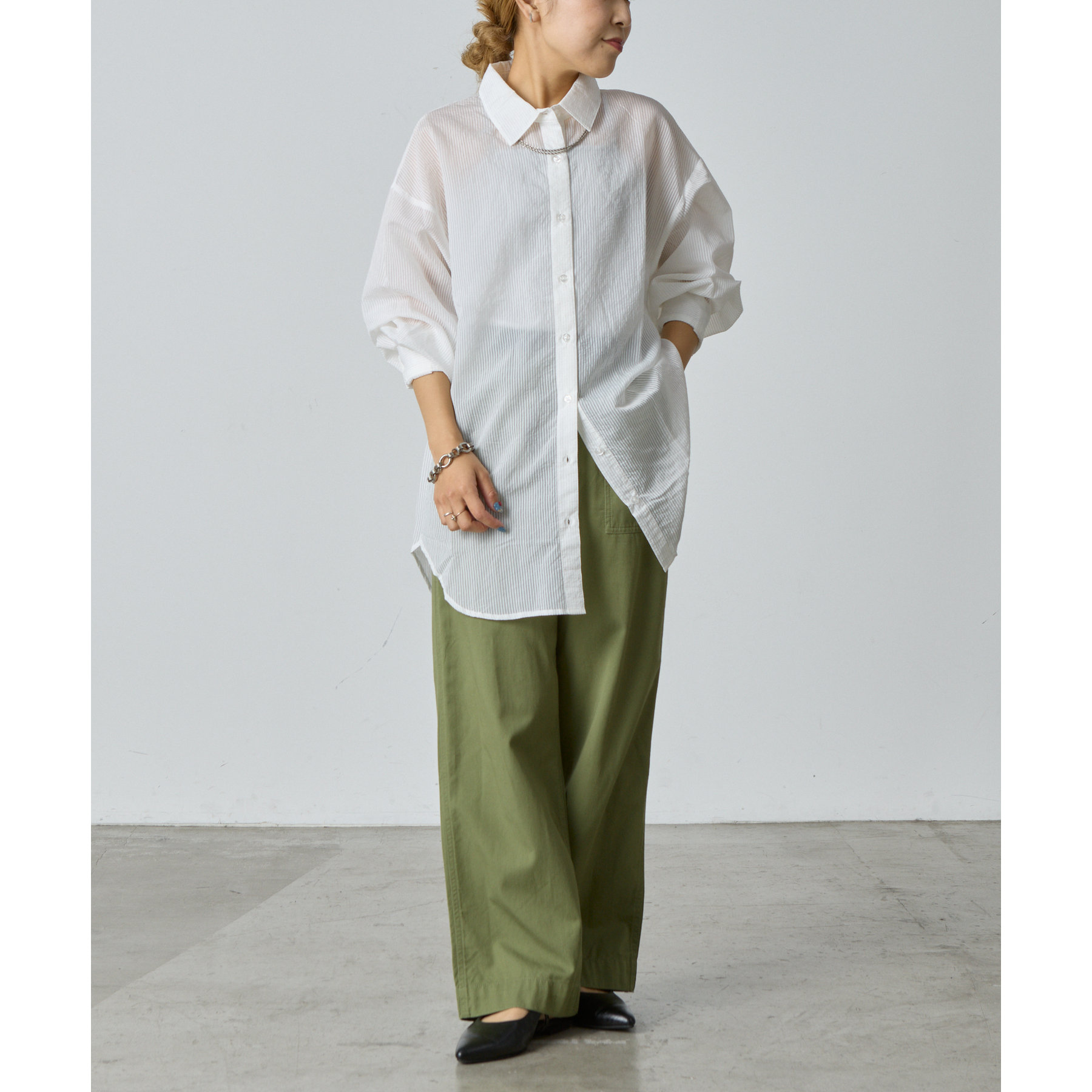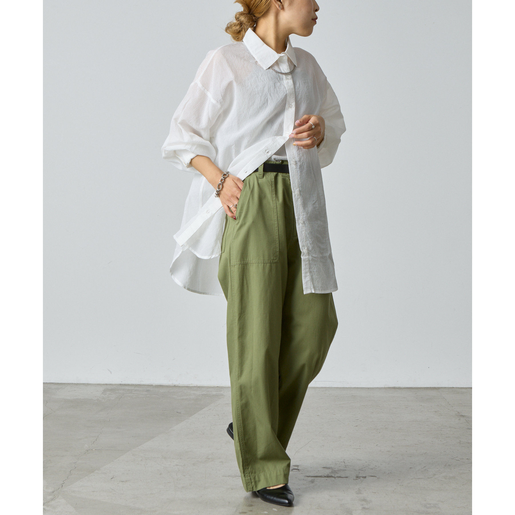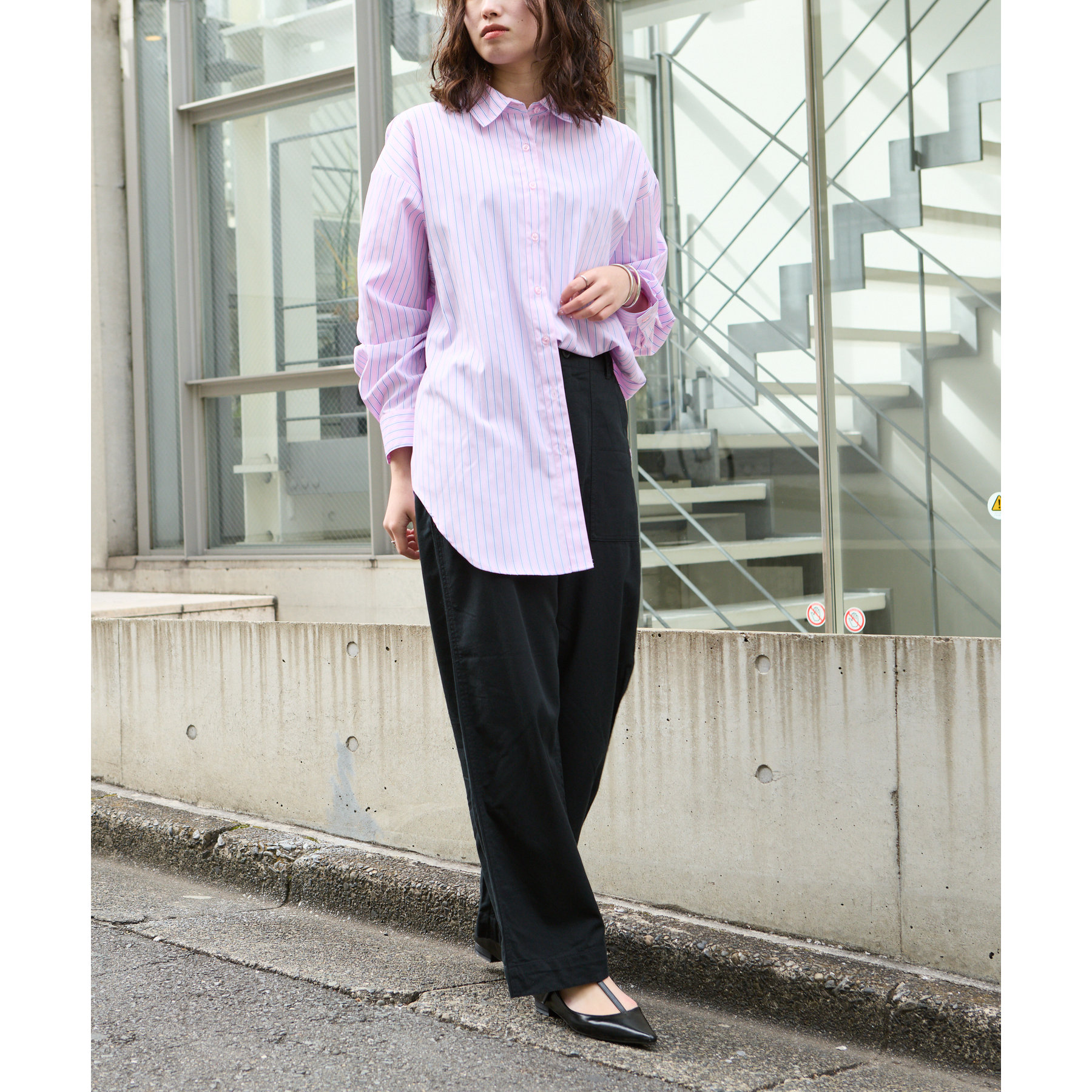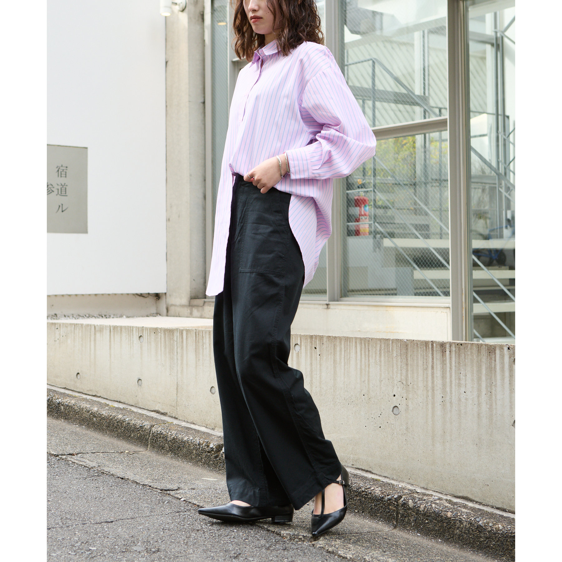 ・程よいワイドシルエットと柔らかな素材で、脚全体をすっきりとした印象で穿ける