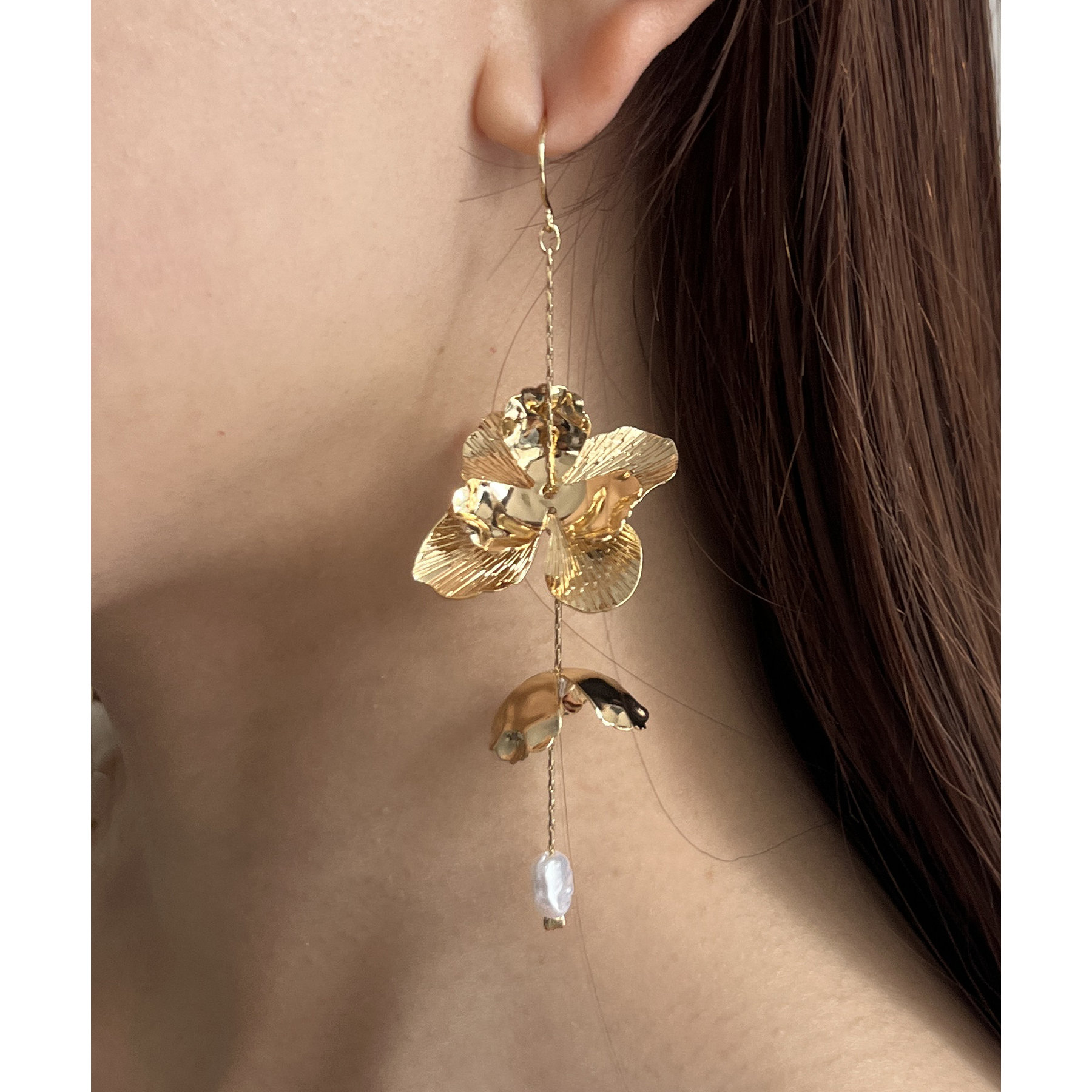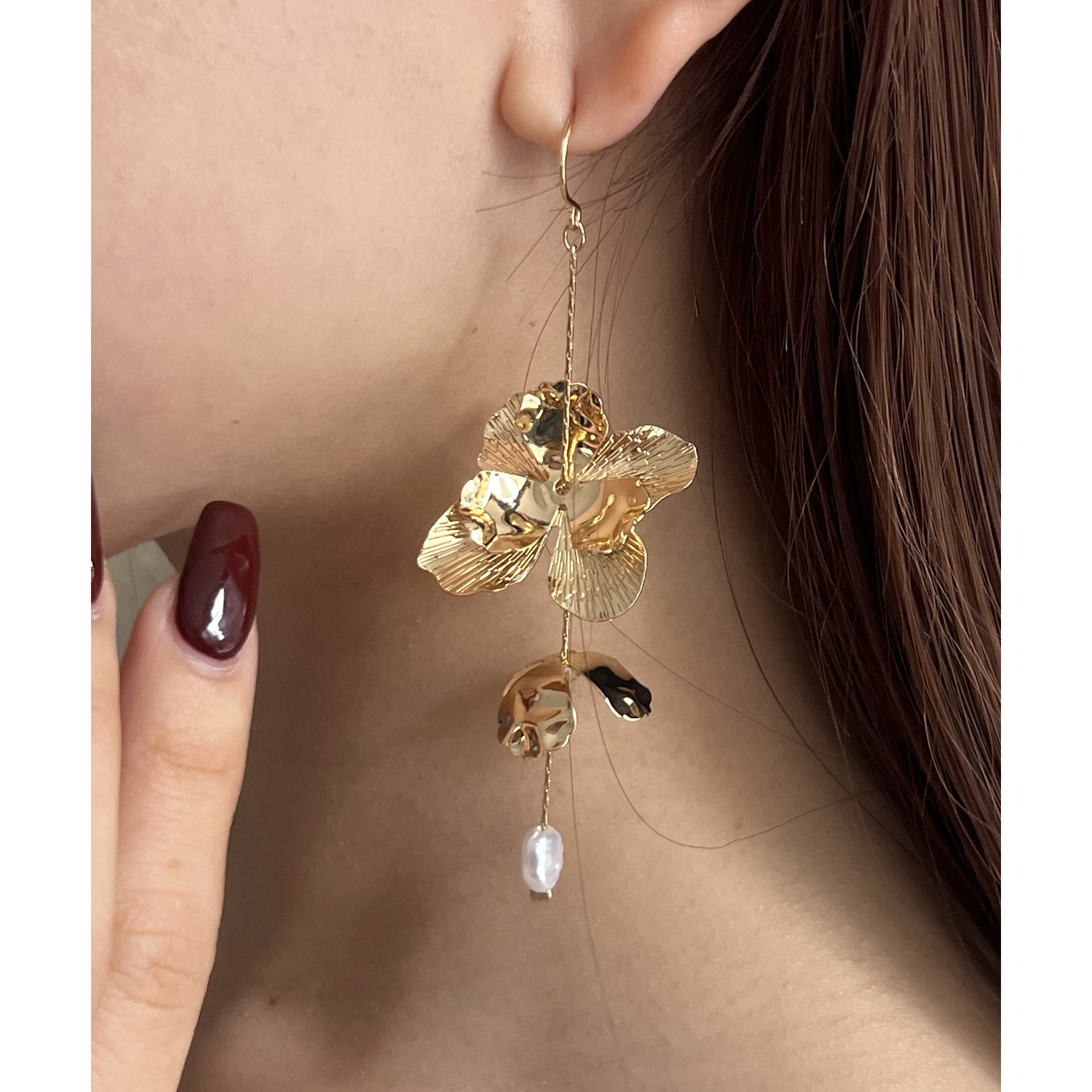 ・動くたびに揺れる姿が女性らしいロングピアス。