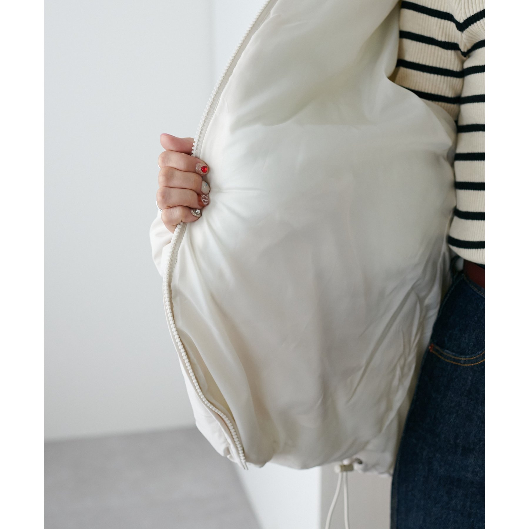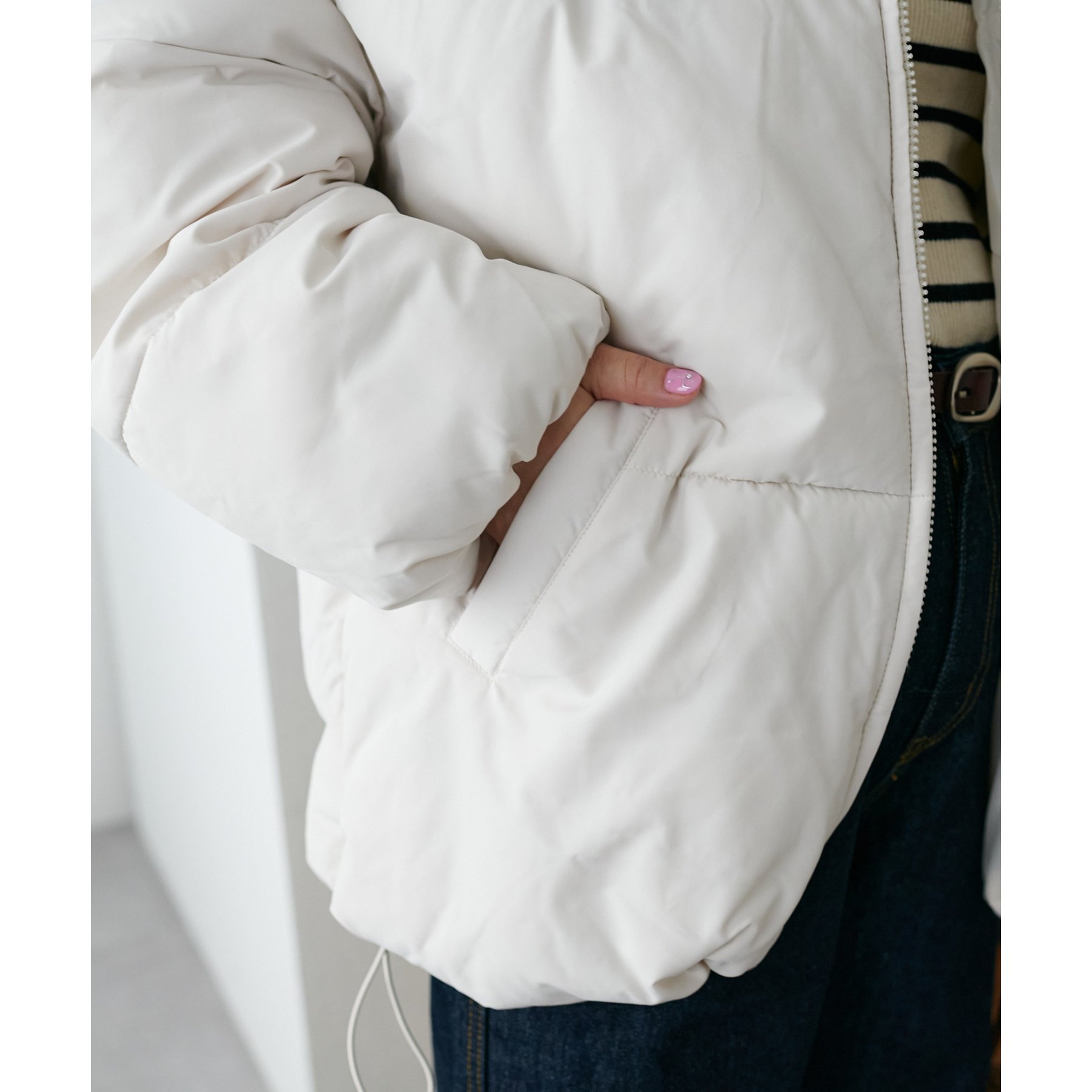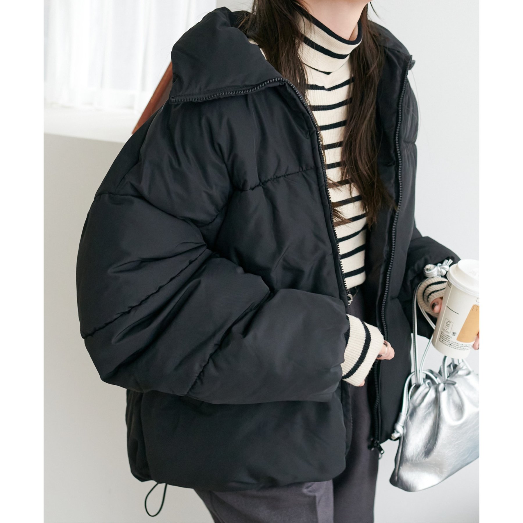 ・裾のドローコードを絞ると、まるっとしたシルエットで可愛らしさをプラス