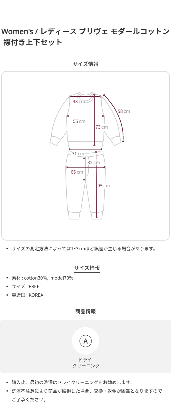 レディース プリヴェ モダールコットン 襟付き上下セット