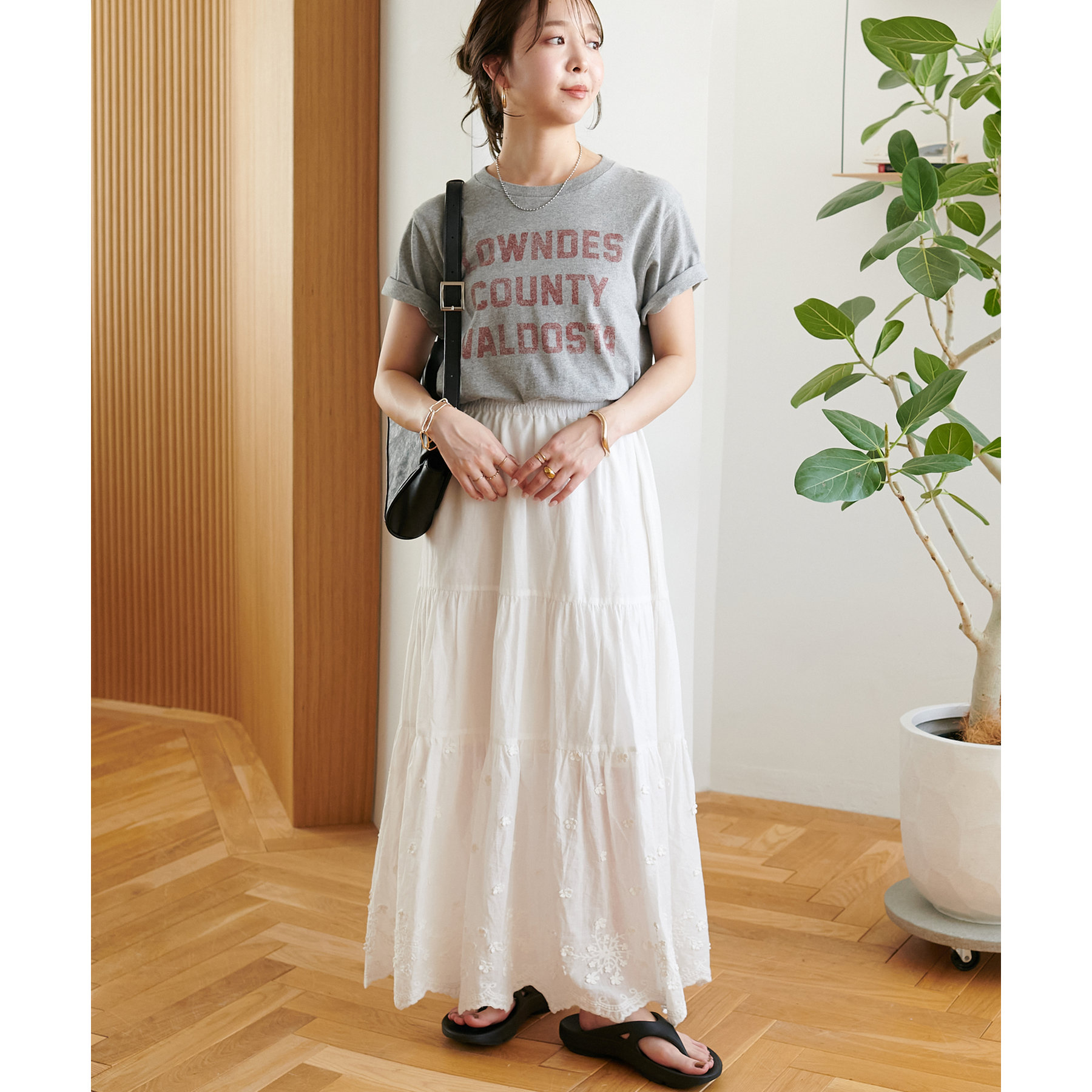 3段に切り替えられたティアードが絶妙なボリューム感を演出し、歩くたびに揺れるラインがフェミニンな雰囲気をプラスします♪