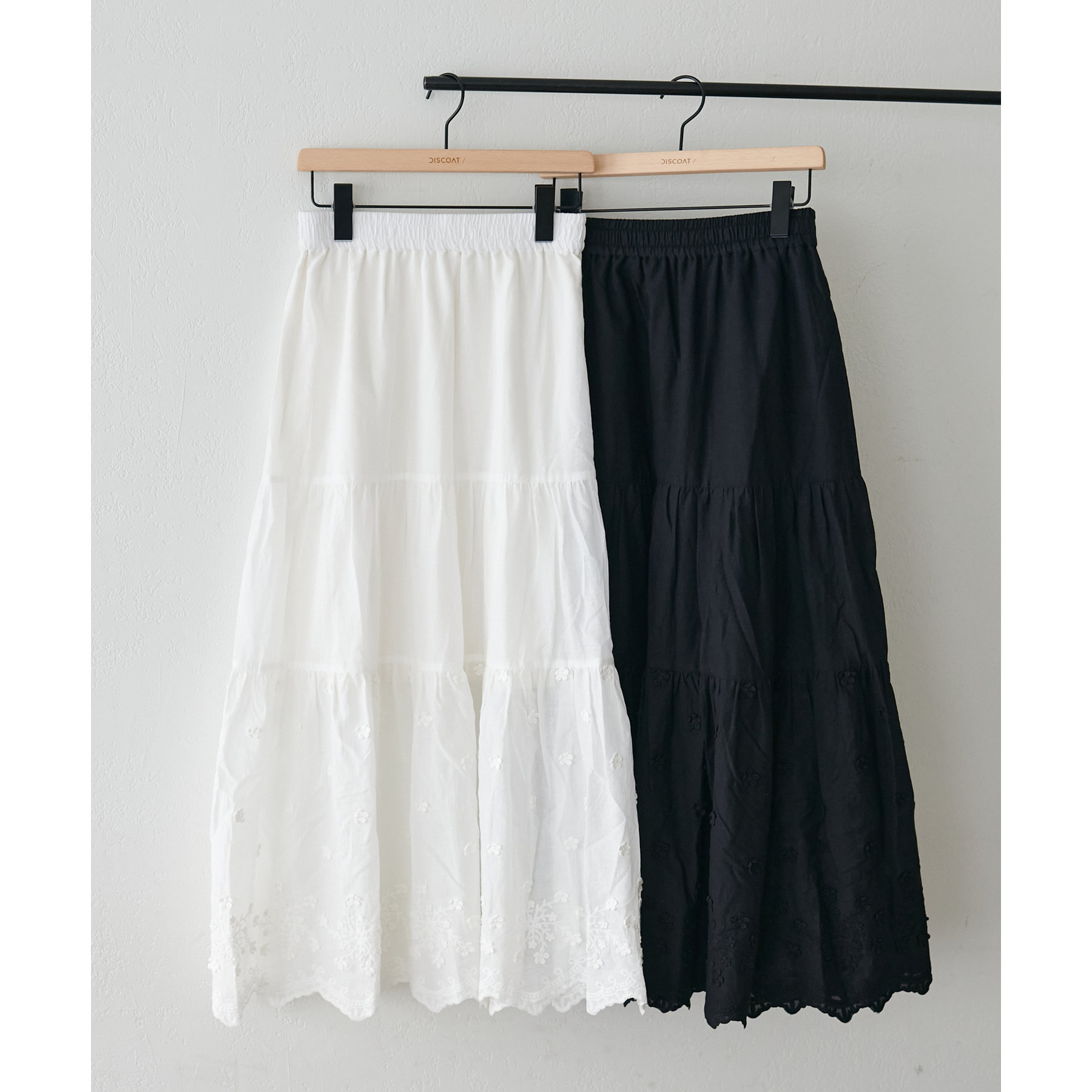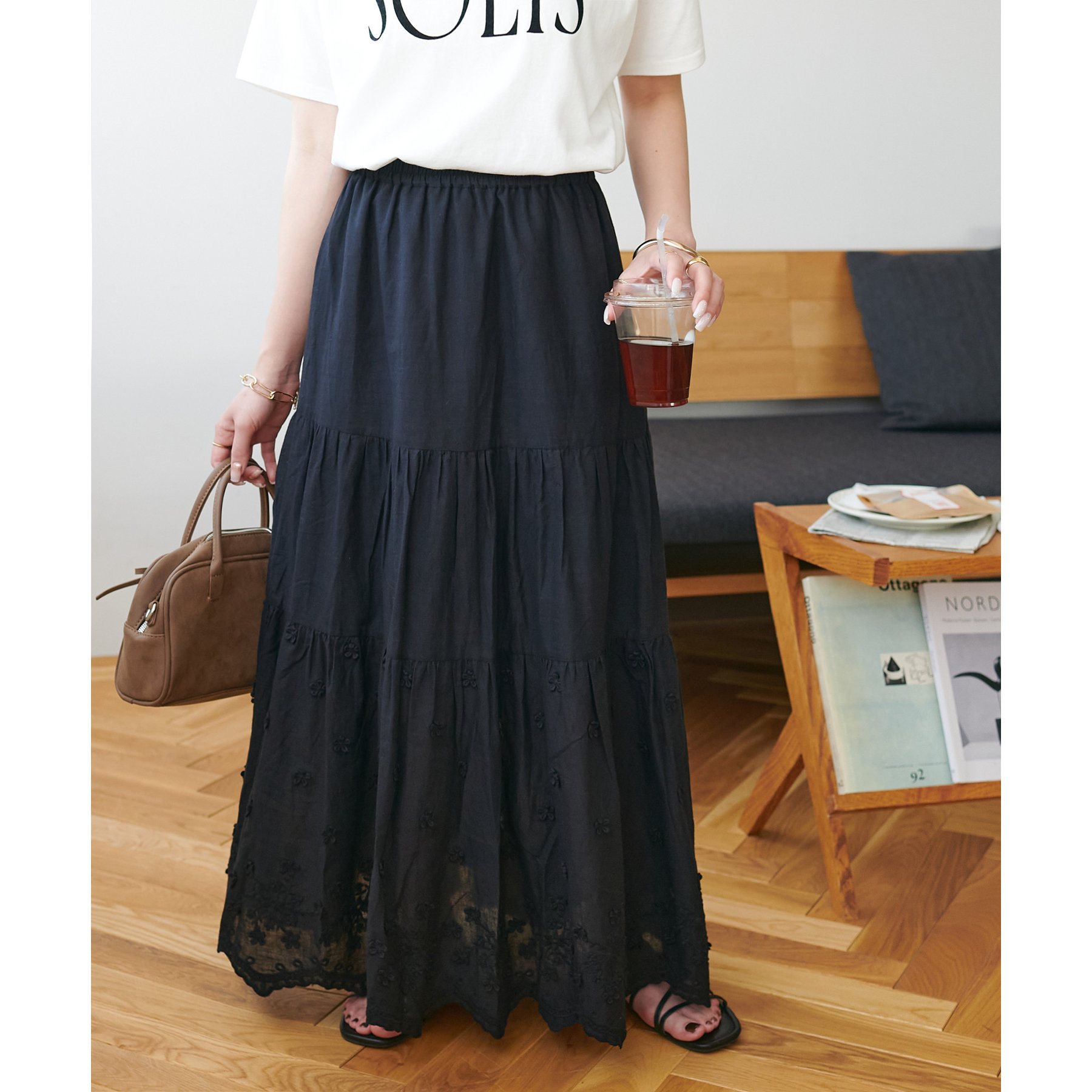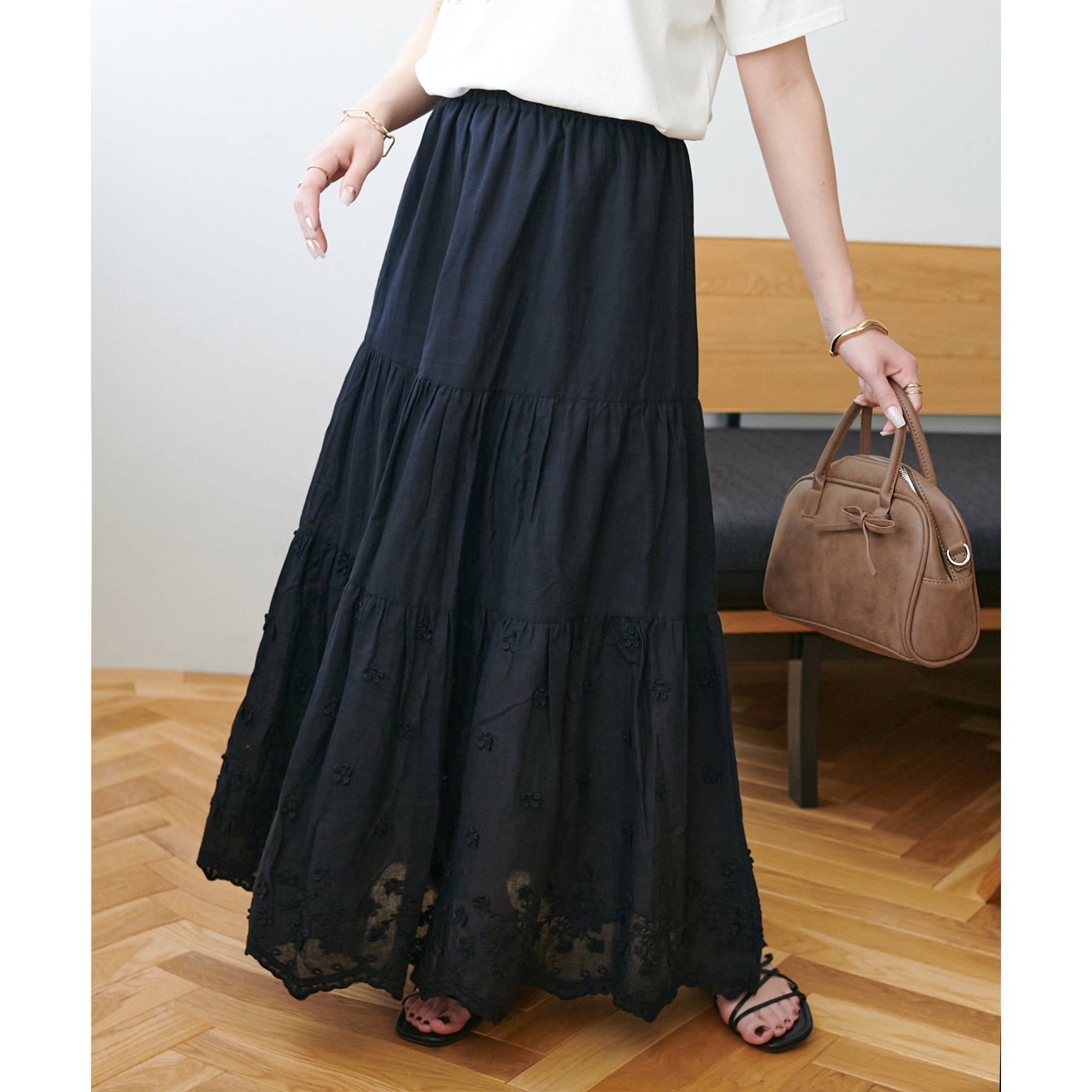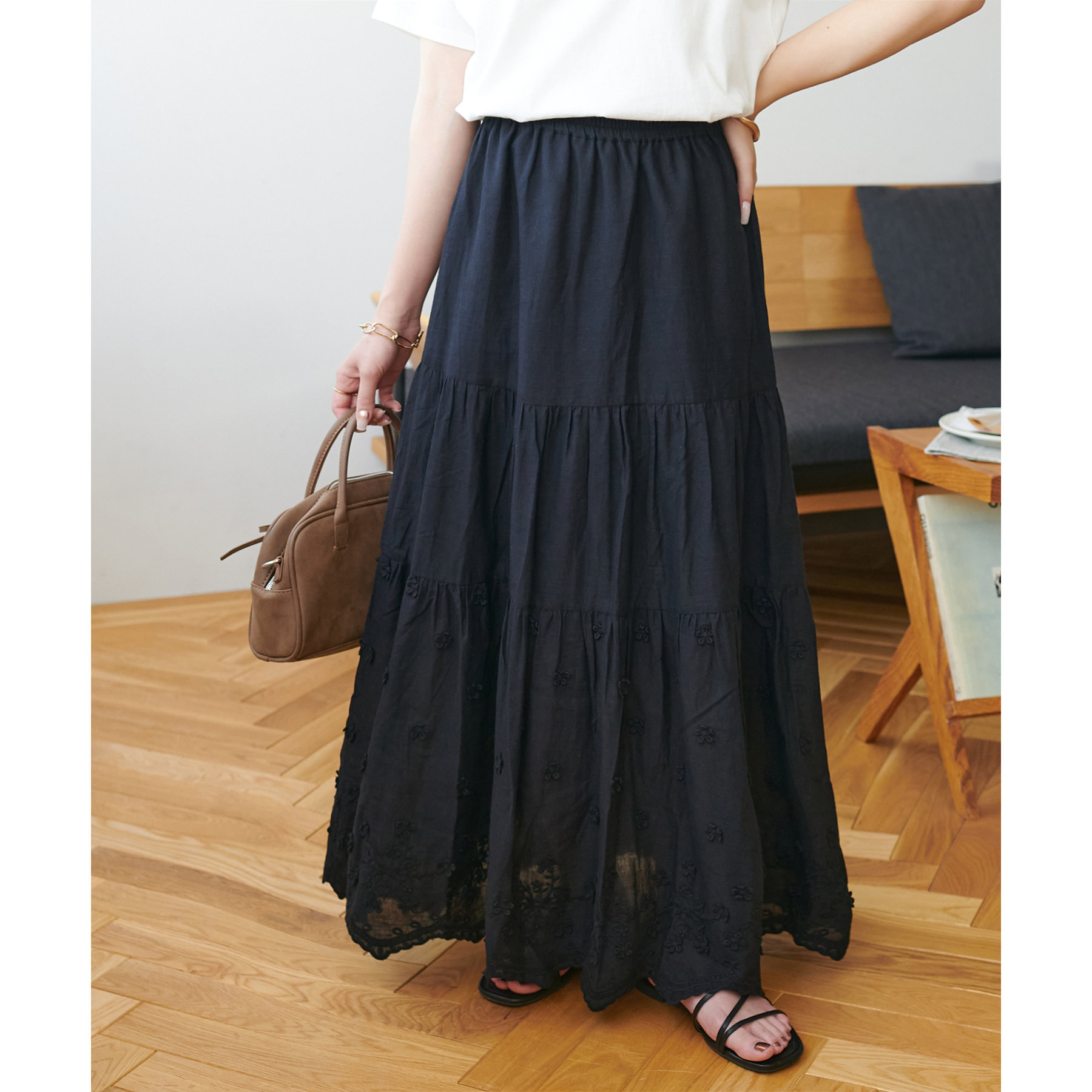 立体の花柄デザインが華やかさをプラスしてくれるティアードスカート。