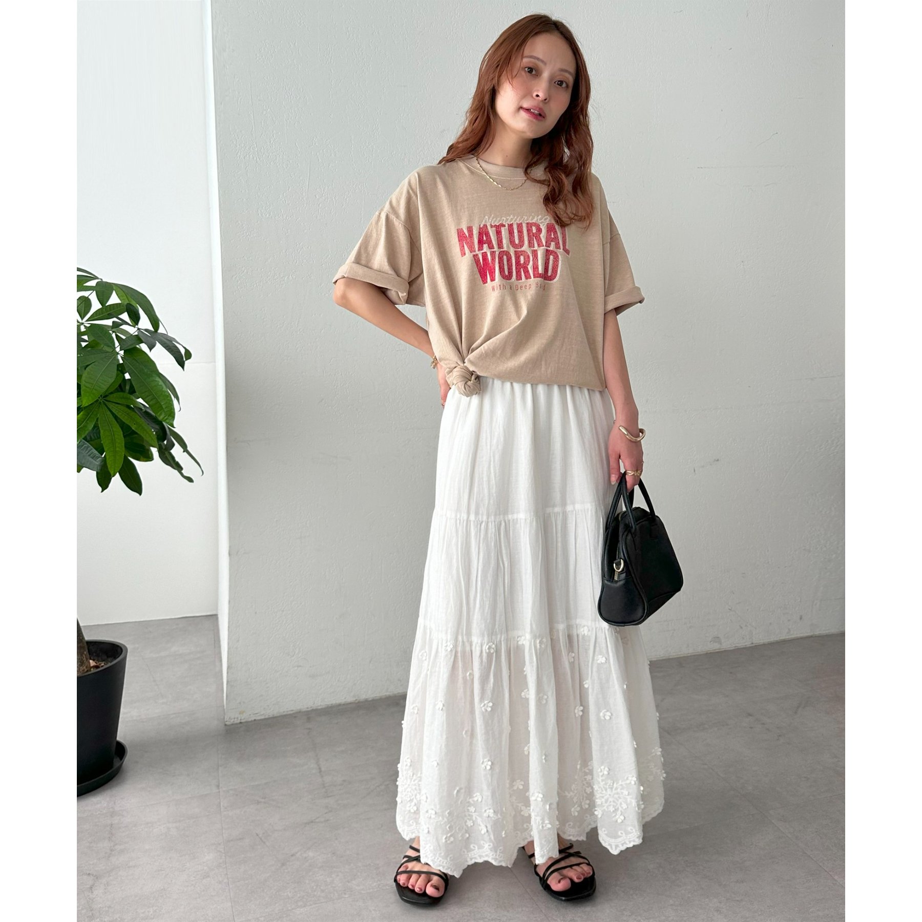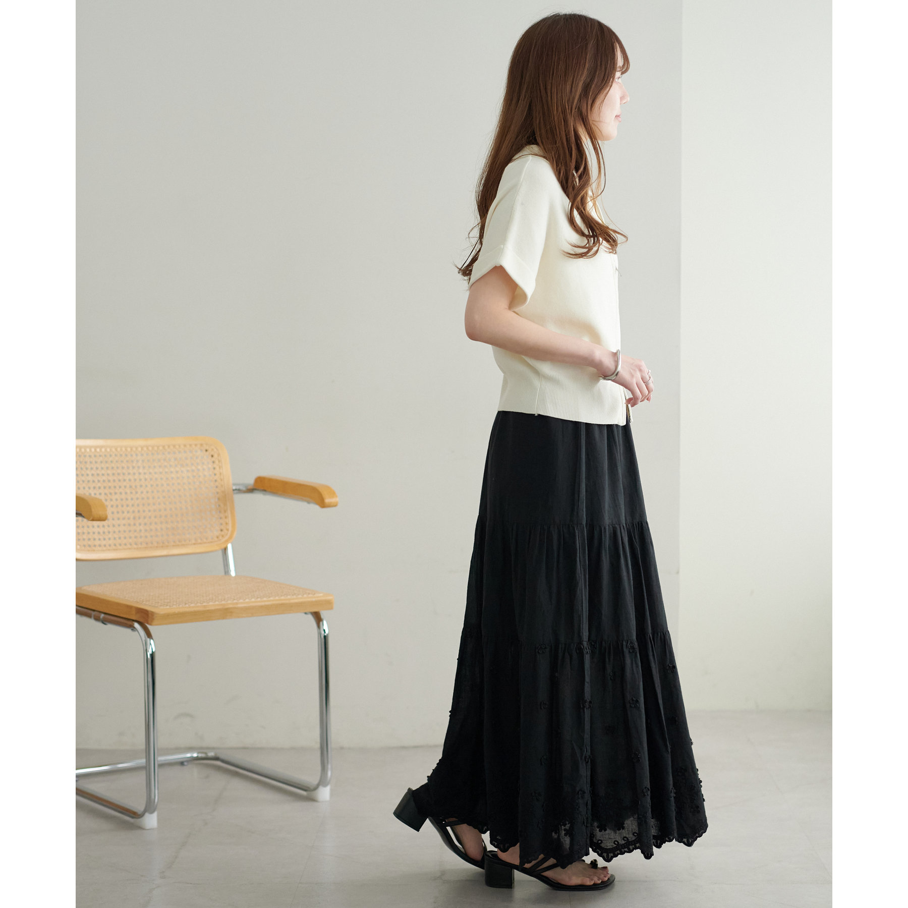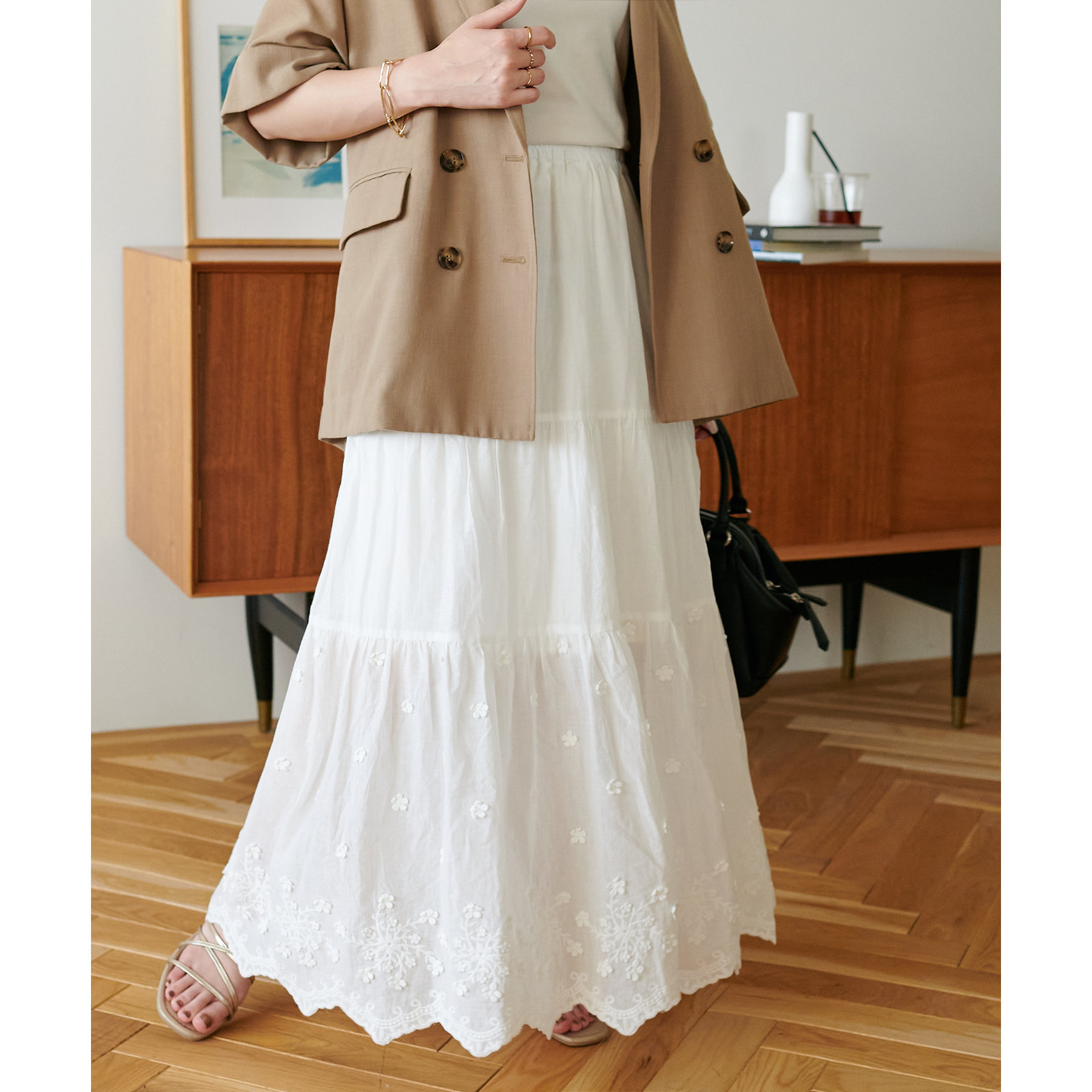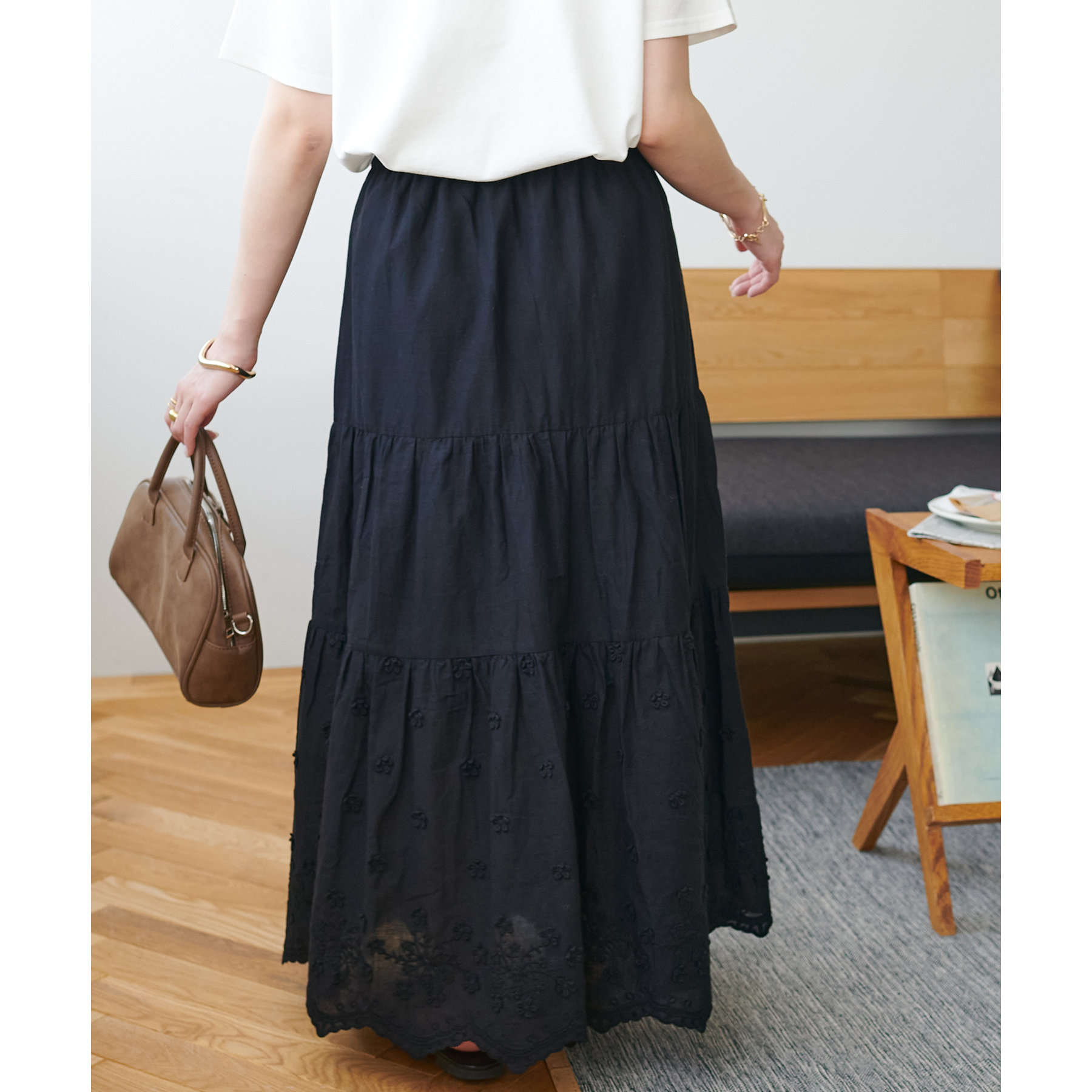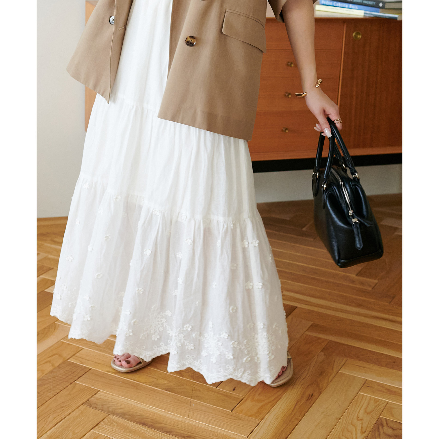 立体の花柄デザインが華やかさをプラスしてくれるティアードスカート。