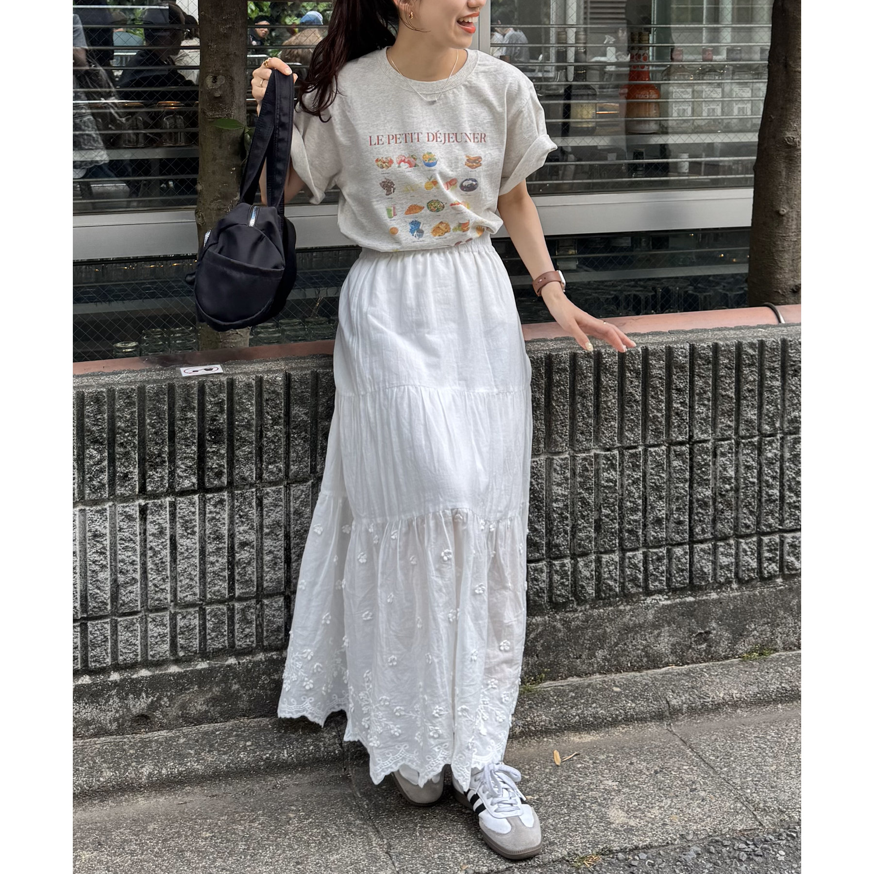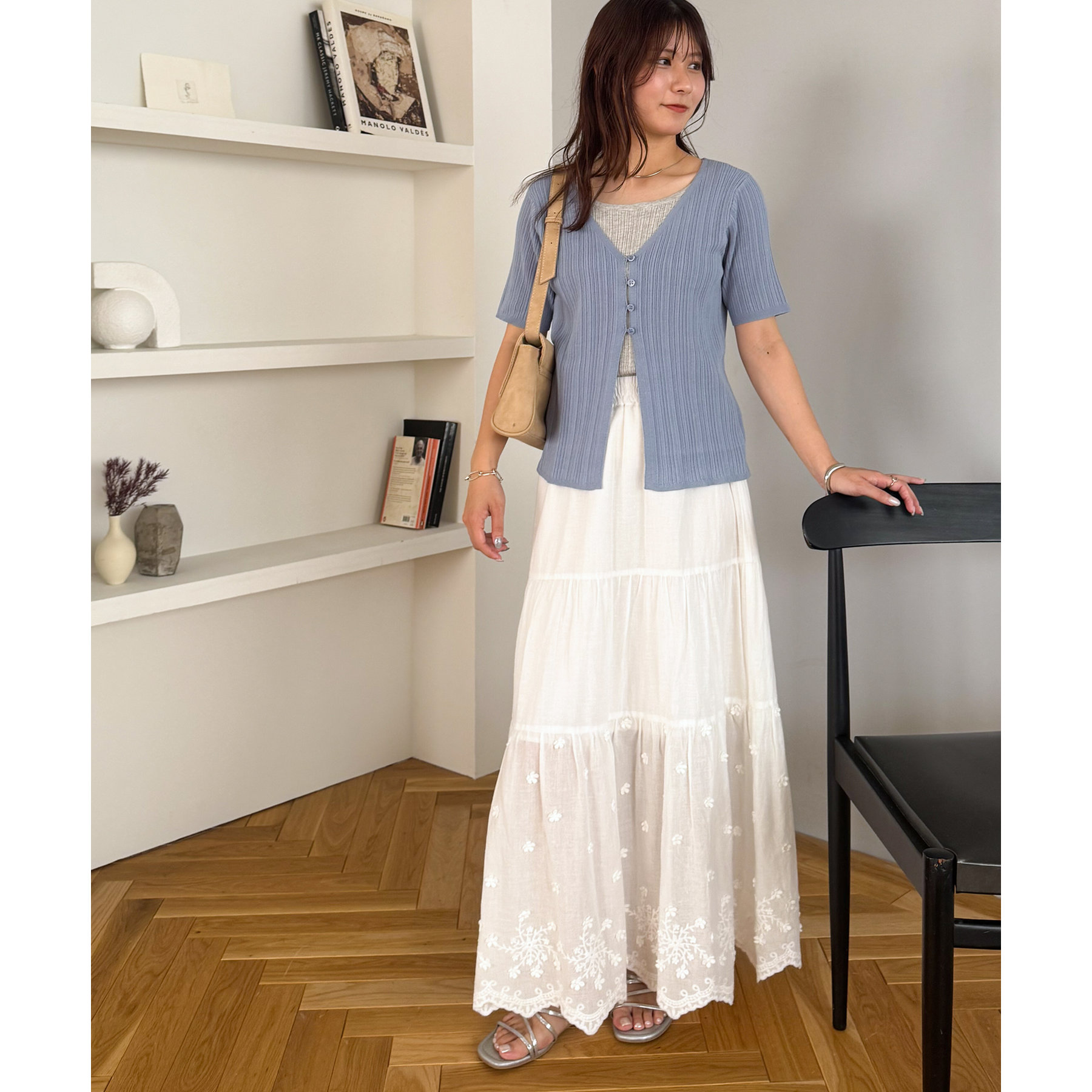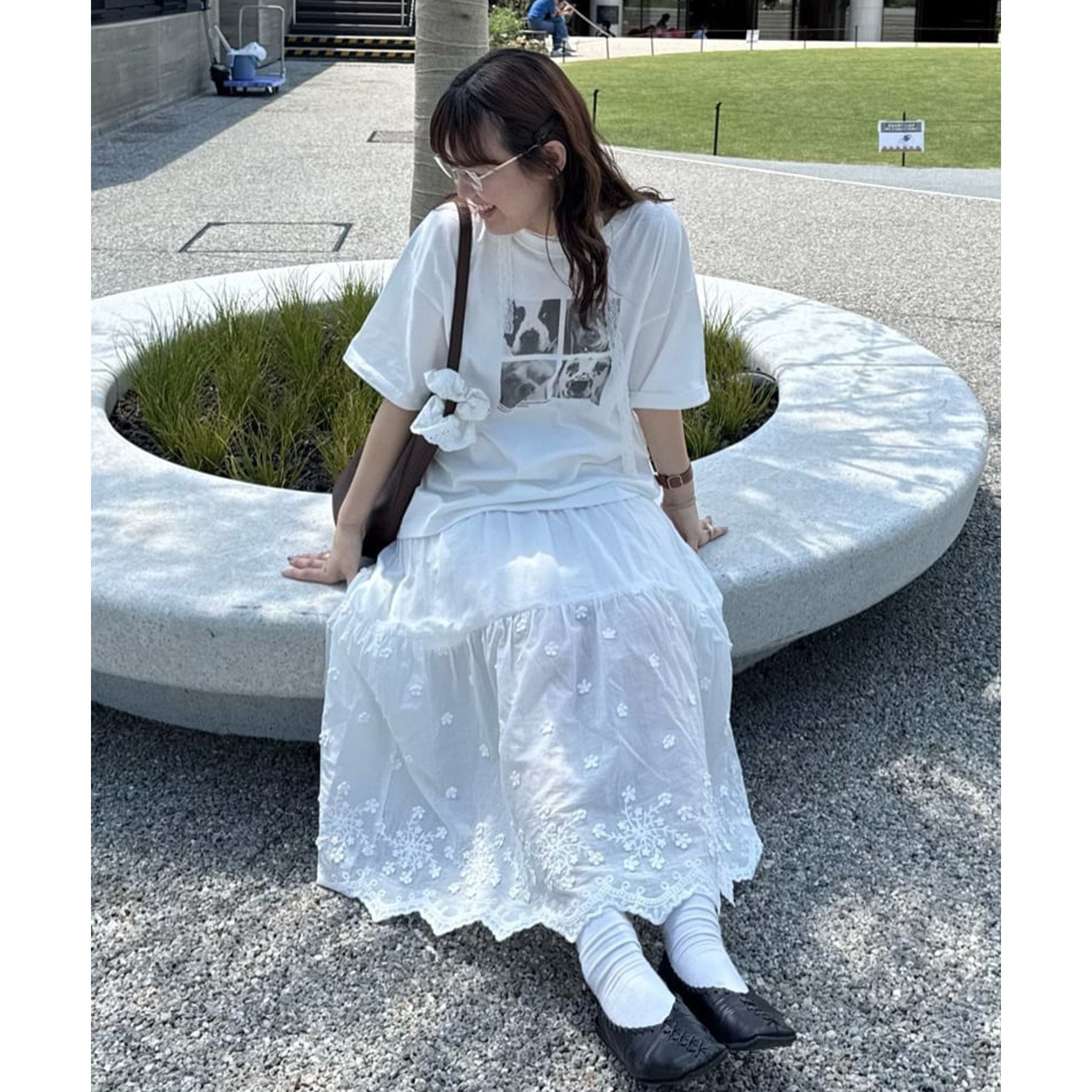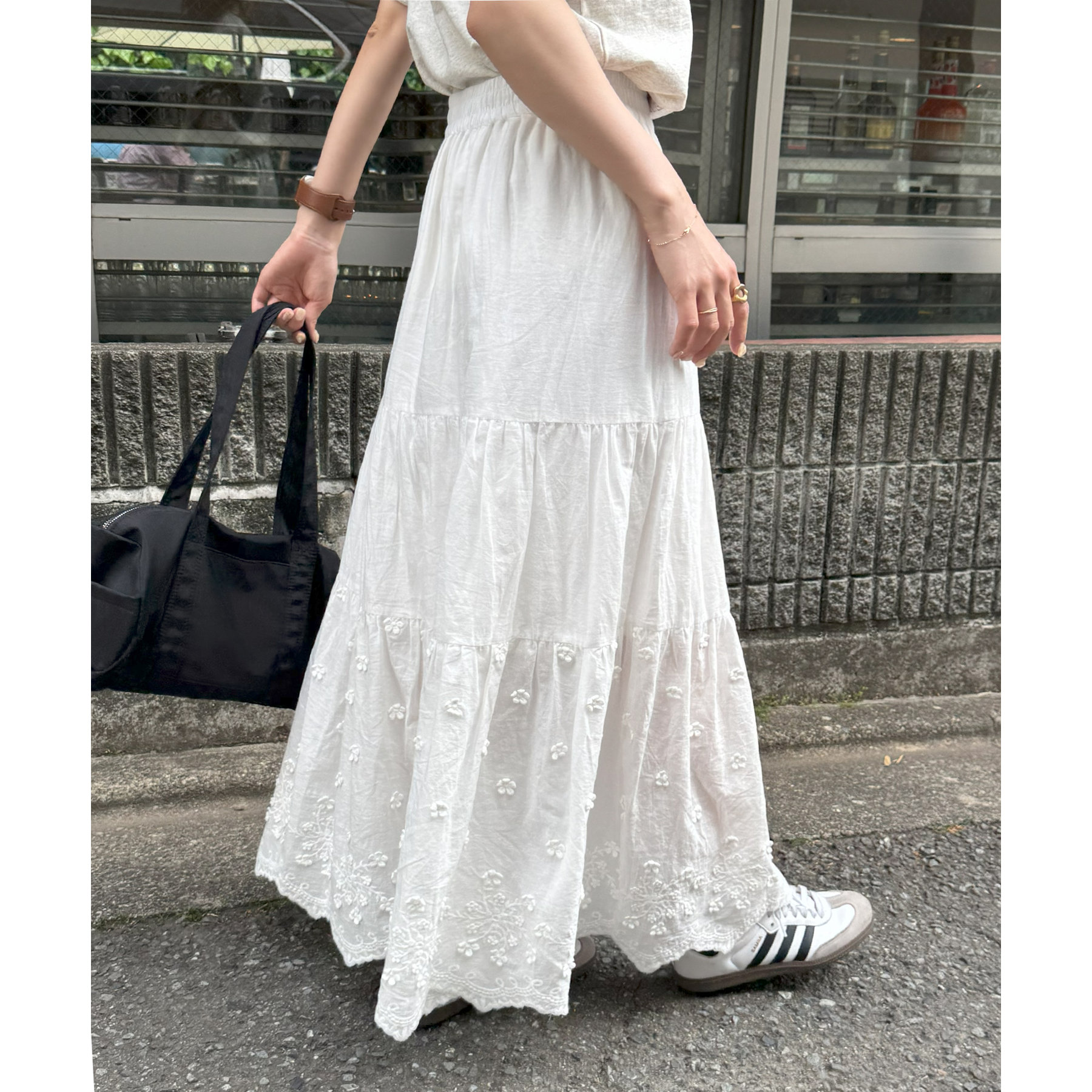 刺繍の花柄が施されているので、シンプルな無地のトップスと合わせてもおしゃれなコーデが完成します♪