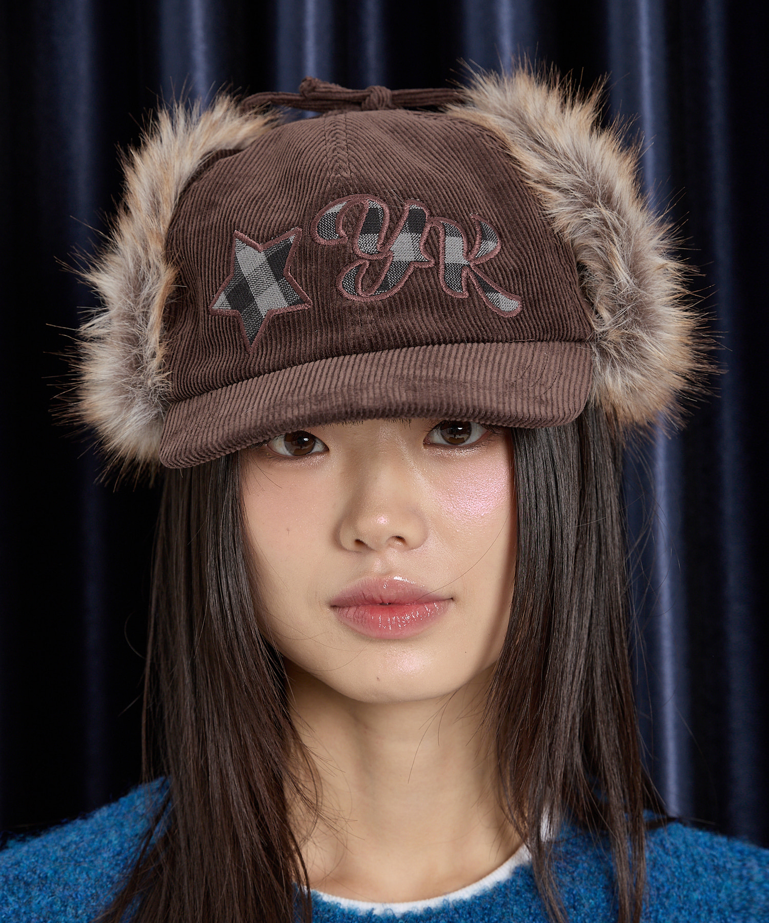 【購入特典】[Inflencer pick] Corduroy Check Applique Trooper Cap BROWN