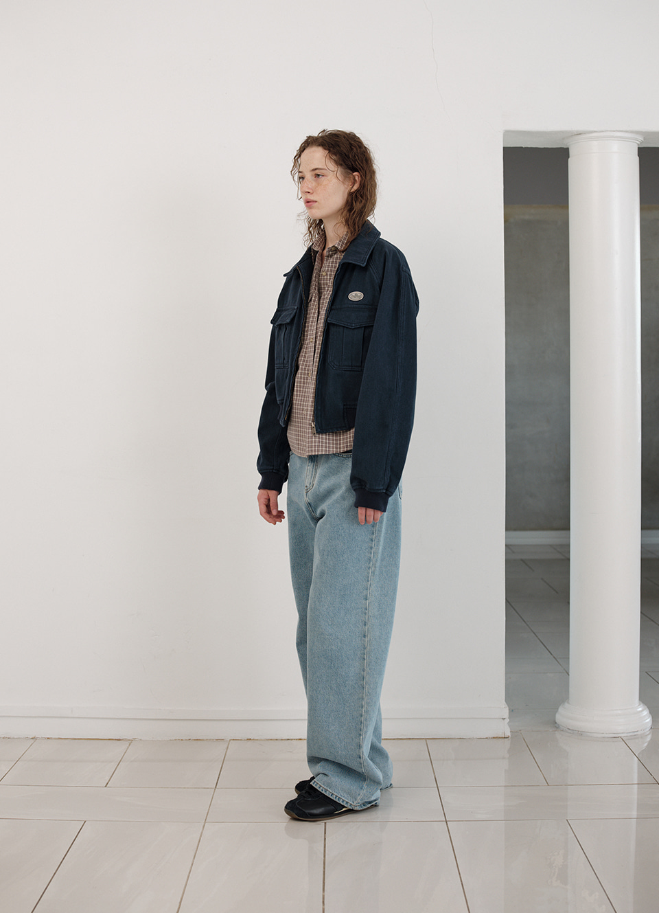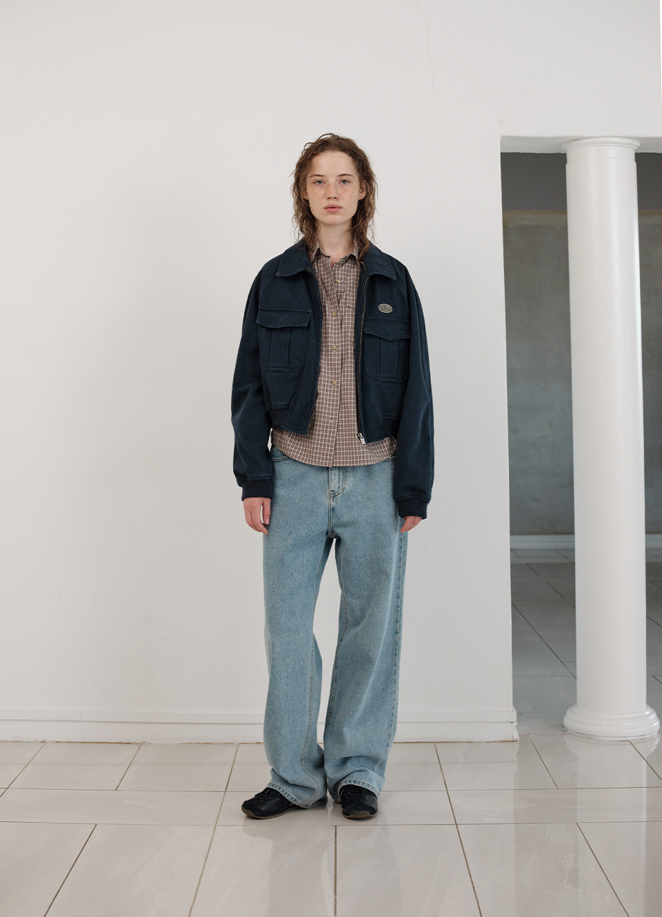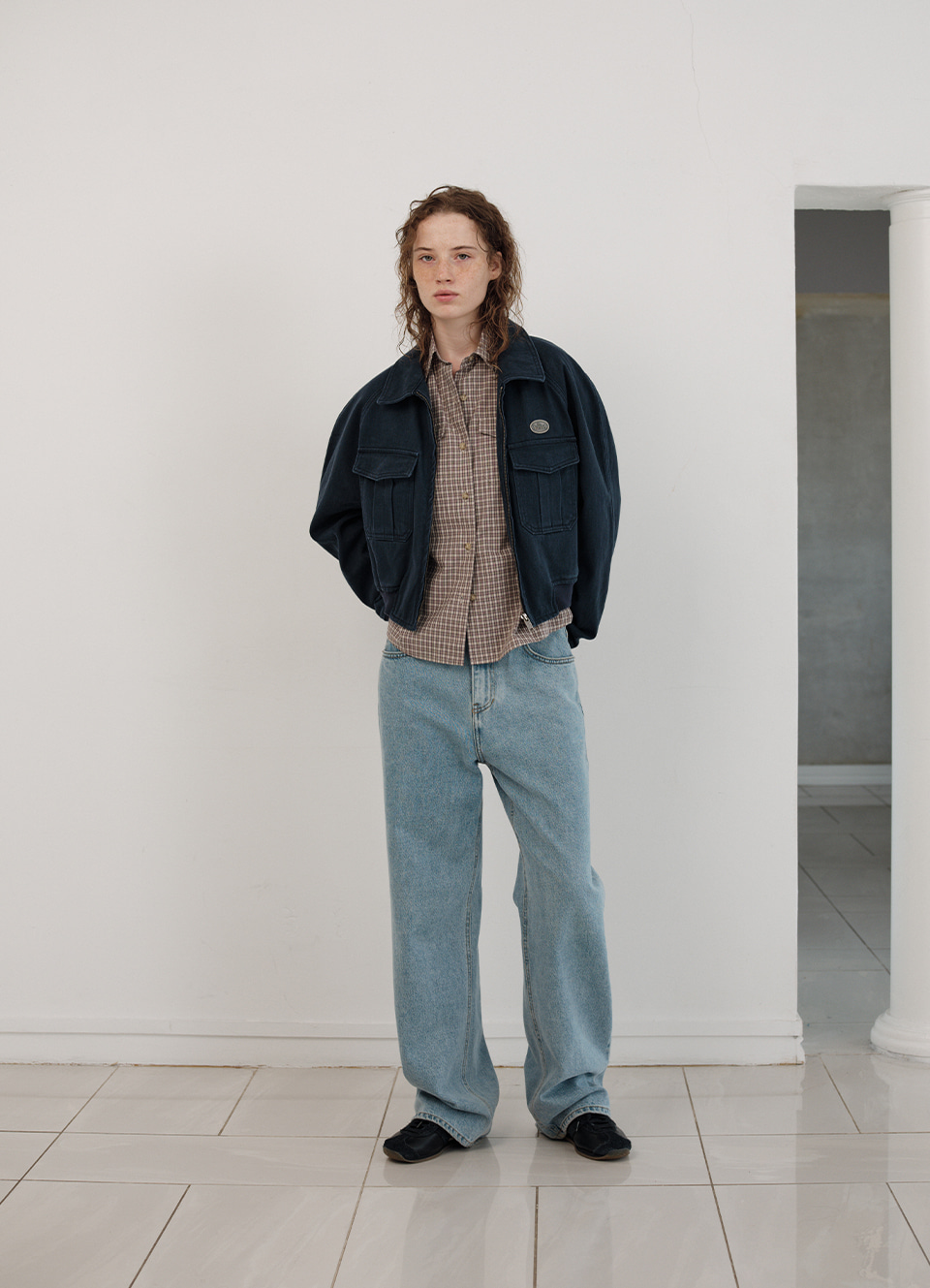 ネイビーカラーのウォッシング感が際立つしっかりとしたコットンファブリック
