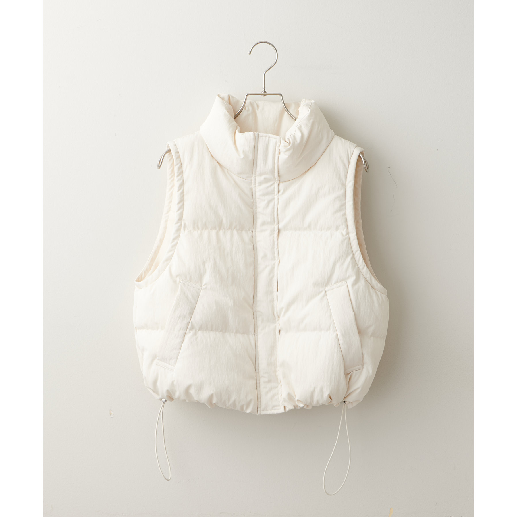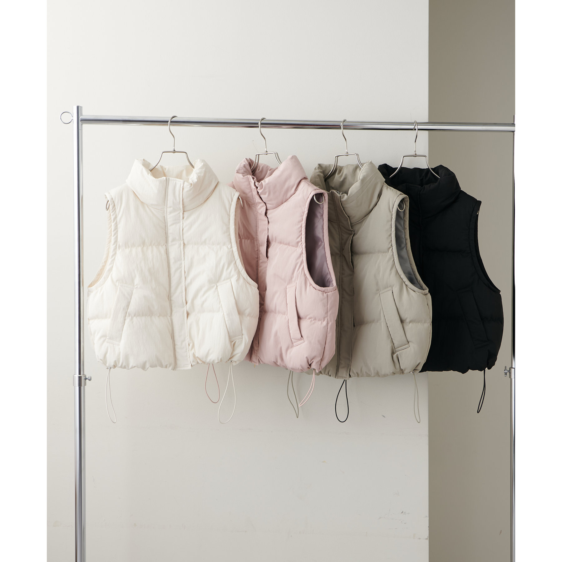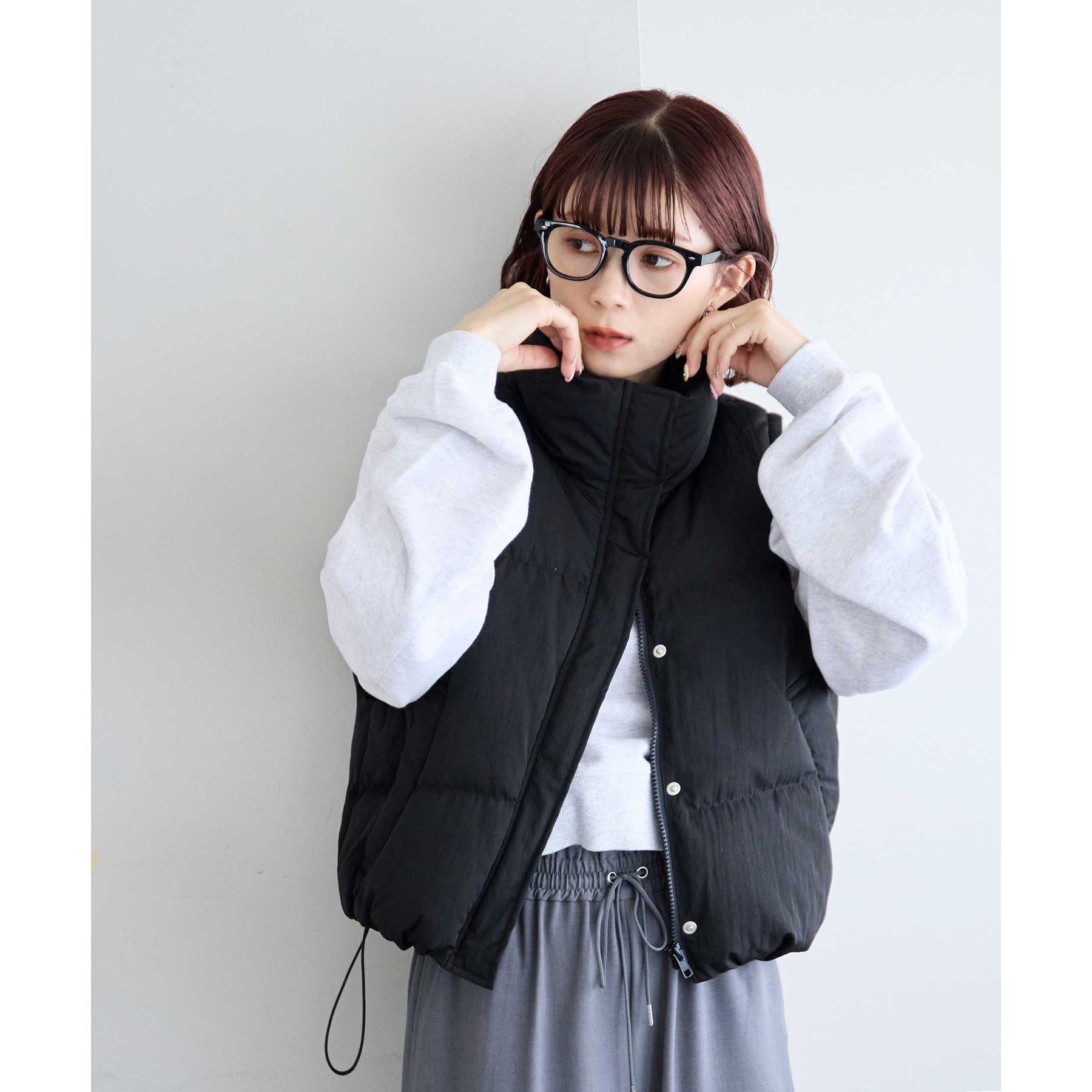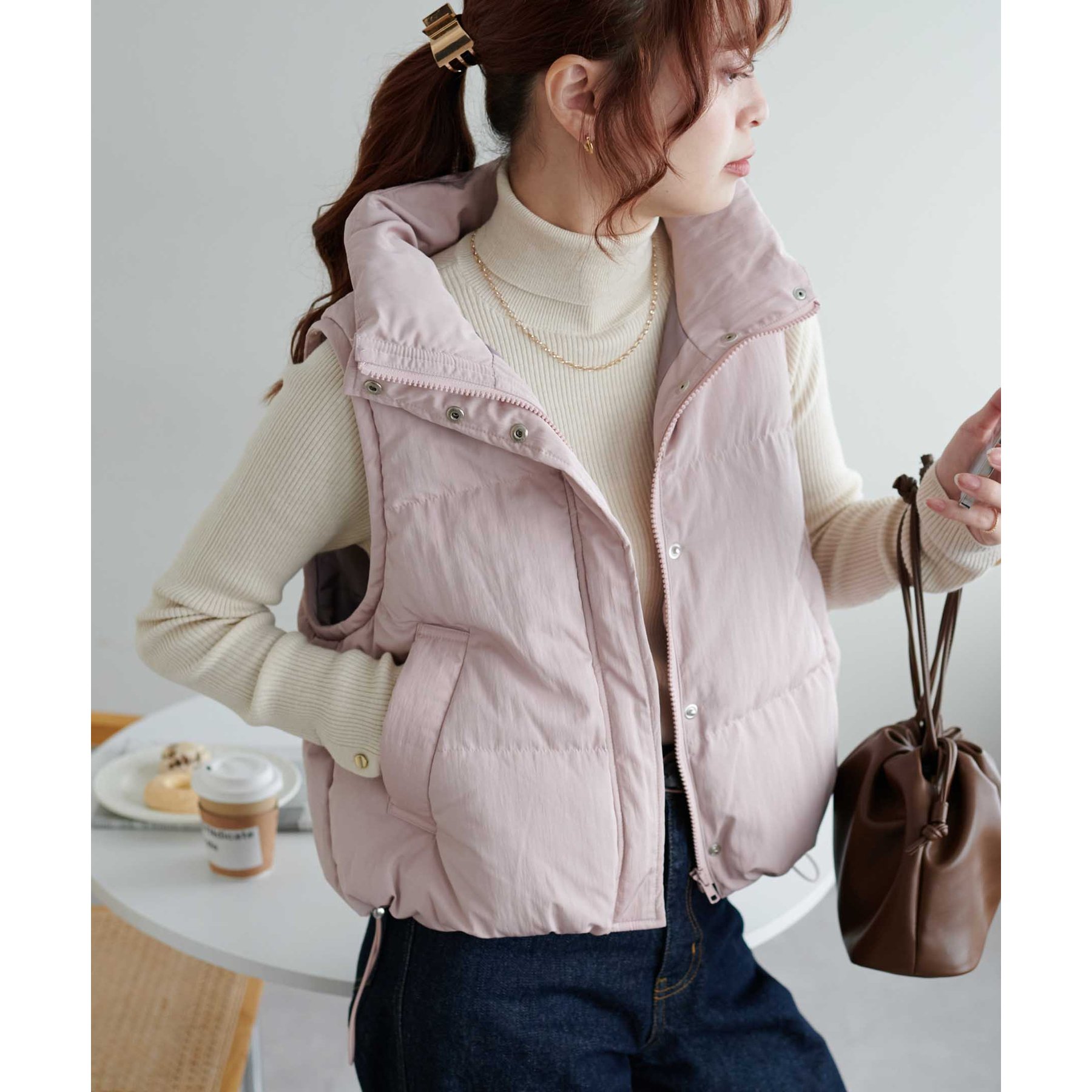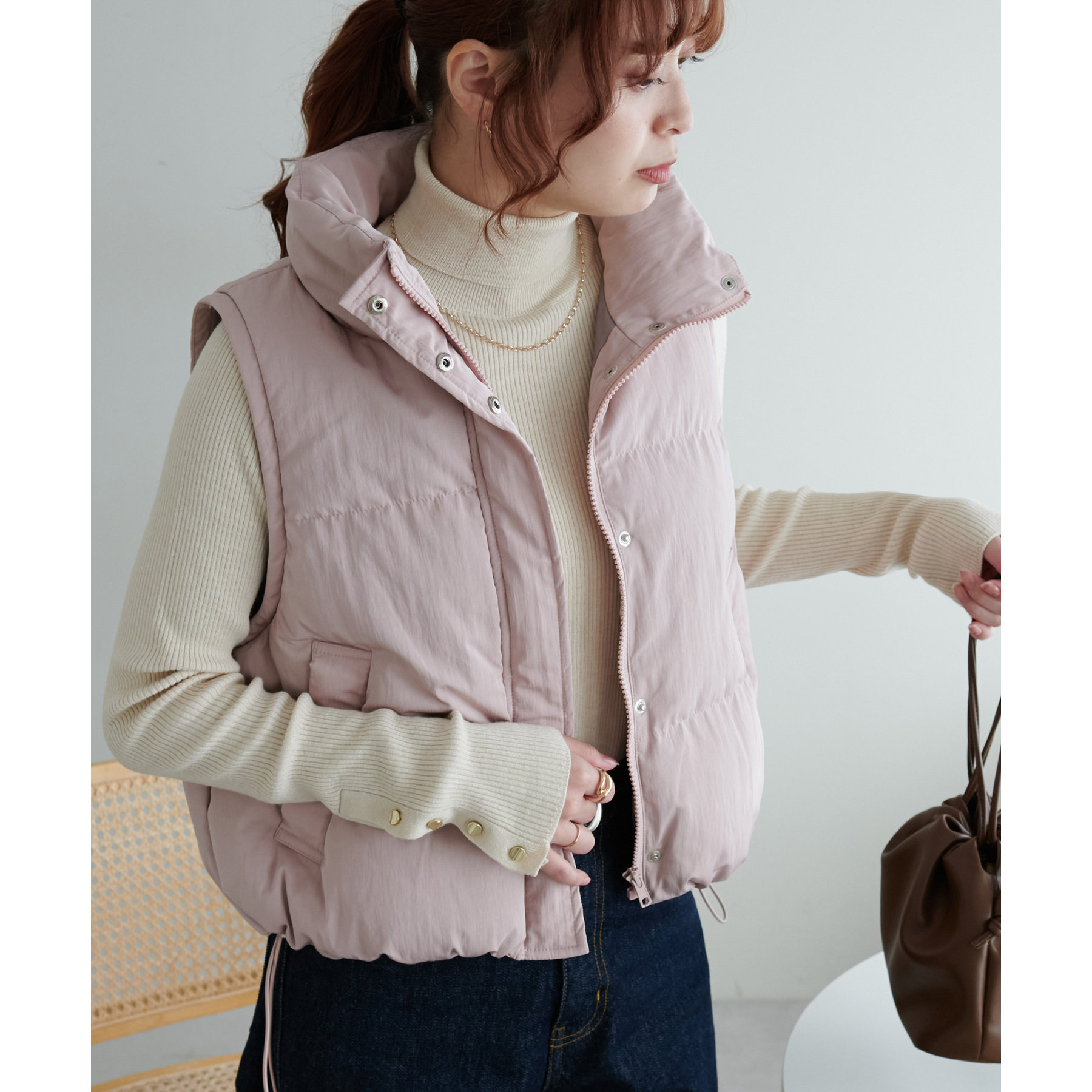 153cmスタッフ:気温が難しい時期におすすめのショートベスト!裾のドロスとで丸み度合いが調節できるので、印象を変えて着ていただけます〇
