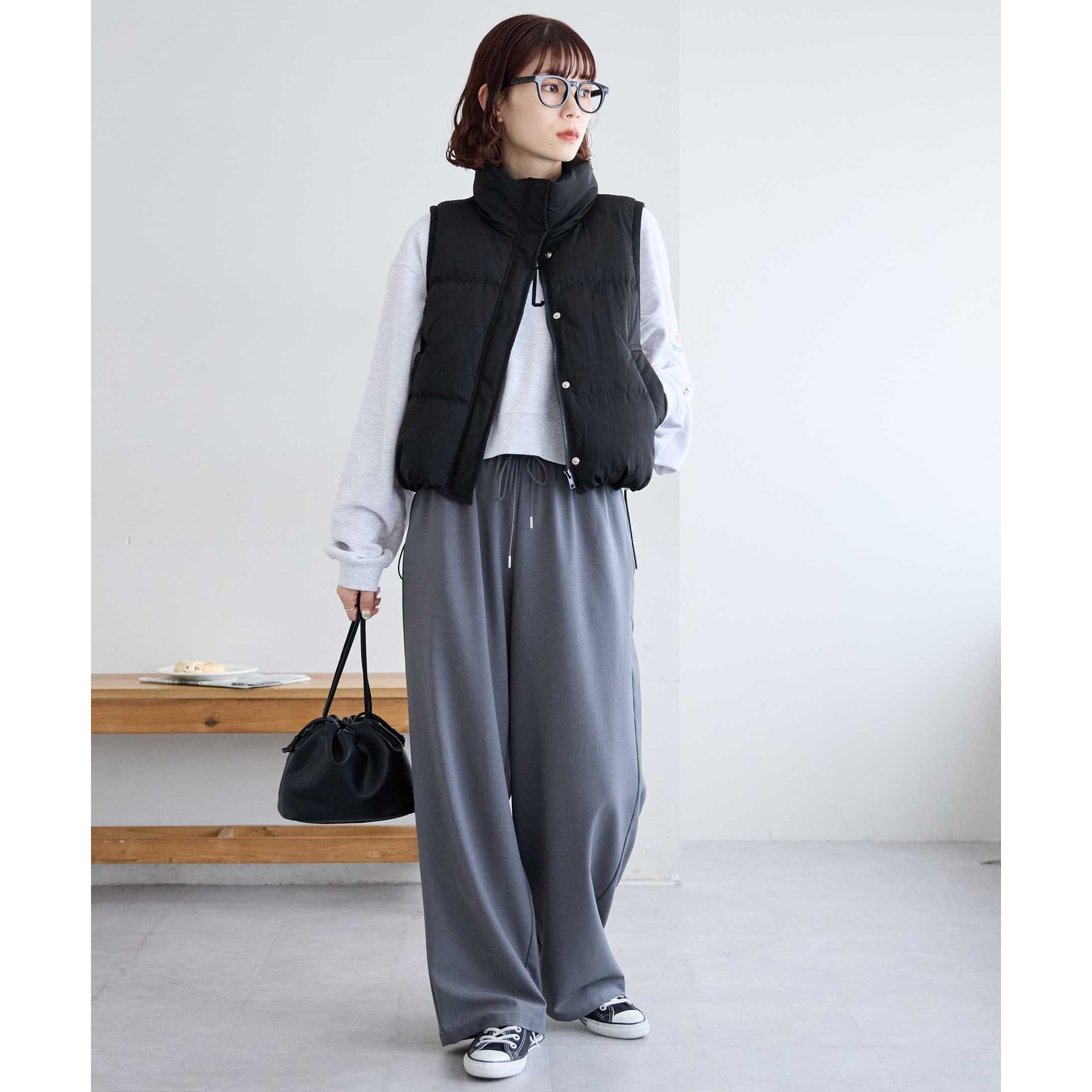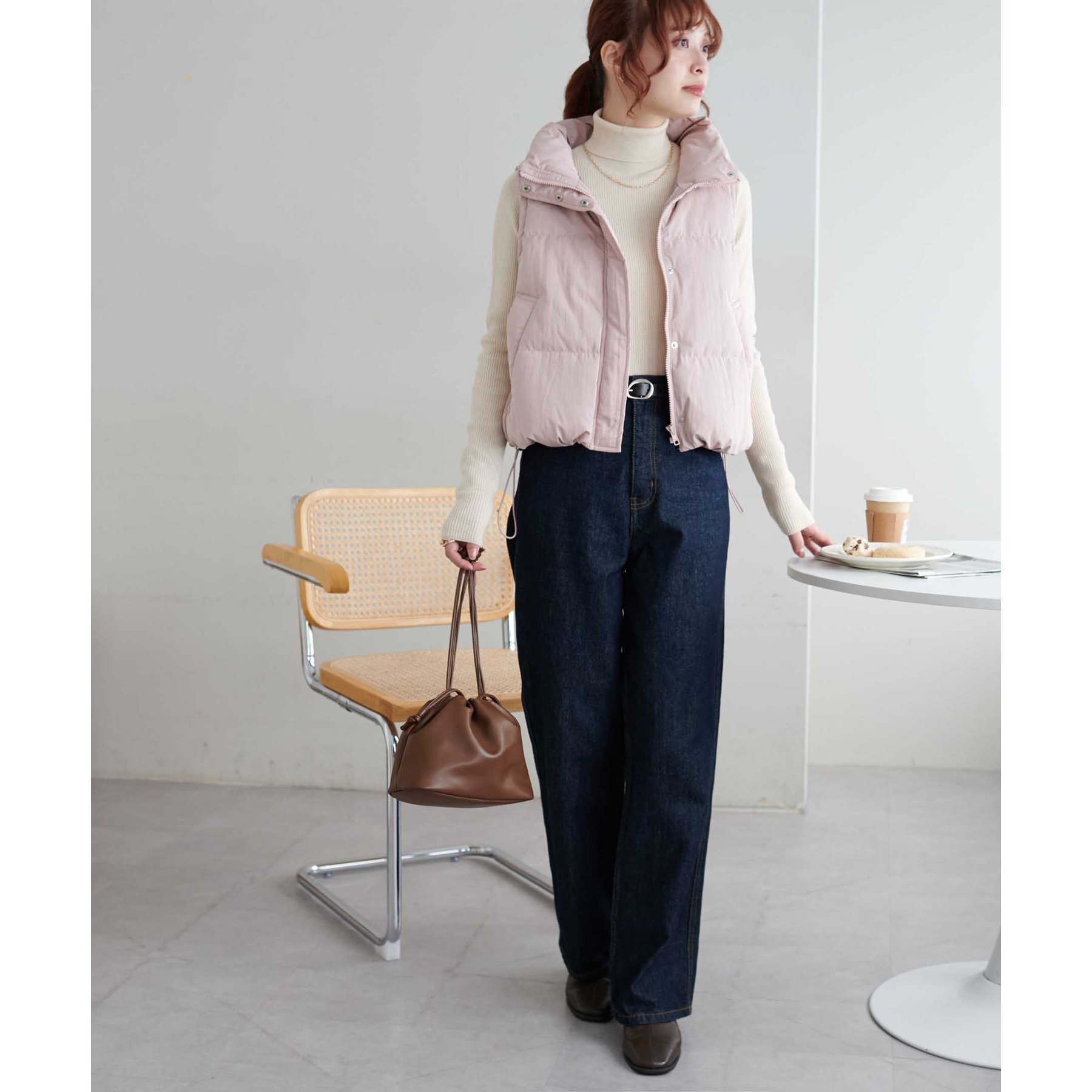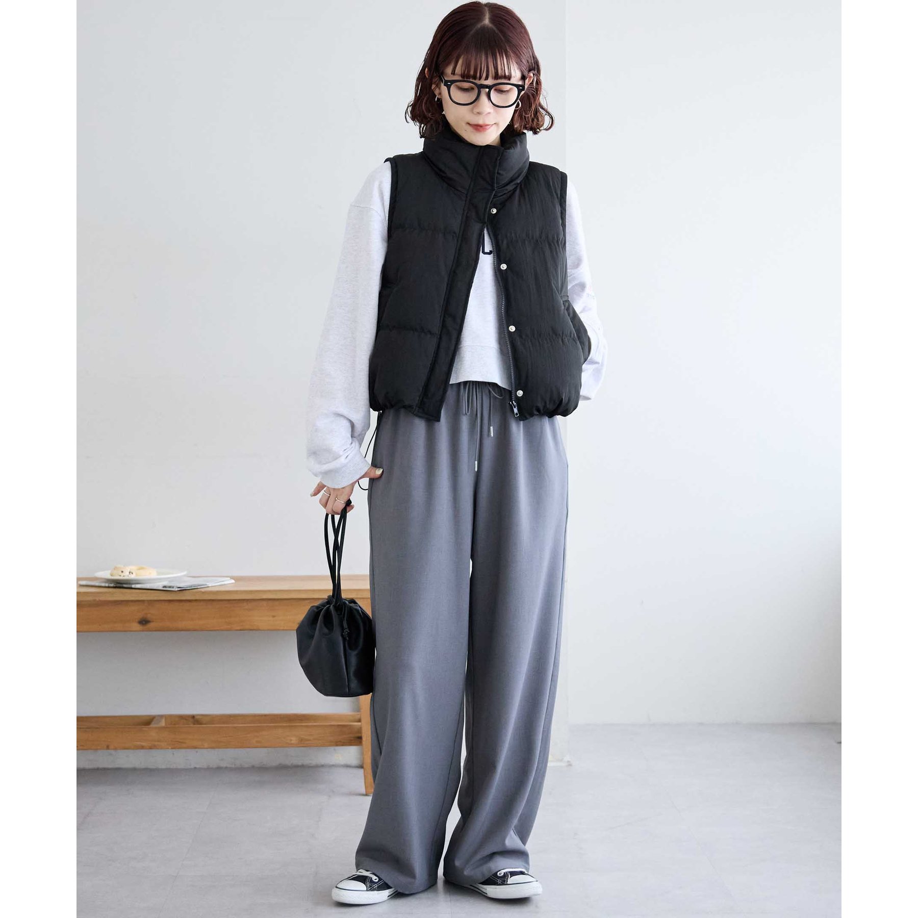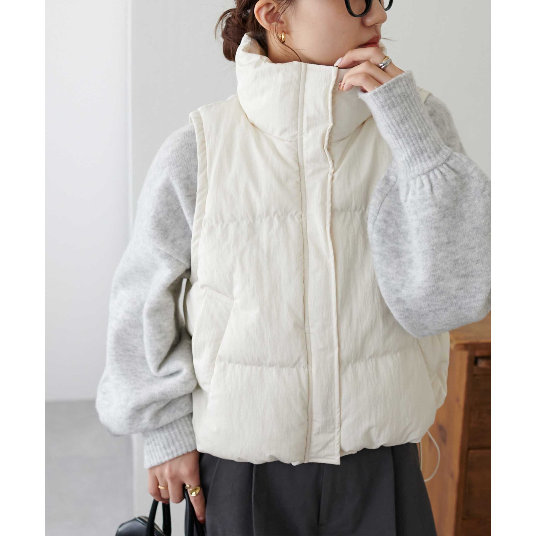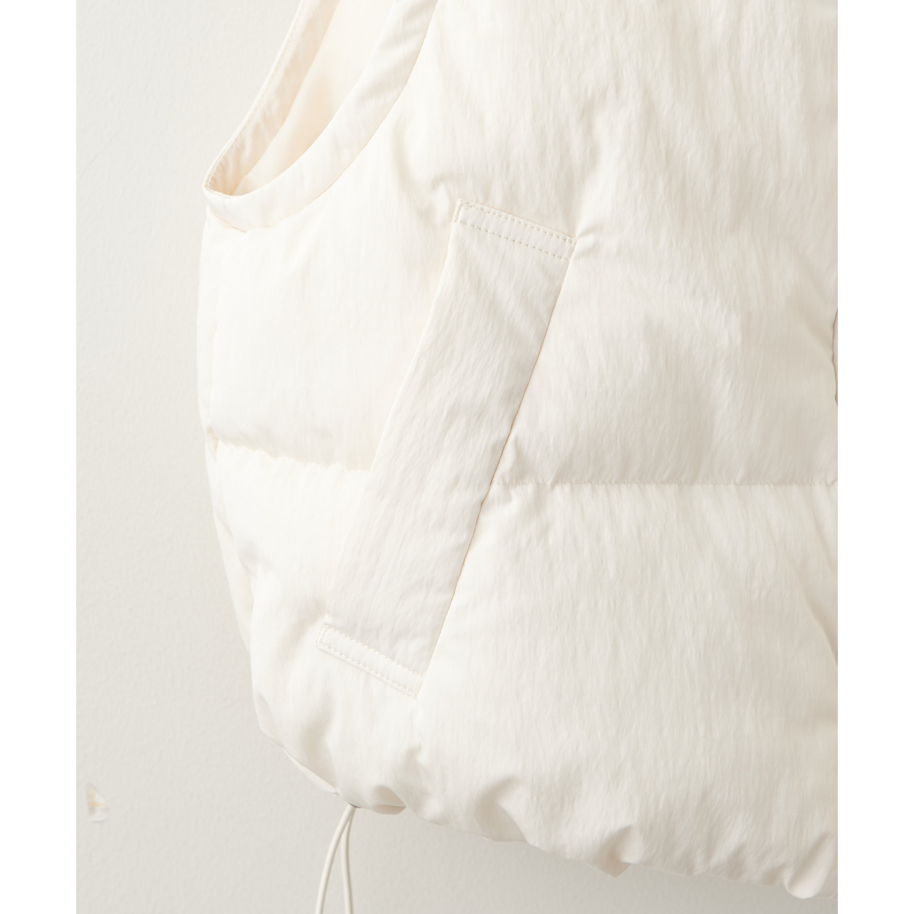 153cmスタッフ:気温が難しい時期におすすめのショートベスト!裾のドロスとで丸み度合いが調節できるので、印象を変えて着ていただけます〇