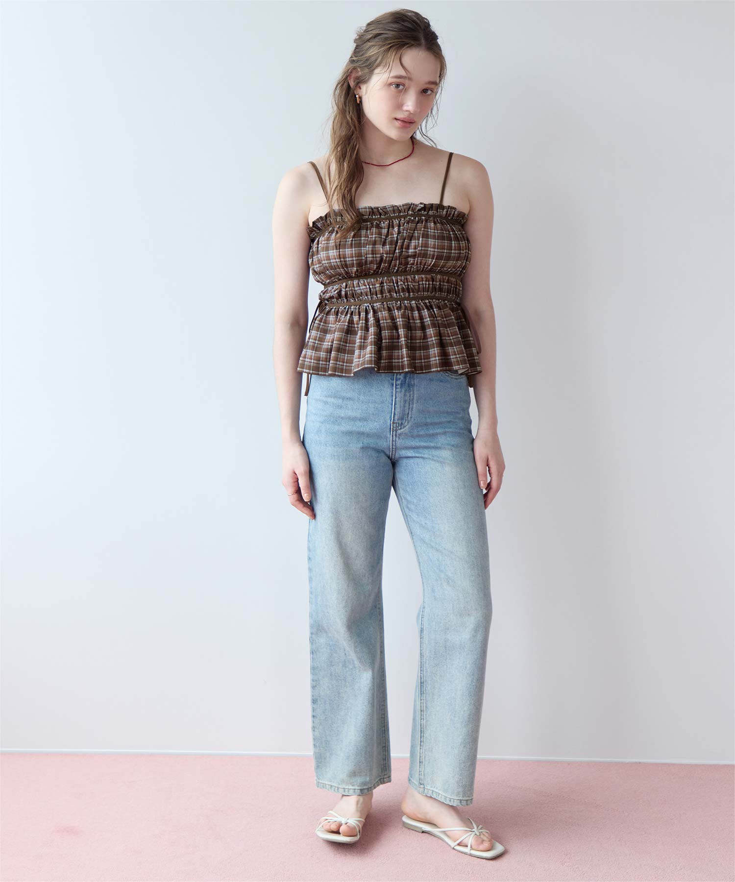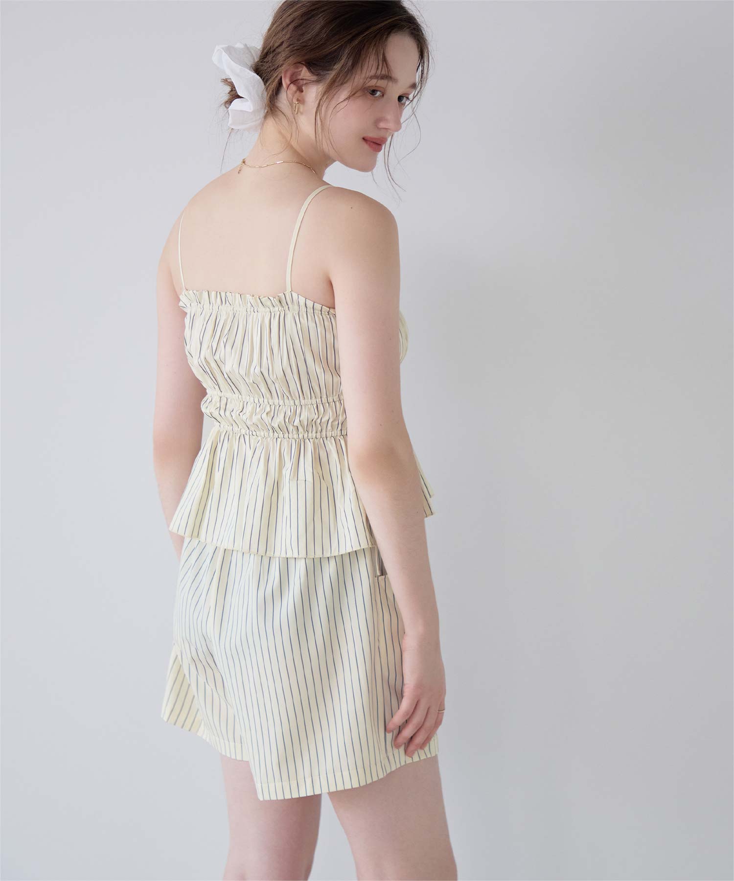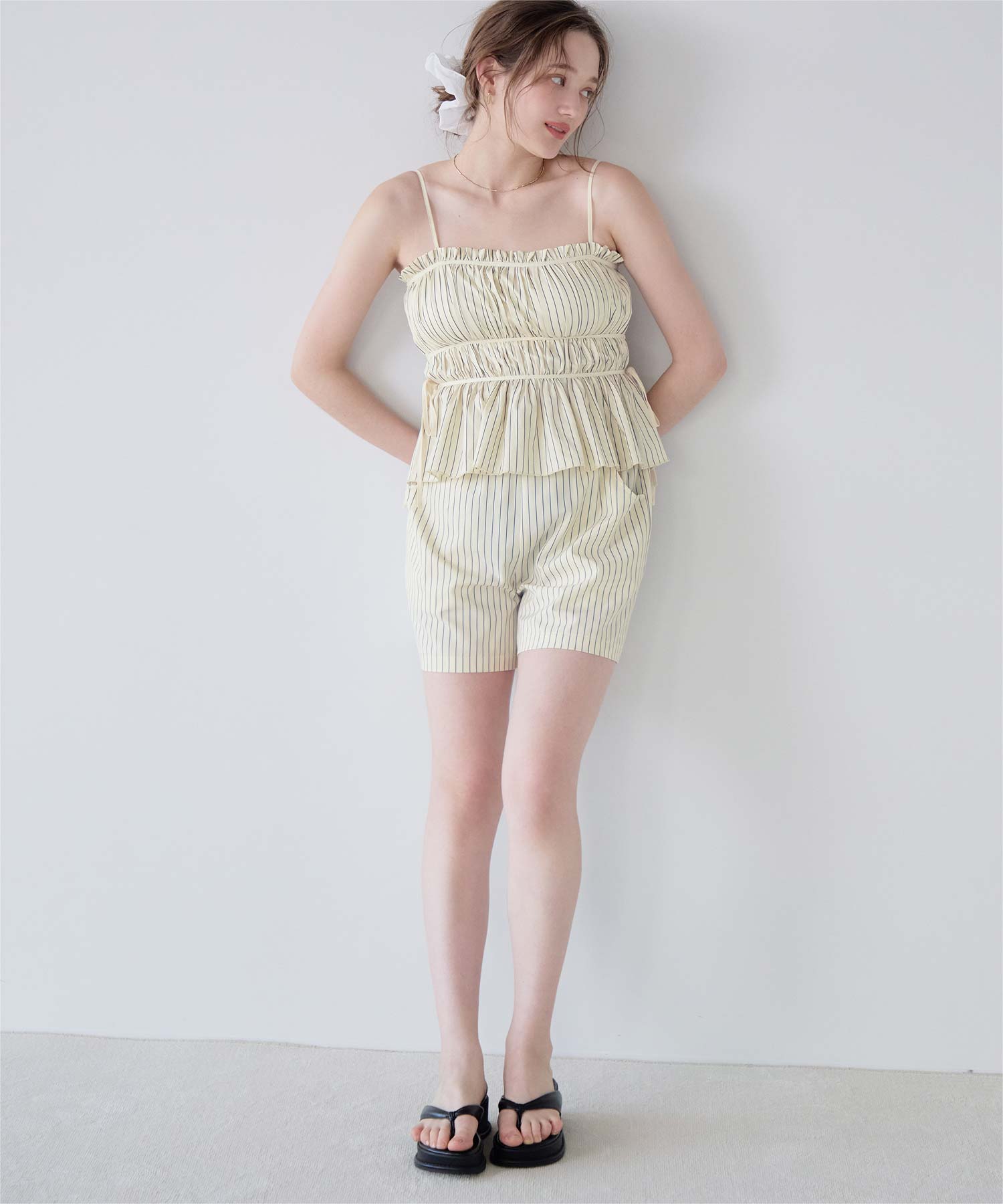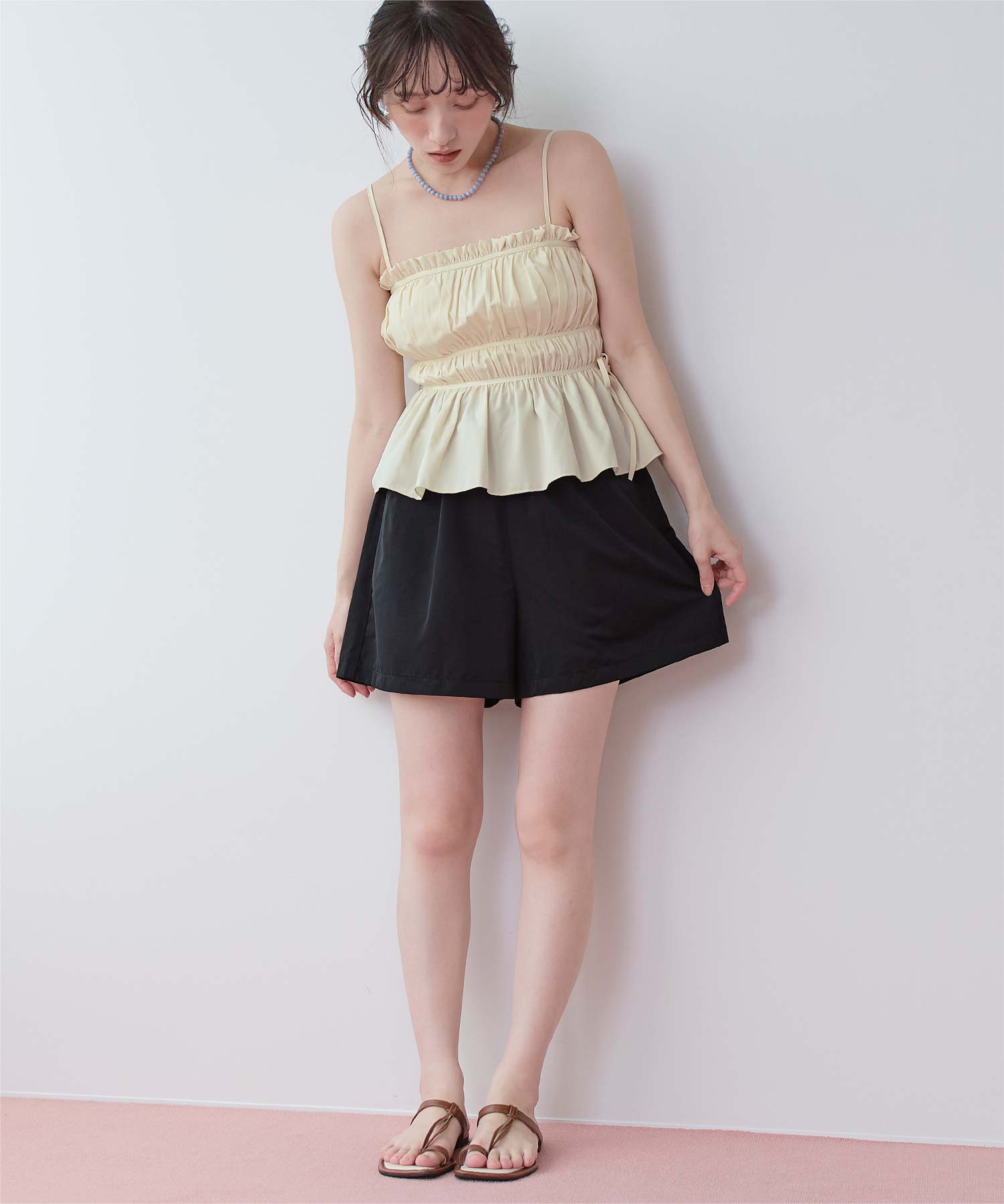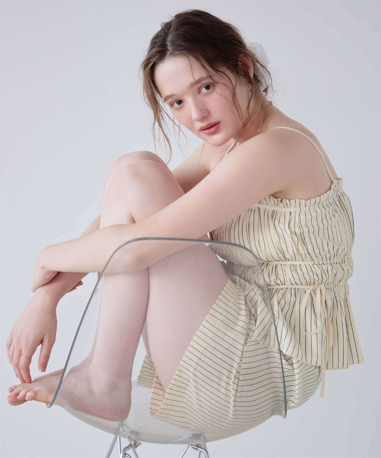 着脱しやすいゴム仕様のブラは、カップ付きトップスとしてデイリーのコーディネートにも使える万能アイテム。