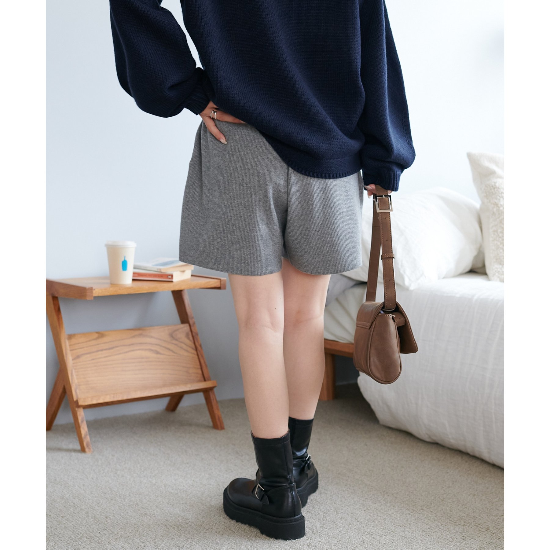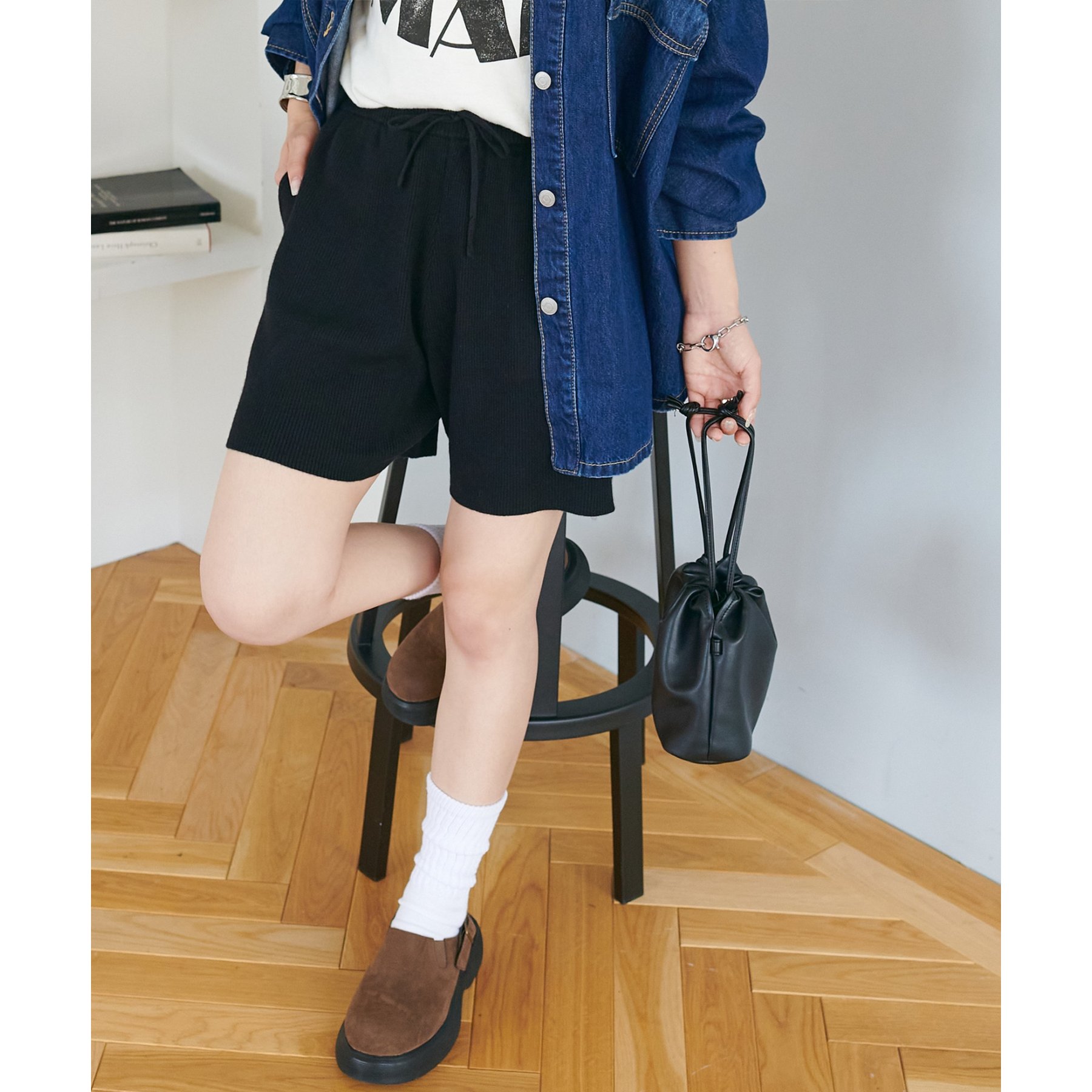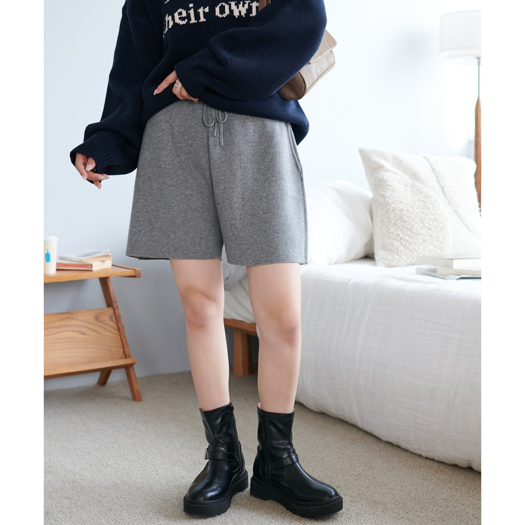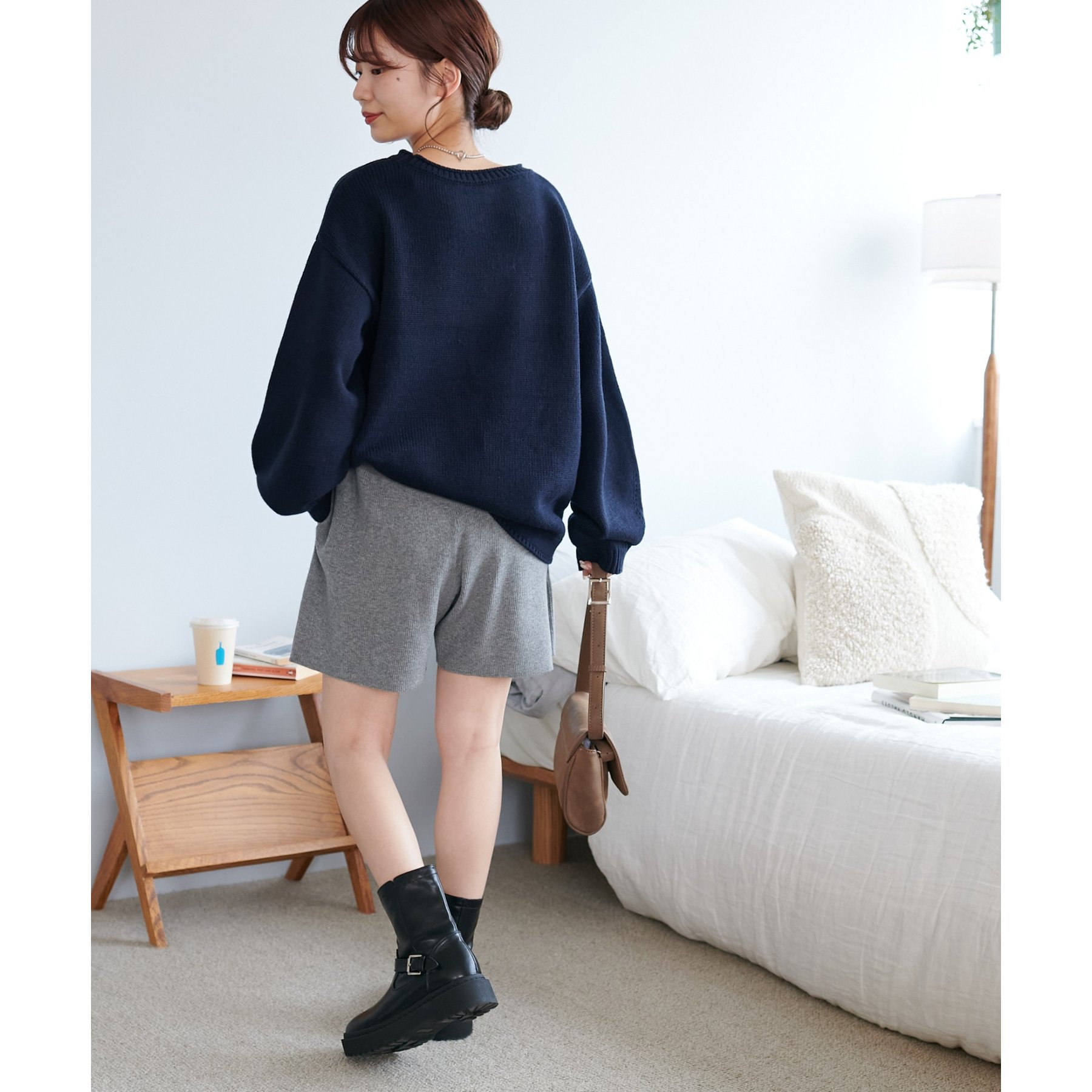ゆとりのあるサイズ感で足をスラッと細く見せてくれるニットショートパンツ