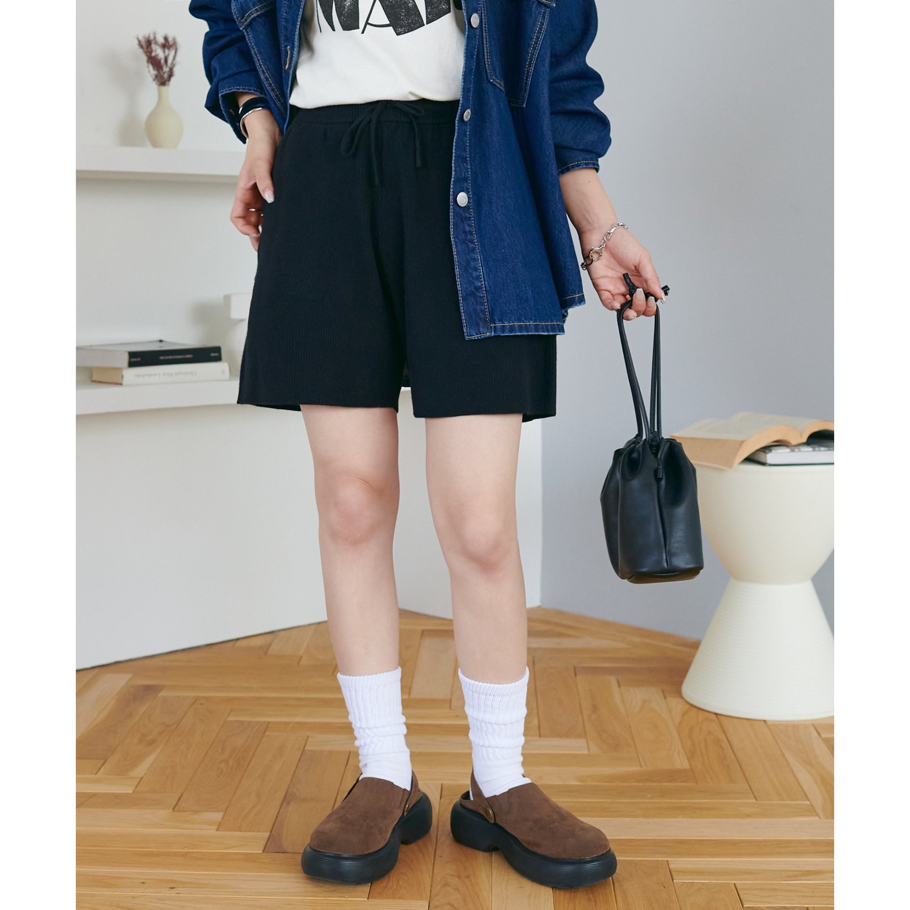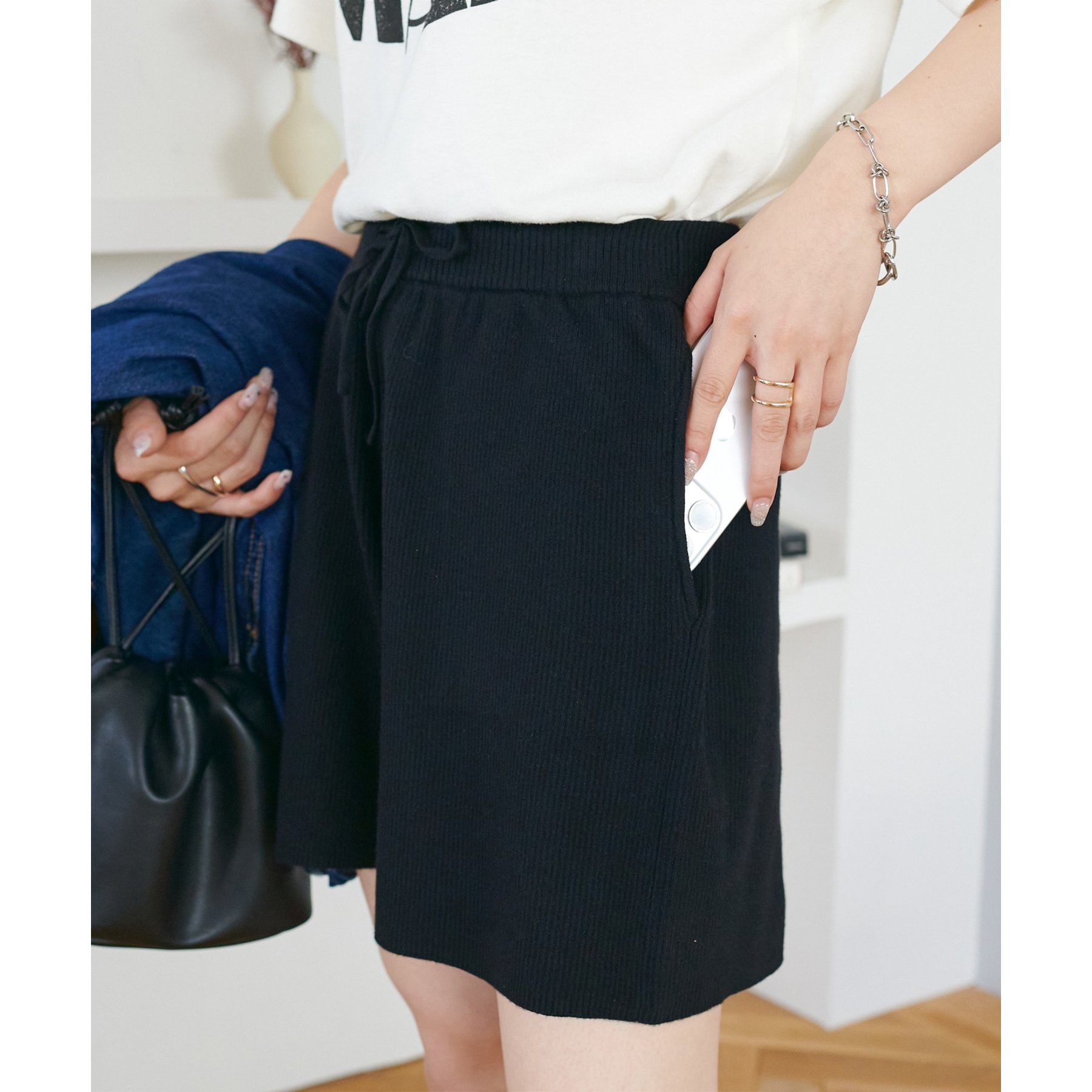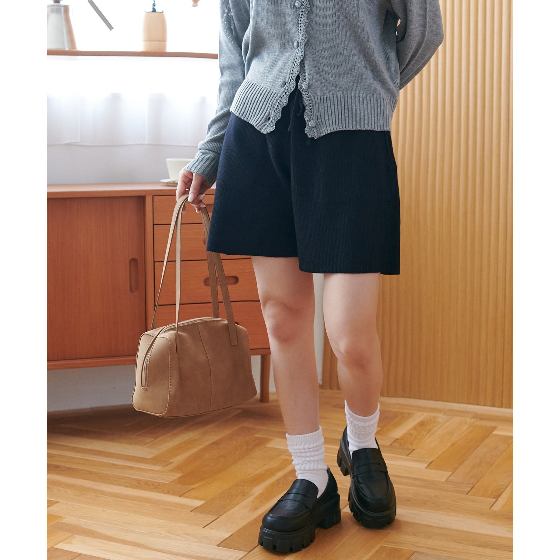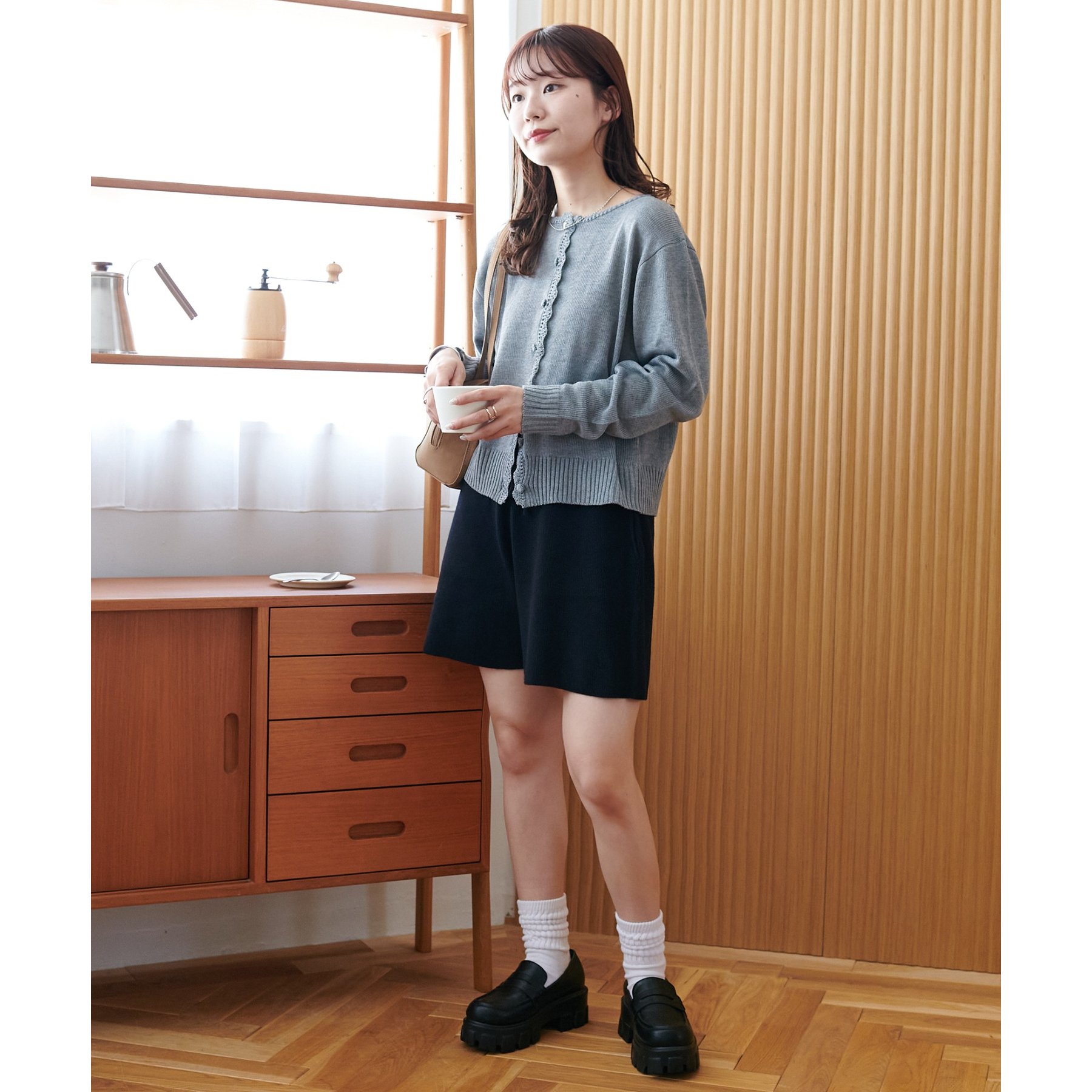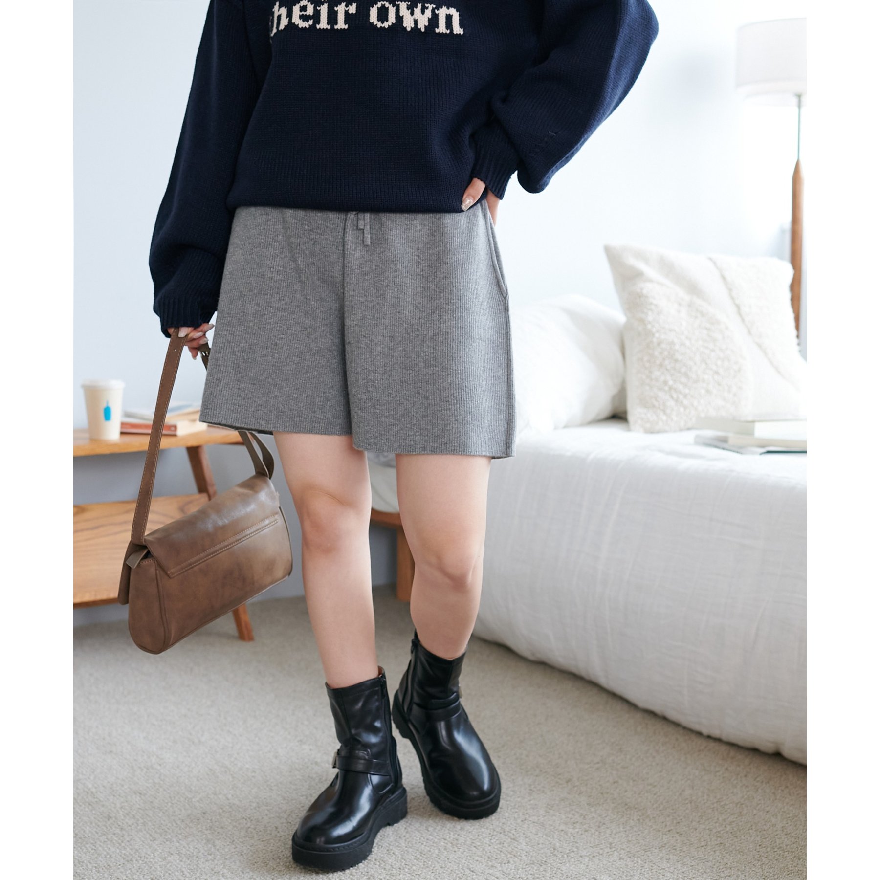 ゆとりのあるサイズ感で足をスラッと細く見せてくれるニットショートパンツ