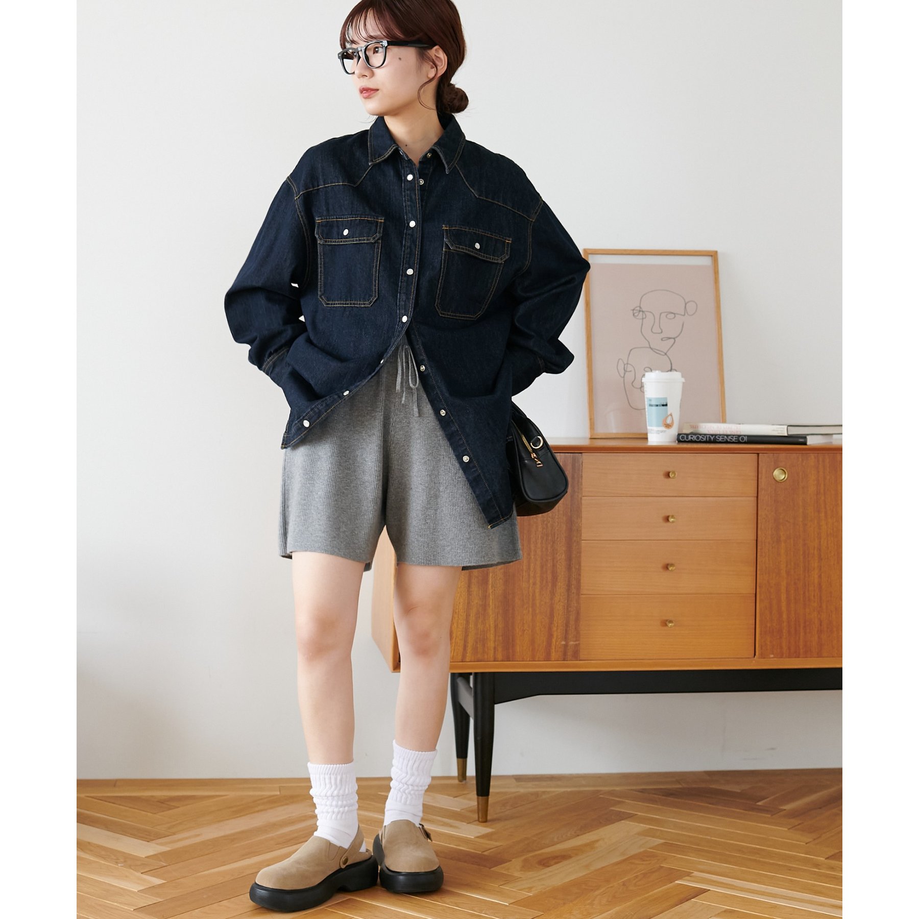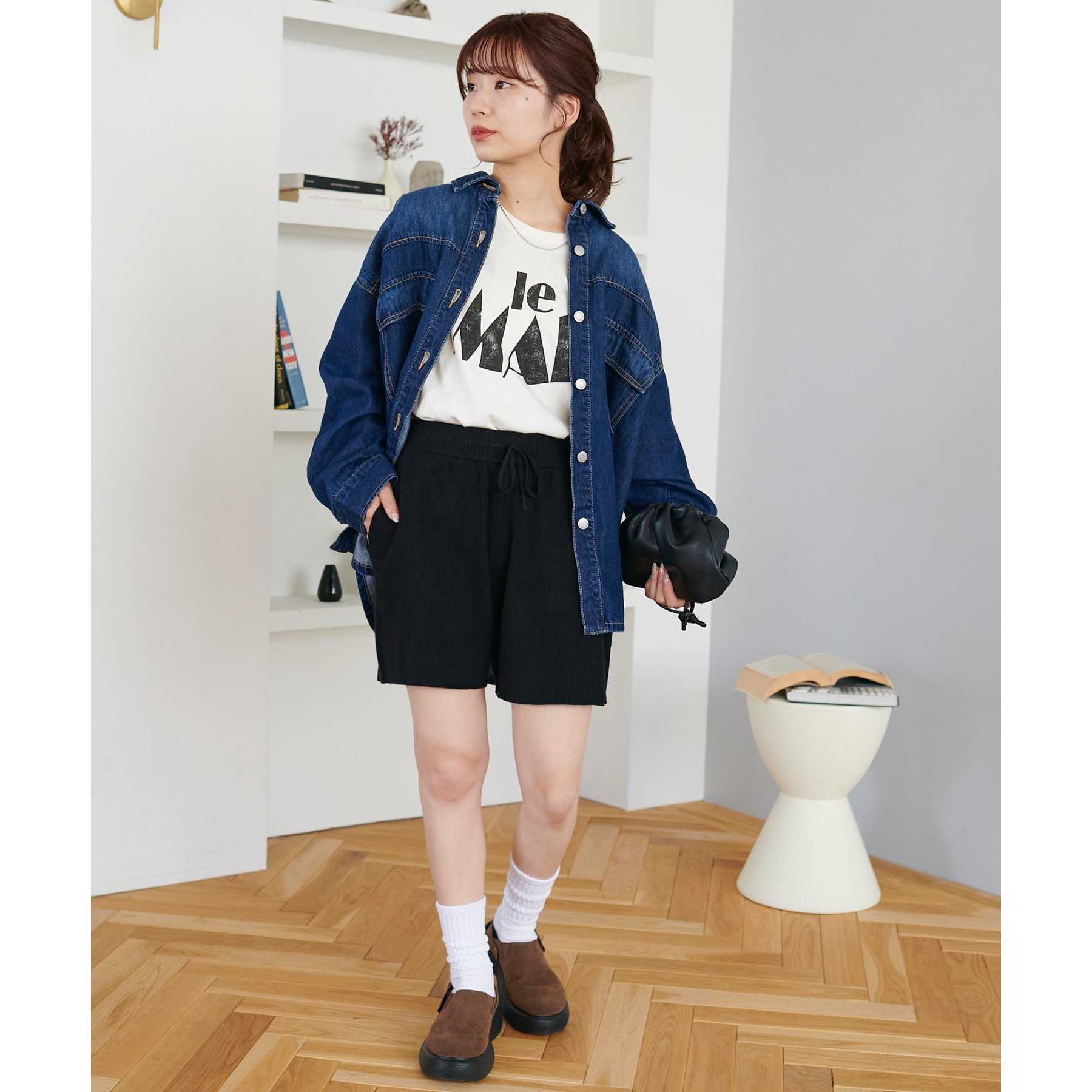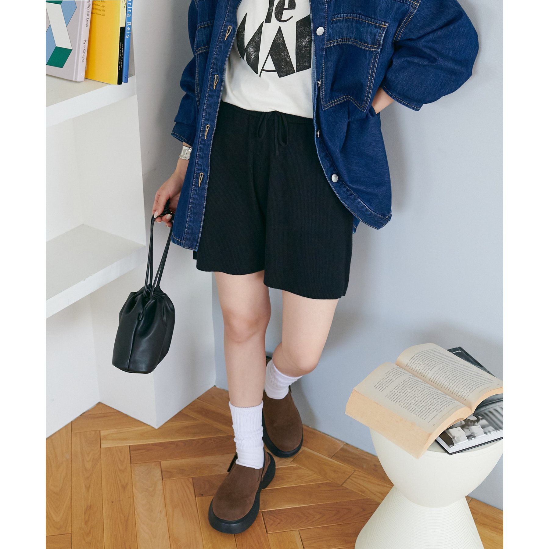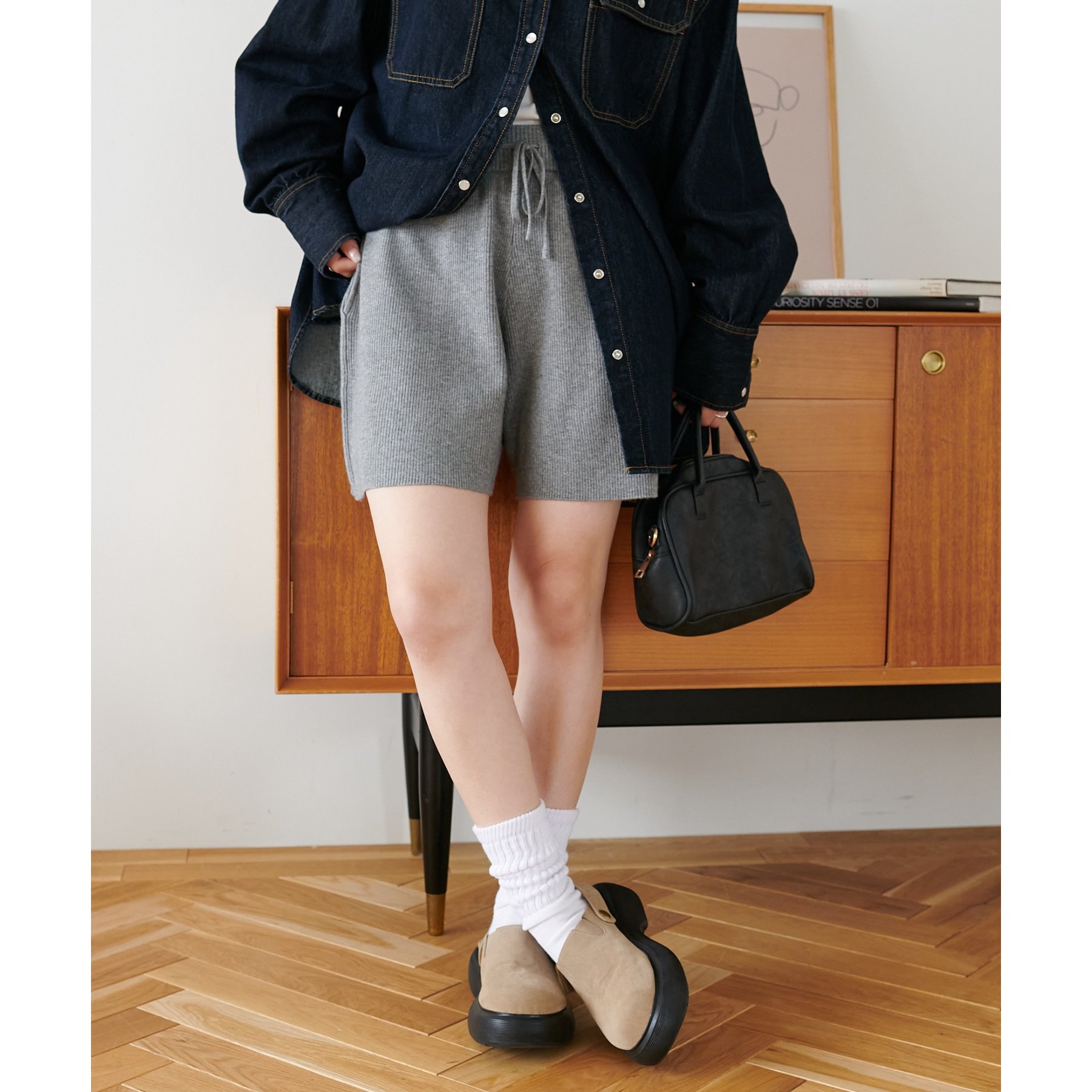 ゆとりのあるサイズ感で足をスラッと細く見せてくれるニットショートパンツ