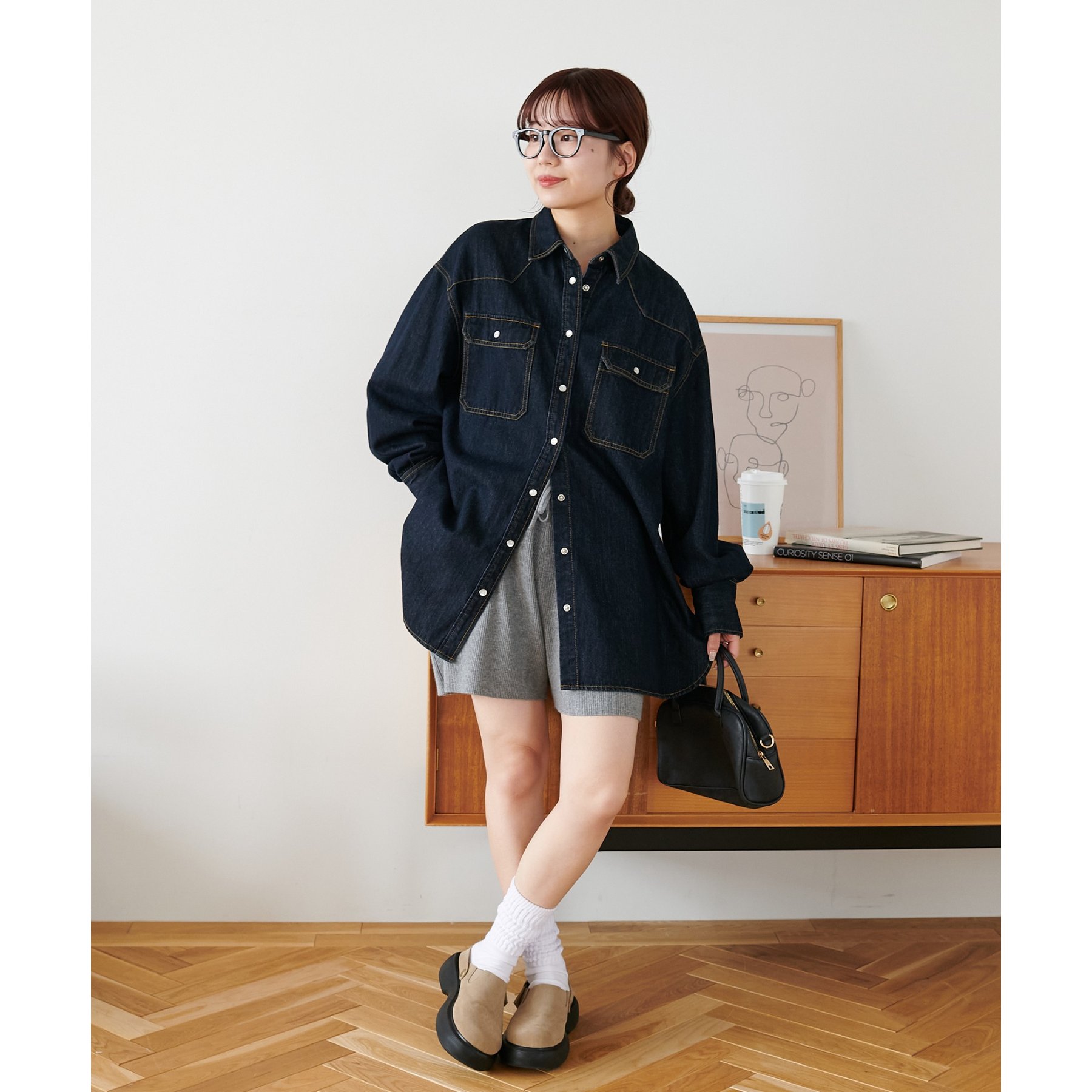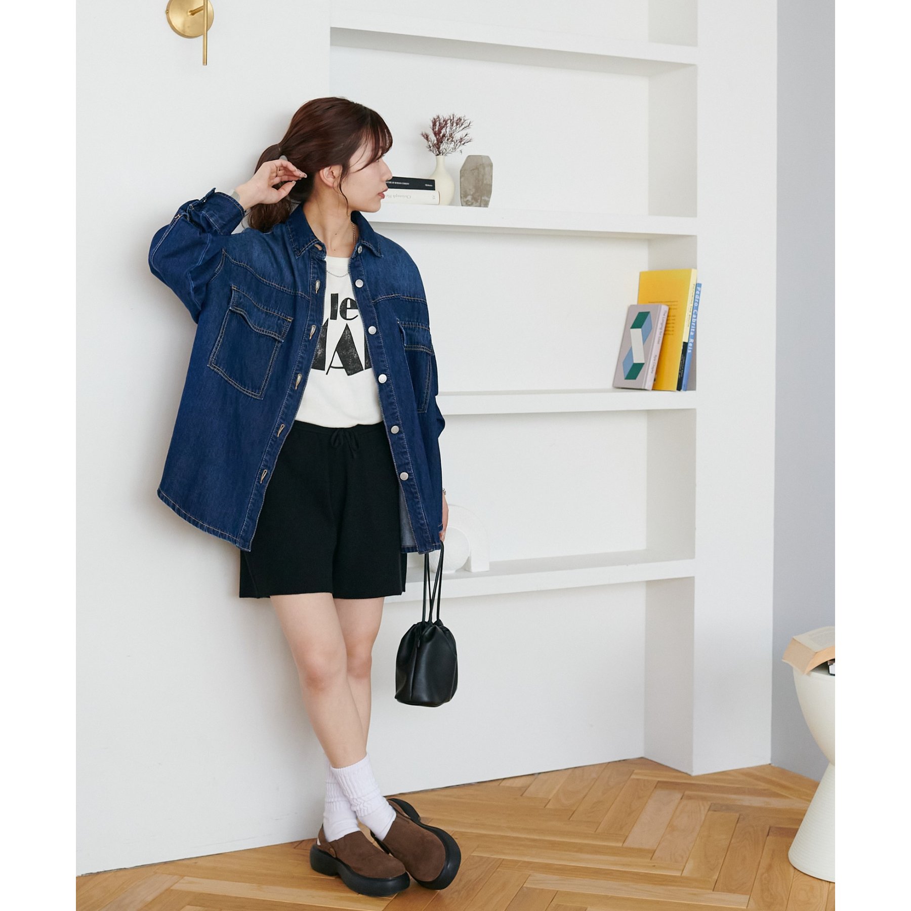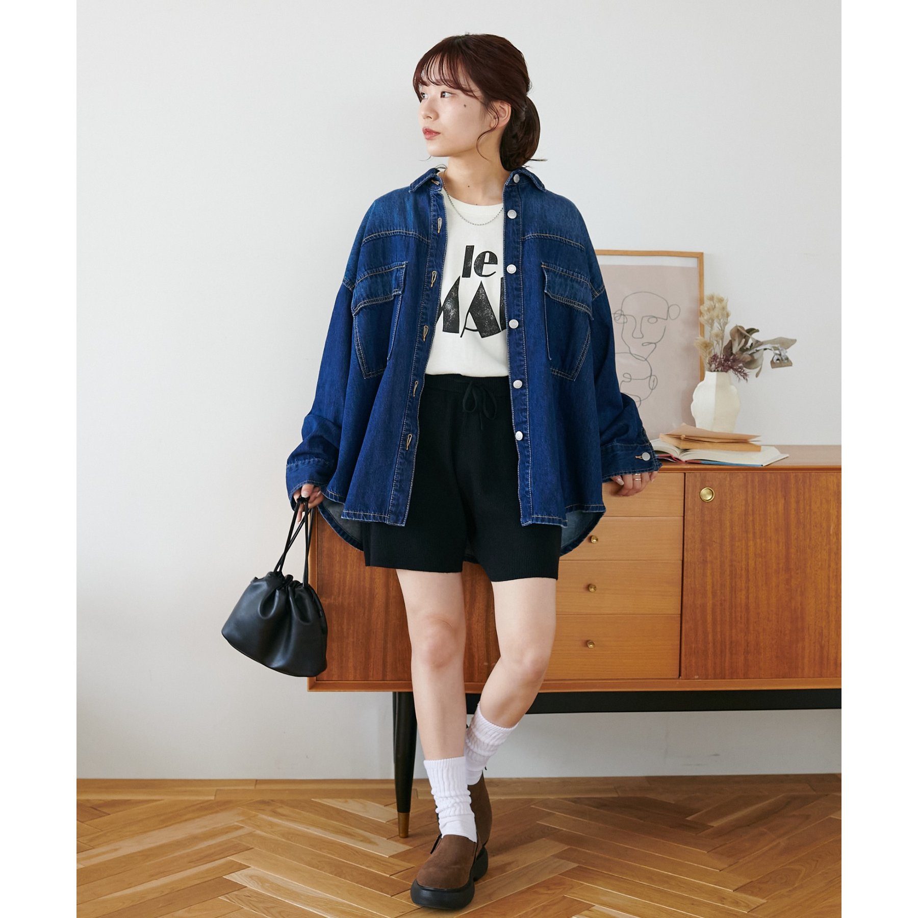 ゆったりとしたトップスと合わせるとラフなコーデが完成。