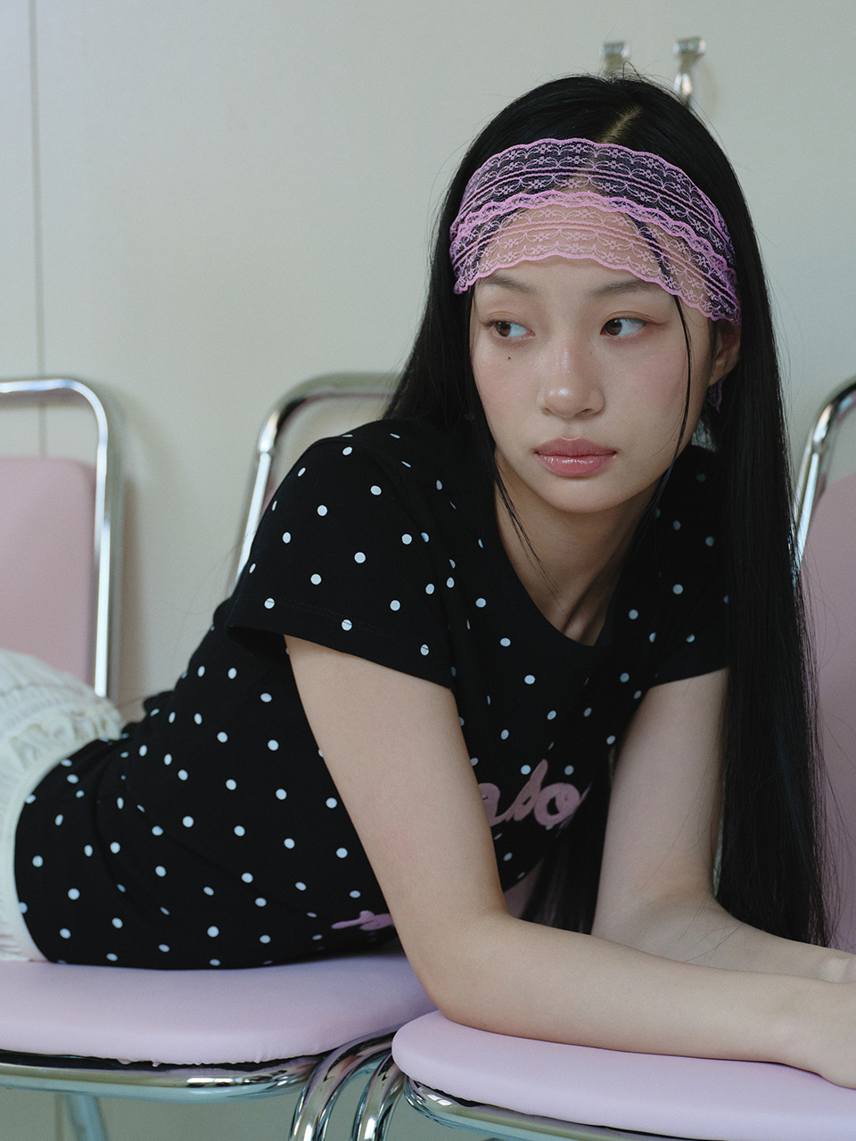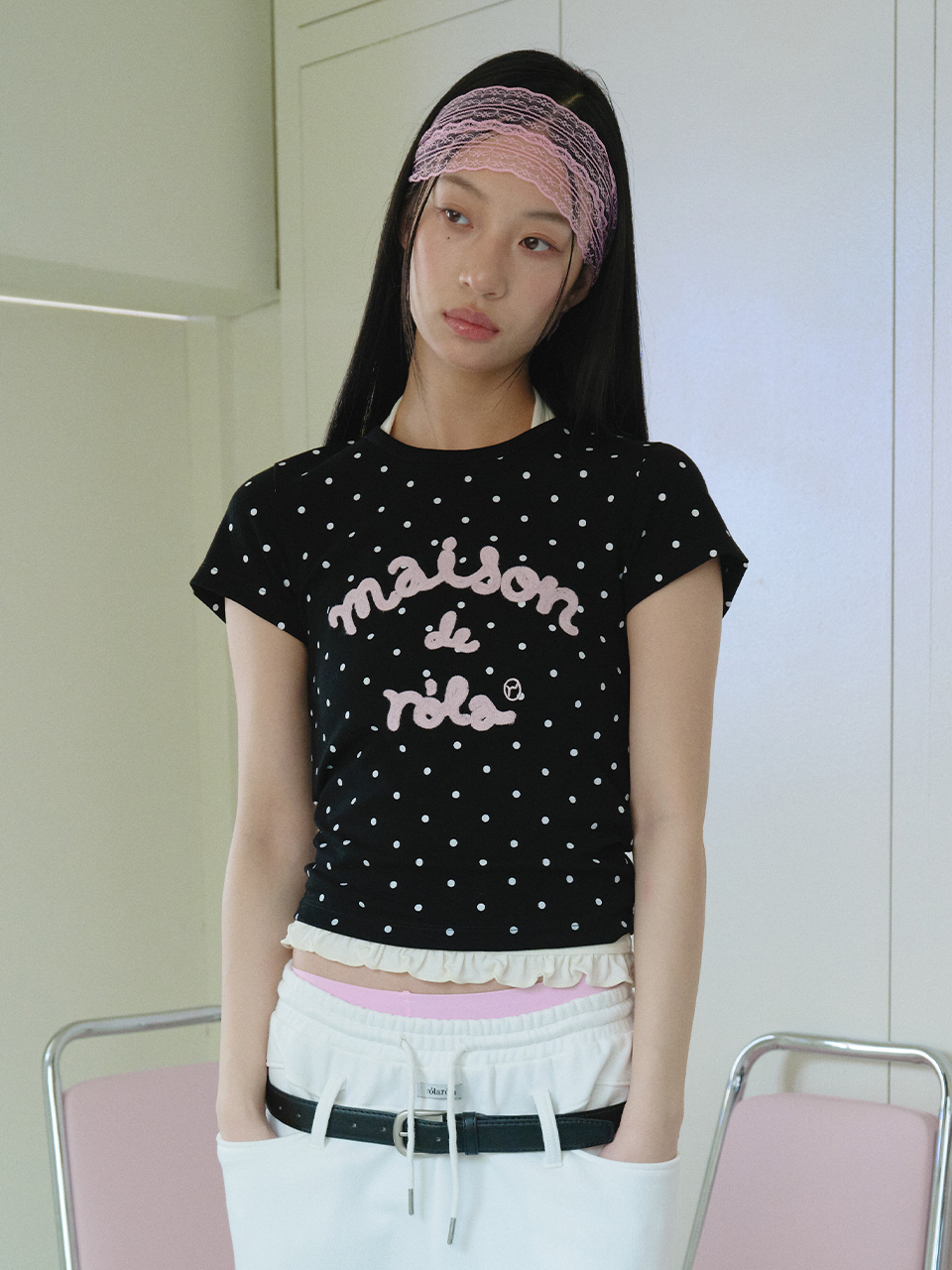 MAISON DE ROLA EMBROIDERY DOT T-SHIRT BLACK