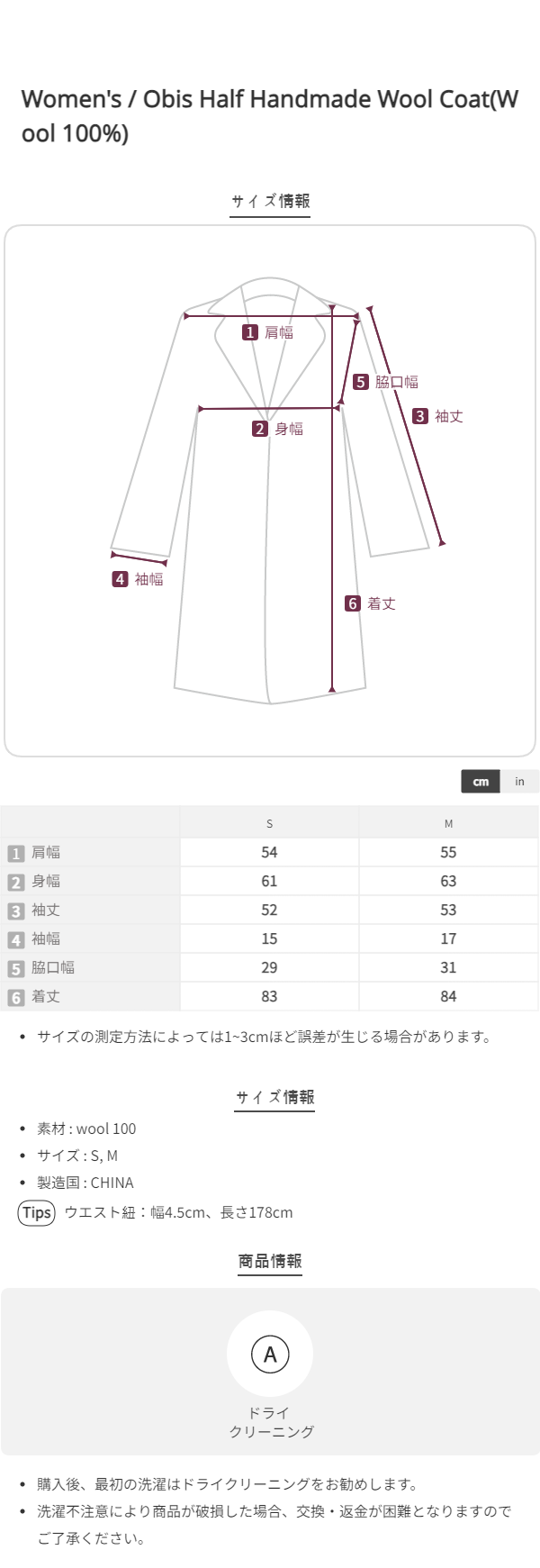 HEIGHT 168cm / BUST 81cm / WAIST 58cm / HIP 83cm